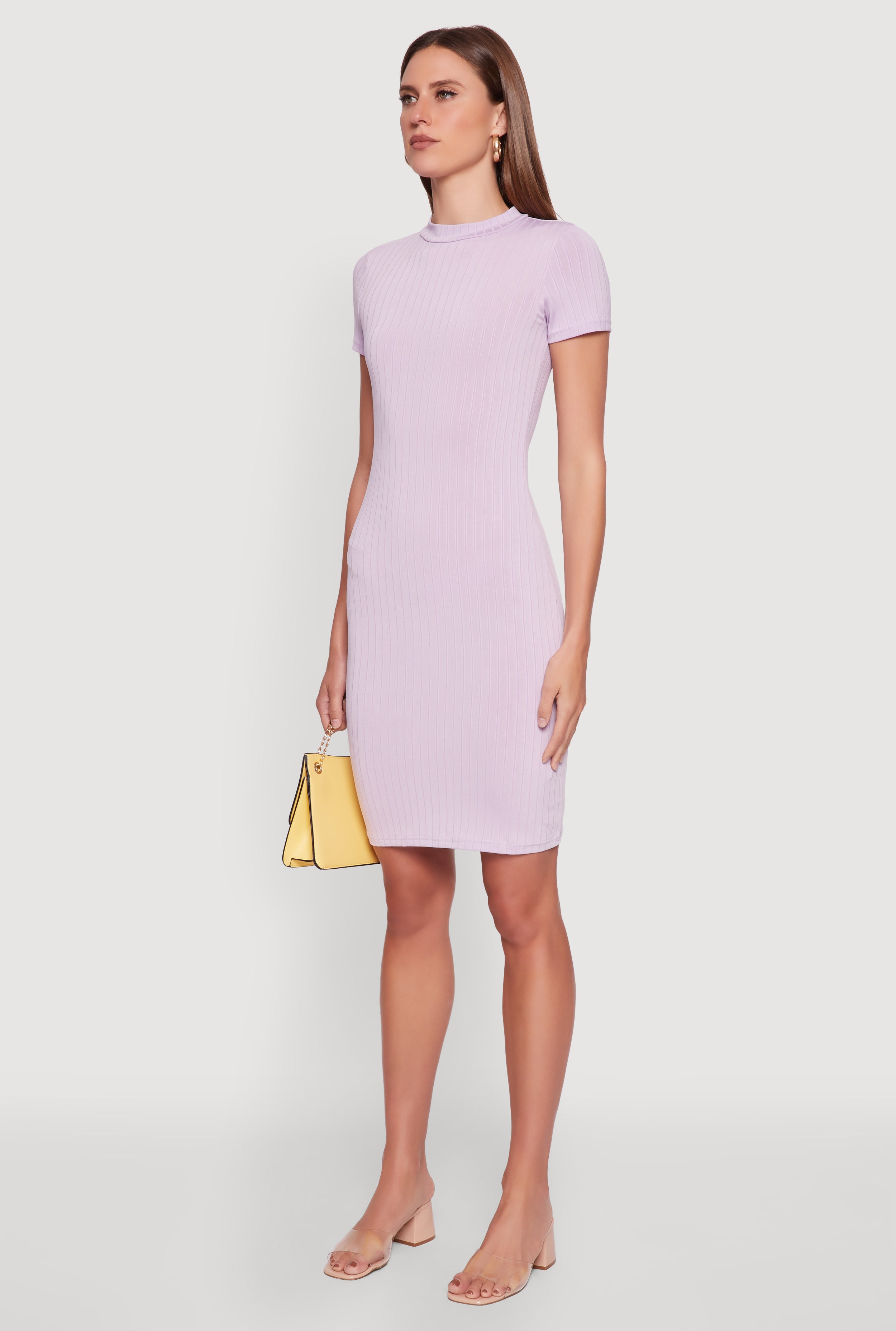 Daisy Rib Knit Mock Neck T Shirt Dress