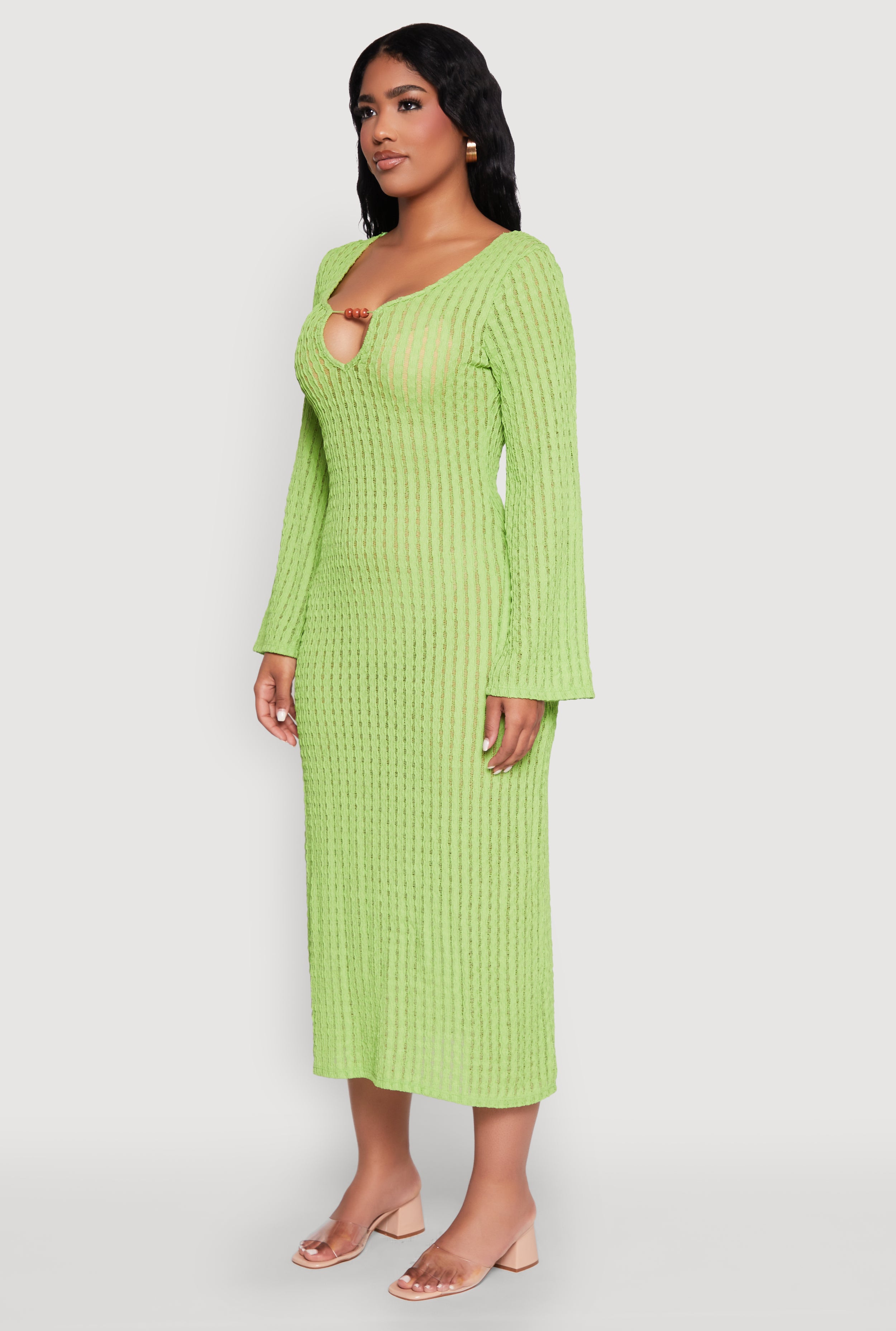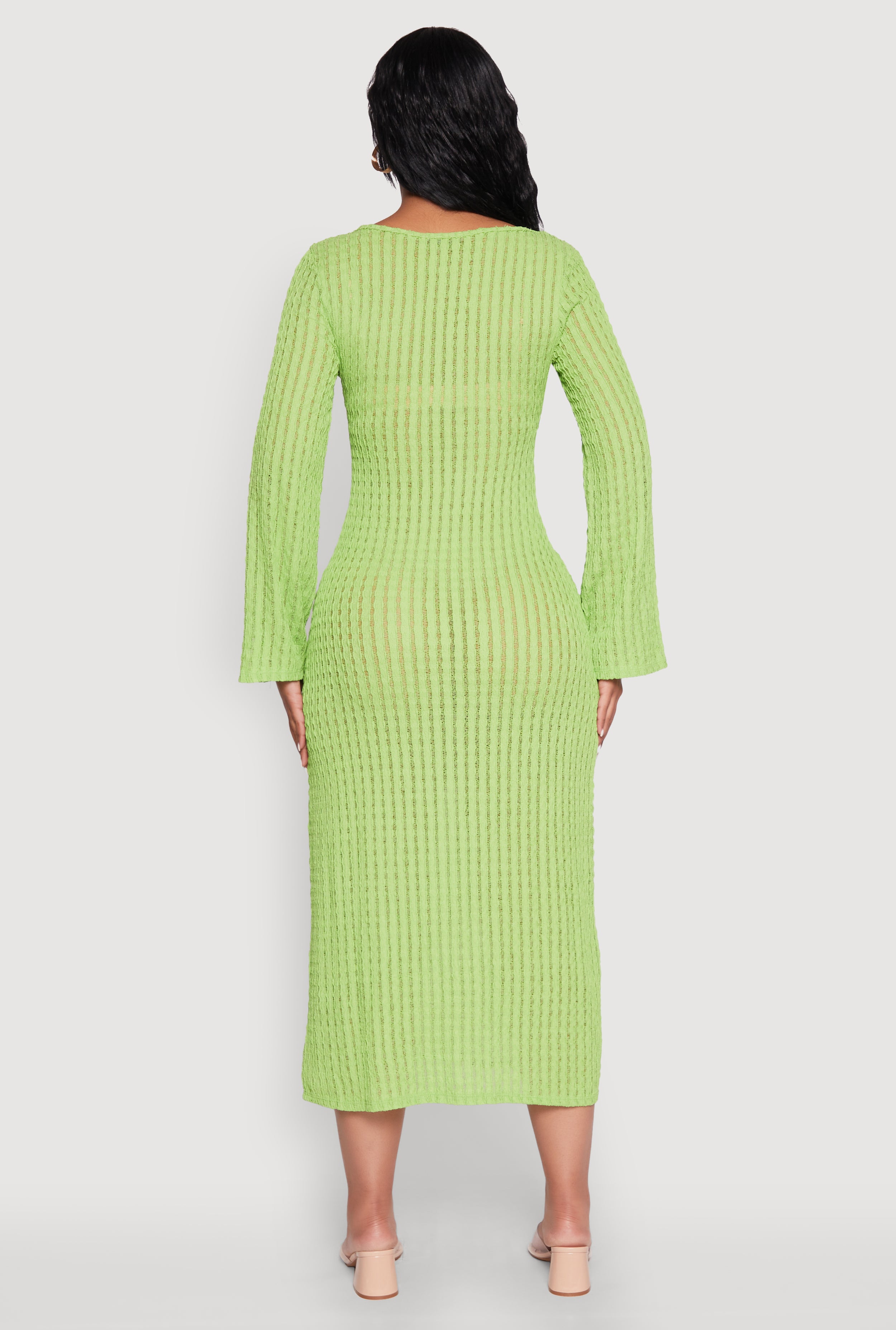 Step out in style with the Textured Knit Beaded Keyhole Shadow Stripe Dress, a perfect blend of classic elegance and modern flair. Featuring a stunning shadow stripe pattern and intricate beaded details, this mid-length dress is designed to turn heads. The scoop neckline and bell long sleeves add a touch of sophistication, making it your go-to choice for both day and night occasions. Its timeless silhouette ensures you'll look effortlessly chic every time you wear it. Whether you're dressing up for a night out or looking for a versatile piece to elevate your wardrobe, this dress has got you covered.