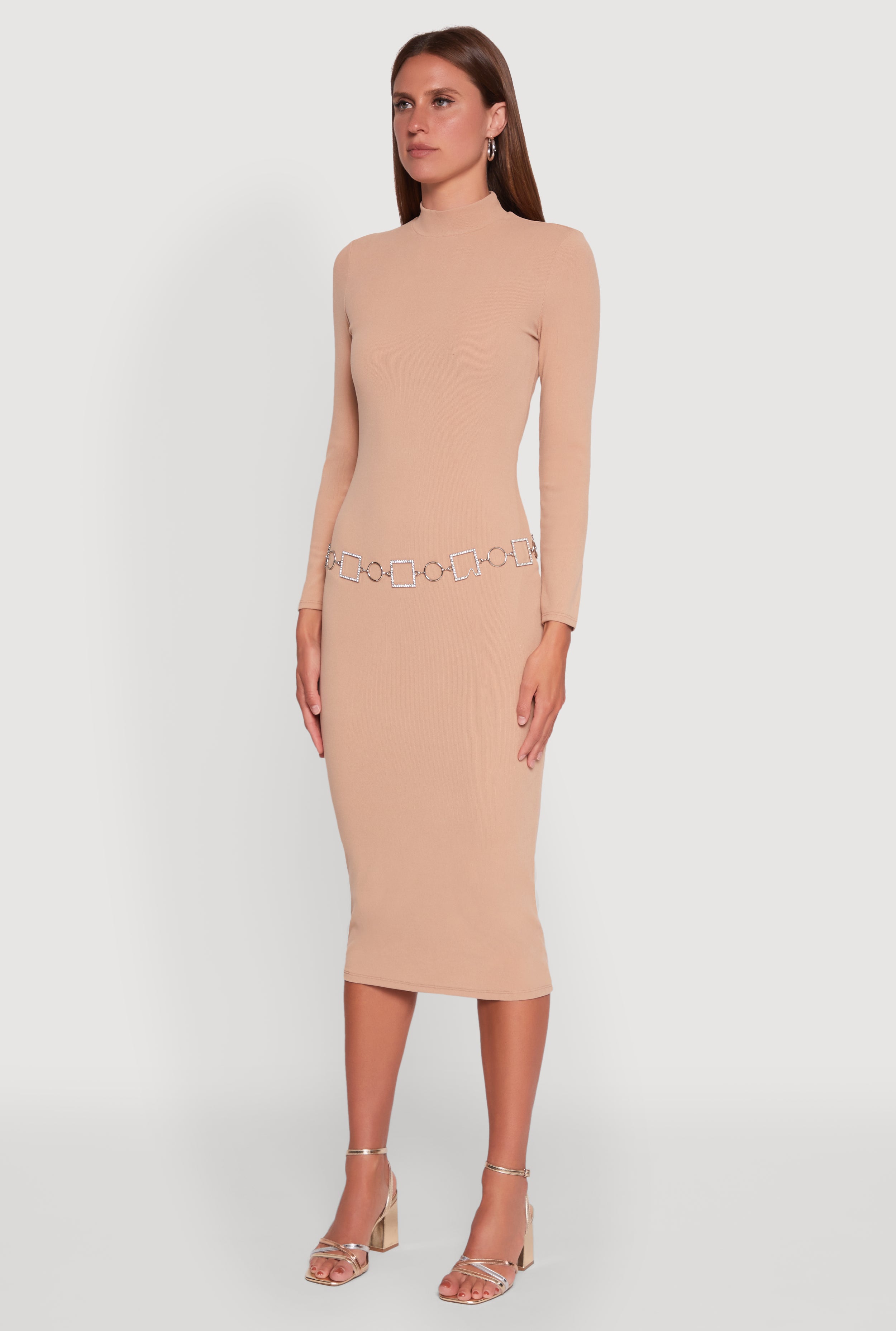 Long Sleeve Mock Neck Midi Dress