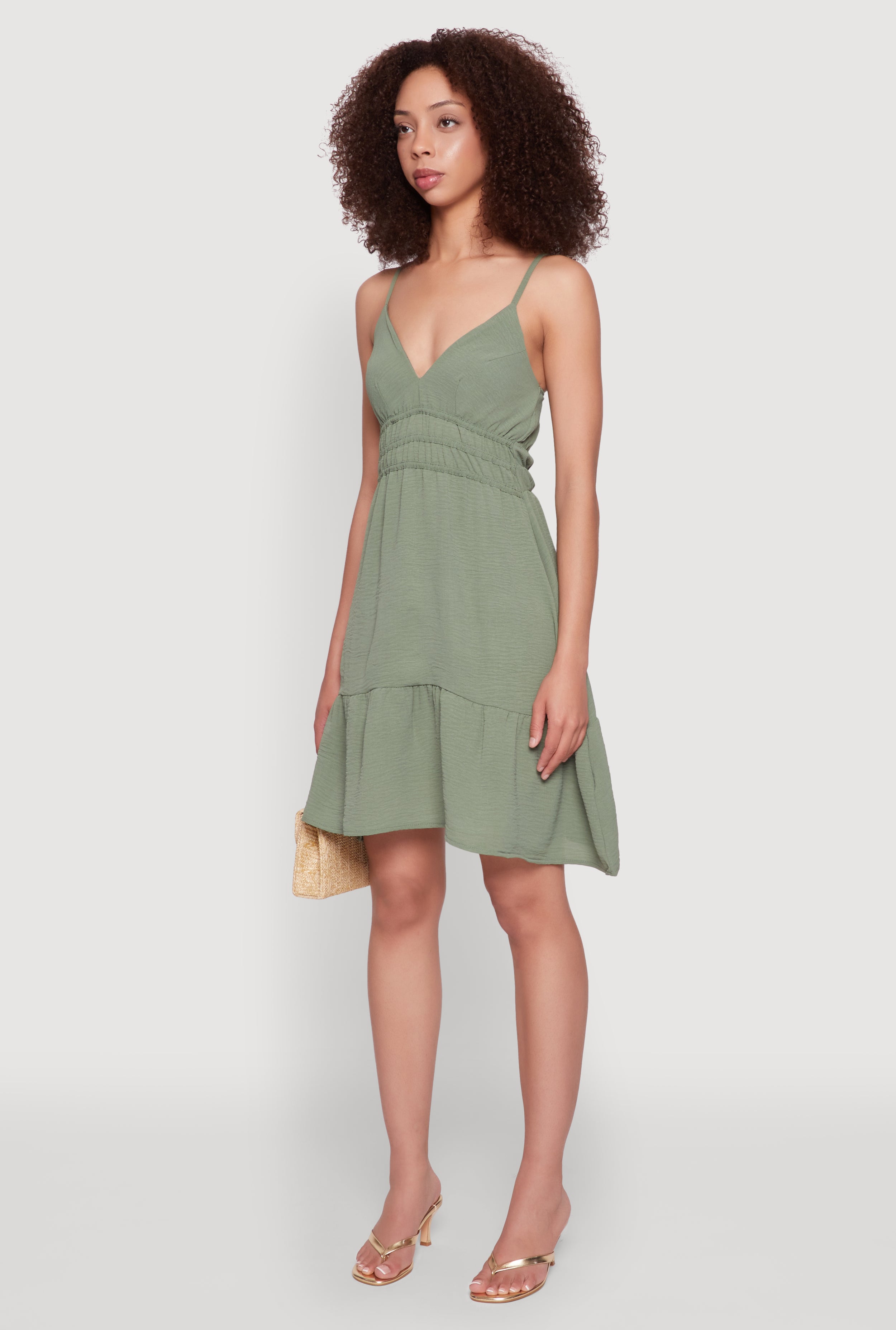 Sleeveless Empire Waist Dress with V Neck and Adjustable Straps