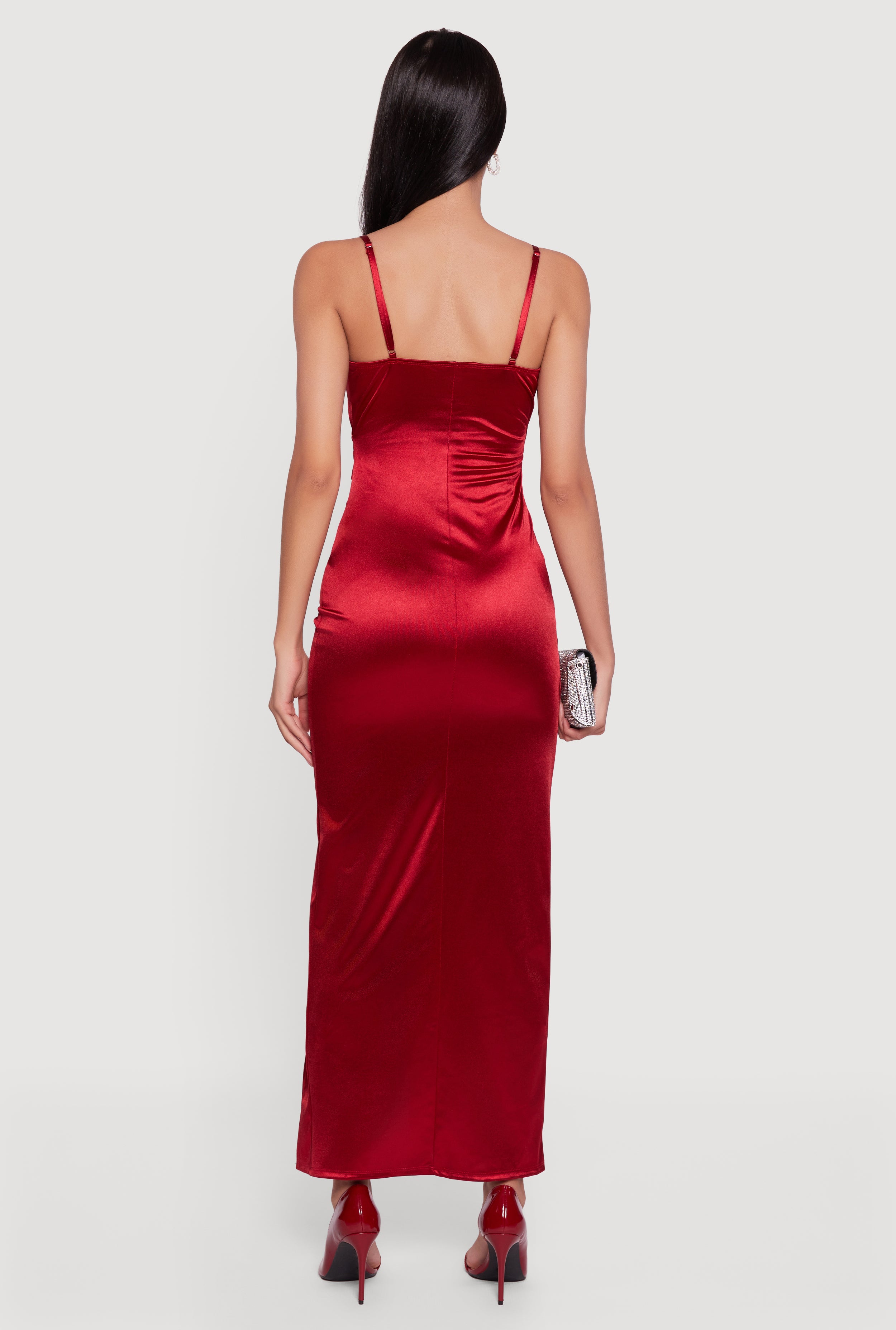 Step into effortless elegance with this Satin Ruched Faux Wrap Maxi Dress. Designed to hug your curves in all the right places, its sleek satin fabric and flattering V-neckline create a look that鈥檚 both timeless and totally now. The side slit adds a playful touch, perfect for turning heads at your next night out or special occasion. Whether it鈥檚 a cocktail party, prom, or anniversary celebration, this dress is your go-to for making a statement without trying too hard.