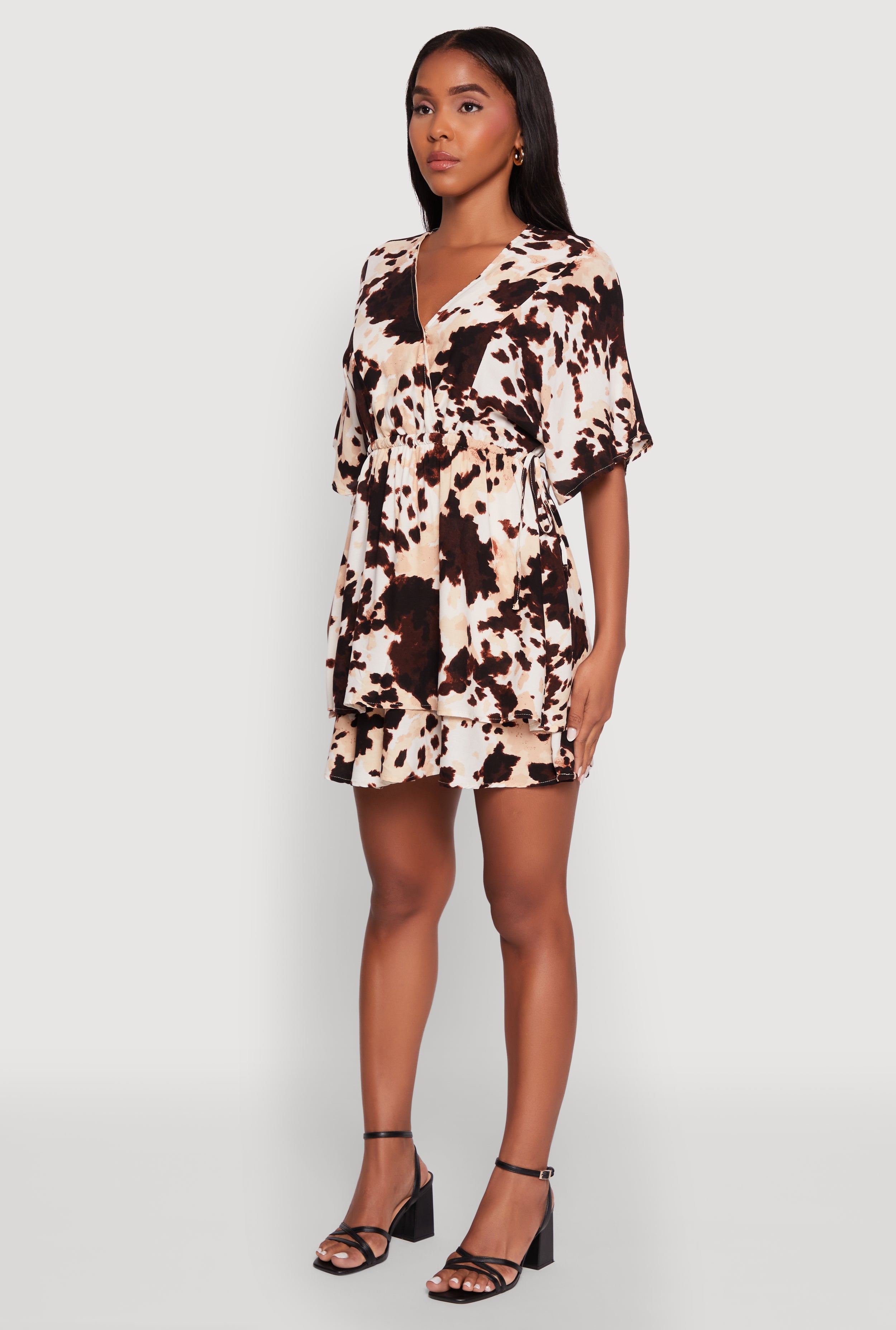 Step into effortless style with the Trendy Printed Tiered Cinched Waist V-Neck Dress. This short, flutter-sleeve dress features a flattering cinched waist and a playful tiered design that moves with you. The classic fit combined with a faux wrap silhouette and bold animal print makes it your go-to for evenings, festivals, or any casual night out. Feel confident and comfortable while turning heads wherever you go.