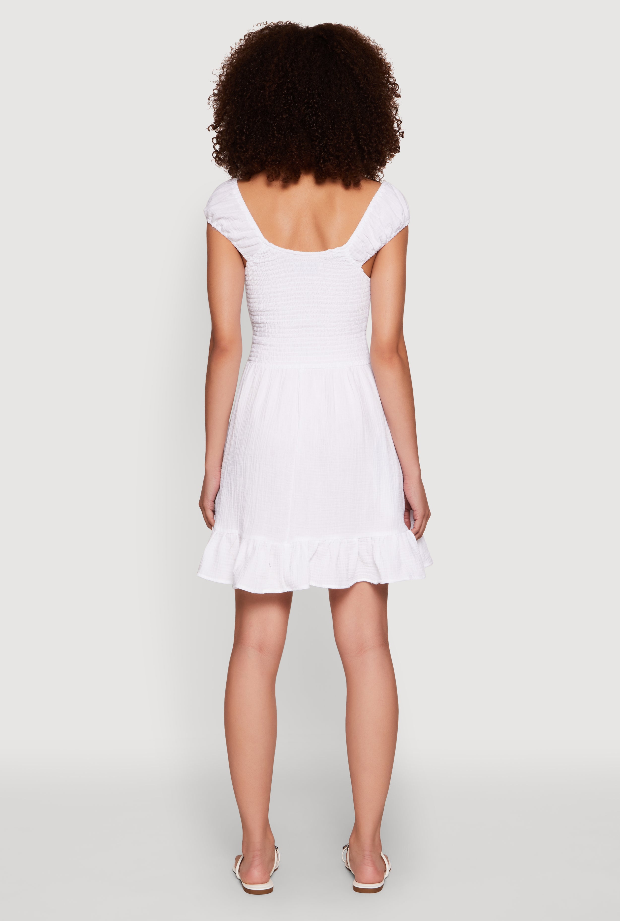 Get ready to turn heads with the Gauze Knit Smocked Skater Dress, the perfect blend of cute and comfy for your casual days. Its classic fit and flirty fit and flare silhouette make it a go-to for effortless style. Featuring puff sleeves and a scoop neck, this short-length dress is all about those adorable details that make you feel confident and free. Whether you're brunching with friends or just vibing on a weekend, this dress is your new bestie for looking fabulous without trying too hard.