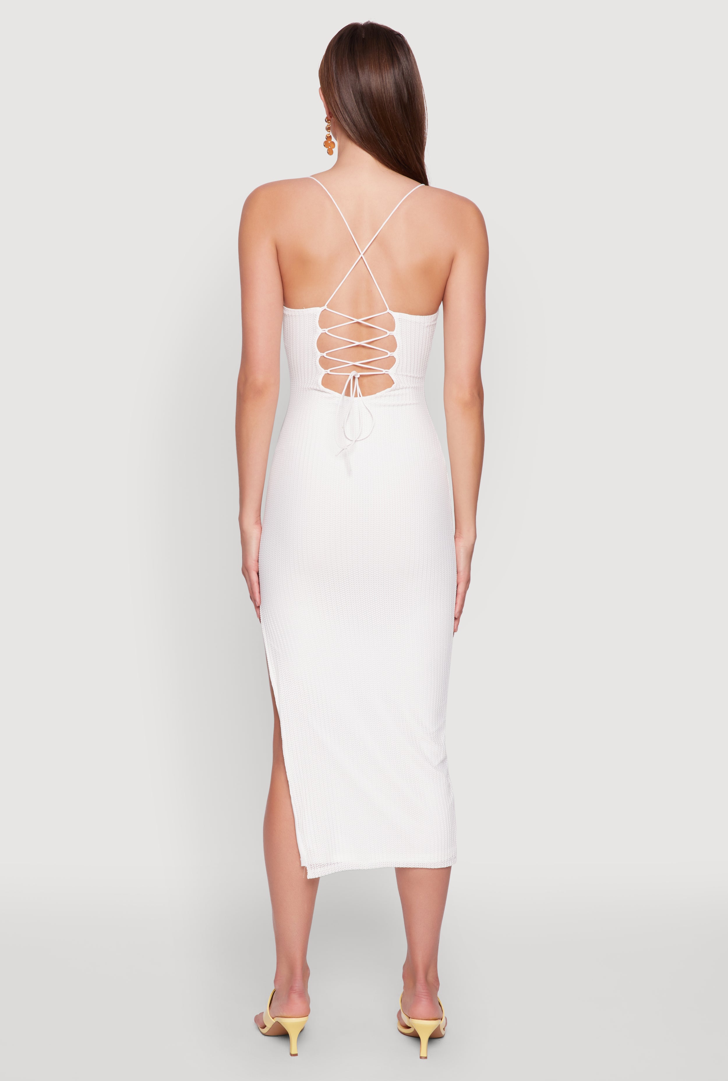 Get ready to turn heads with the Iris Lace Up Back Side Slit Cami Dress. This effortlessly chic piece is perfect for everything from casual hangouts to nights out at the club or a cocktail party. The curve-hugging fit and shaped silhouette highlight your best features, while the mid-length design keeps it flirty and fun. The scoop neck adds a touch of simplicity, and the side slit brings a dash of daring. Whether you're dressing up or down, this versatile dress is your new go-to for looking fabulous without breaking the bank.