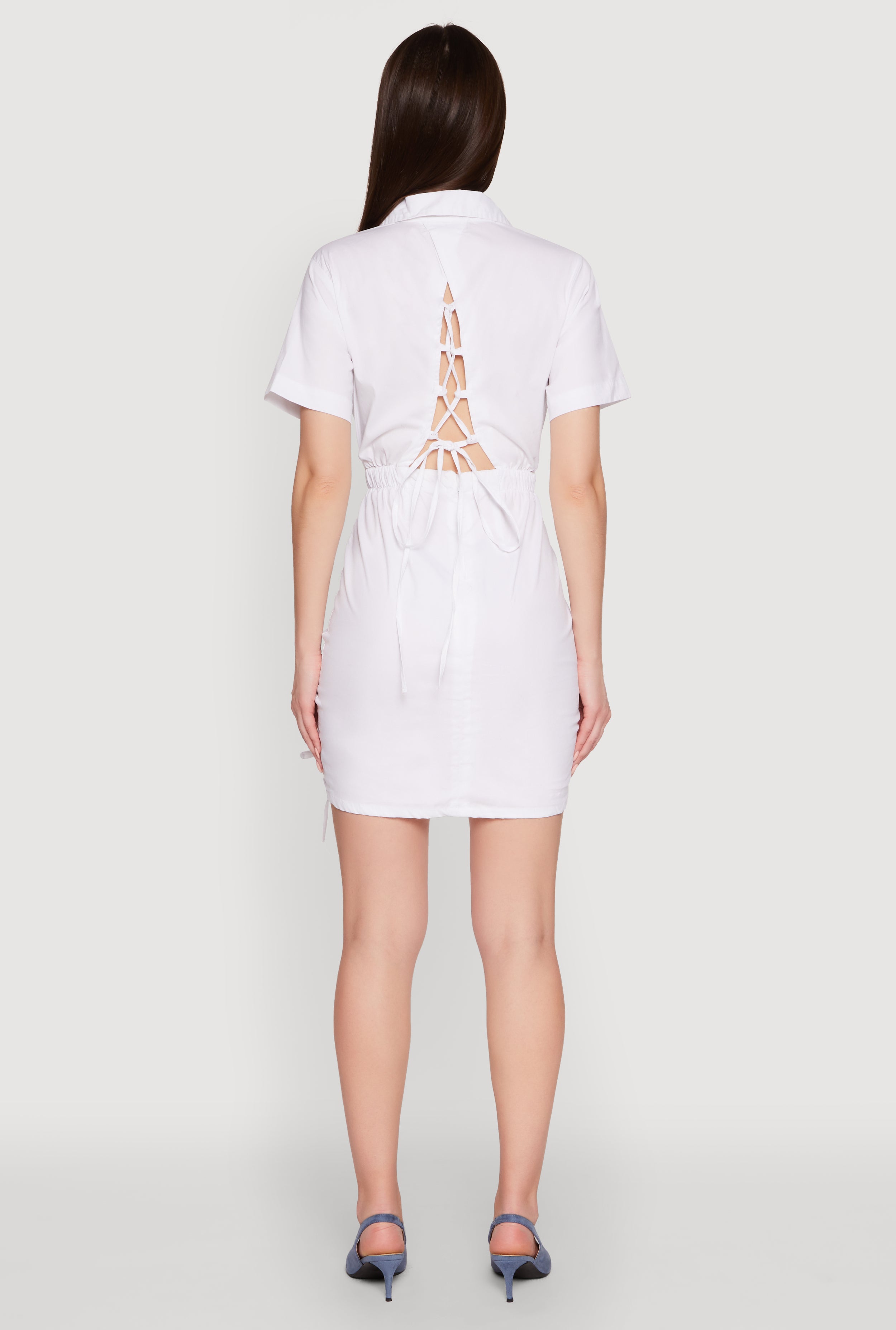Turn heads wherever you go with our Lace Up Back Button Front Bodycon Mini Dress鈥攜our new go-to for effortless style and flirty charm. Designed to hug your curves and highlight your silhouette, this dress features a trendy button front, a daring lace-up back, and a chic cut-out detail that鈥檚 perfect for making a statement. Whether you're hitting up brunch, a night out, or just want to feel fabulous, this mini dress is your secret weapon for looking stylish and feeling confident.
