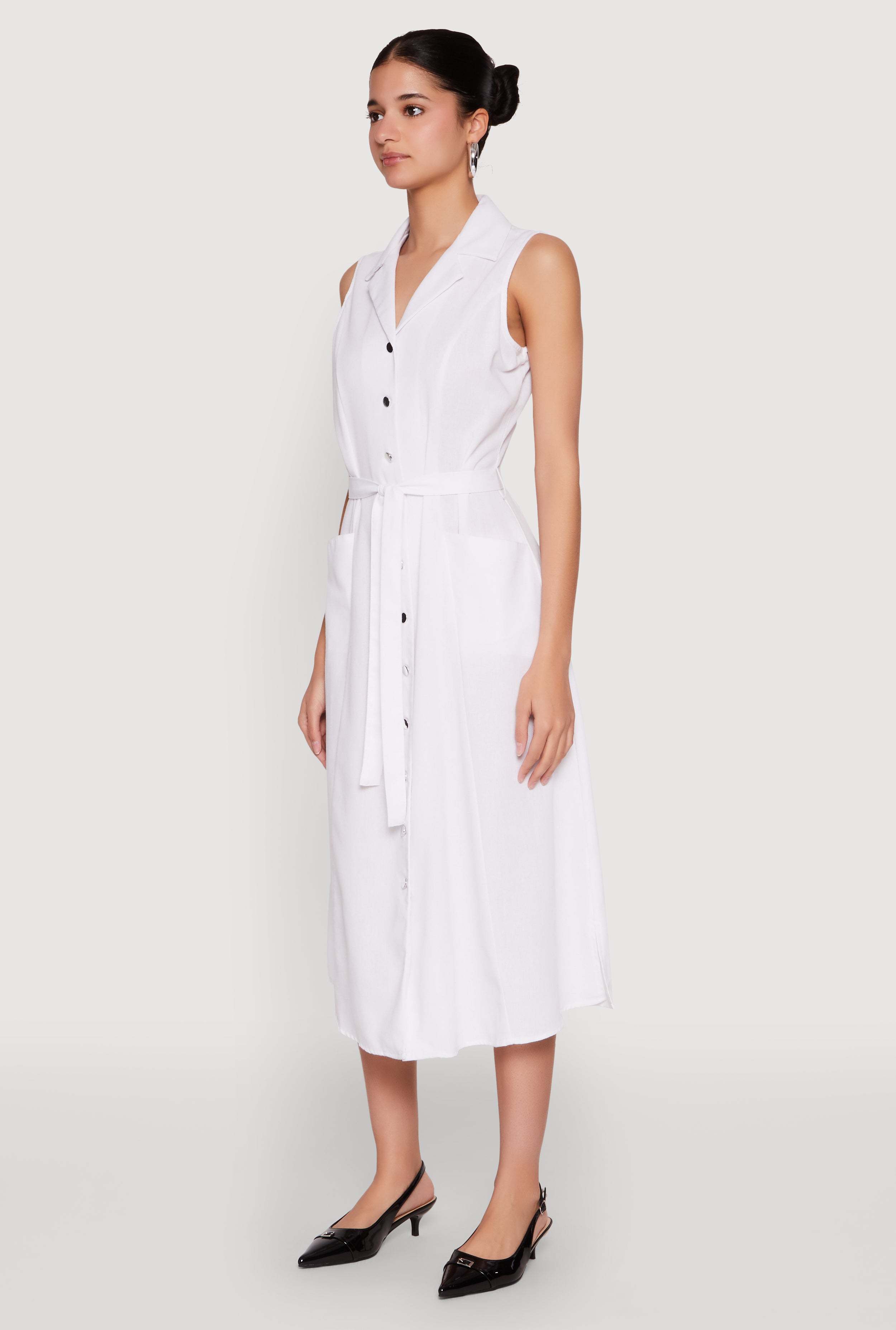 Step into effortless style with our Lapel Collar Tie Waist Belted Midi Dress. Perfect for casual days, this dress combines a timeless shirt silhouette with a modern twist. The sleeveless design and classic fit make it a versatile addition to your wardrobe, while the tie waist belt adds a flattering touch. Whether you're brunching with friends or running errands, this midi dress is your go-to for chic comfort and easy elegance.