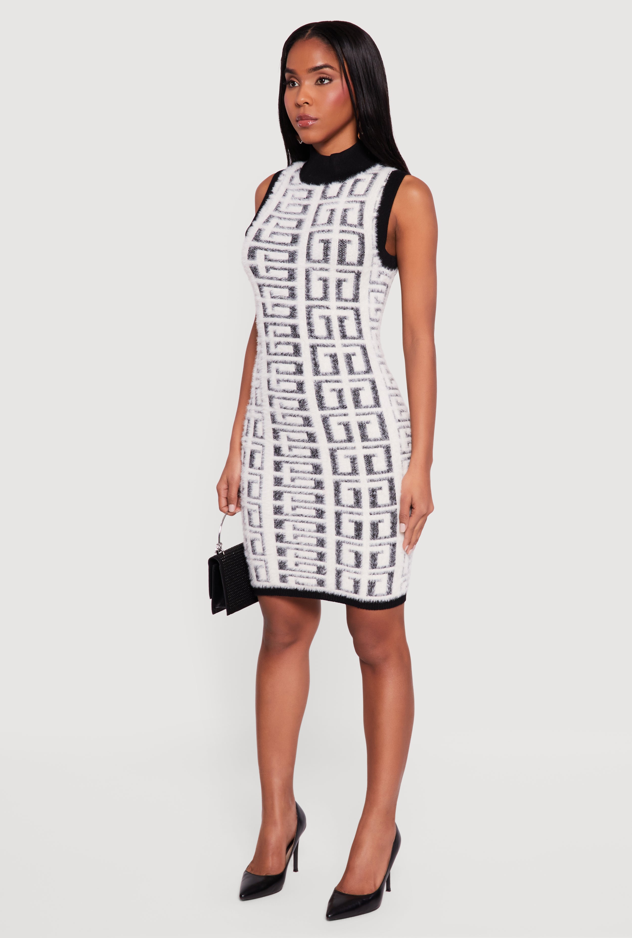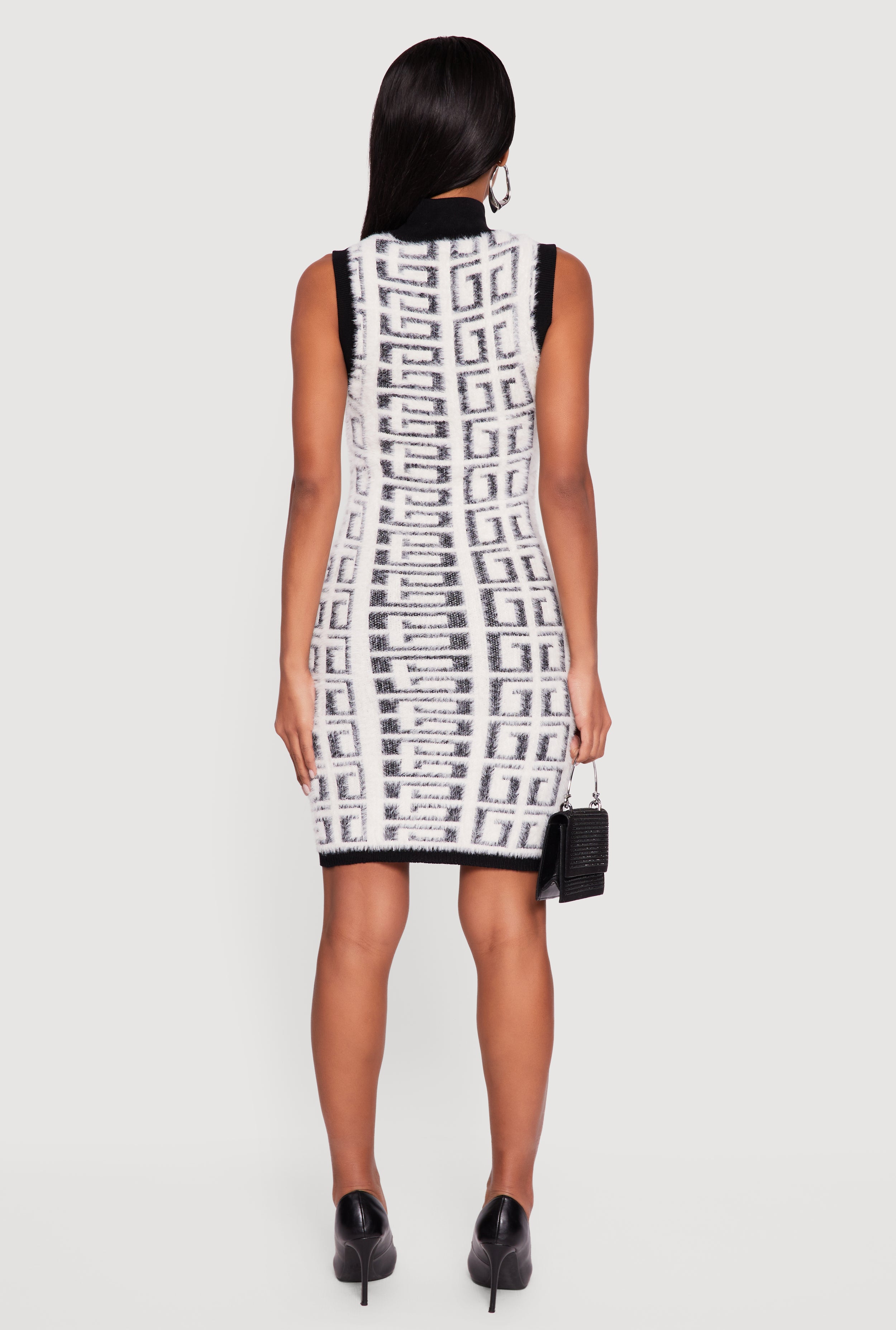 Geometric Eyelash Knit Sleeveless Mock Neck Sweater Dress