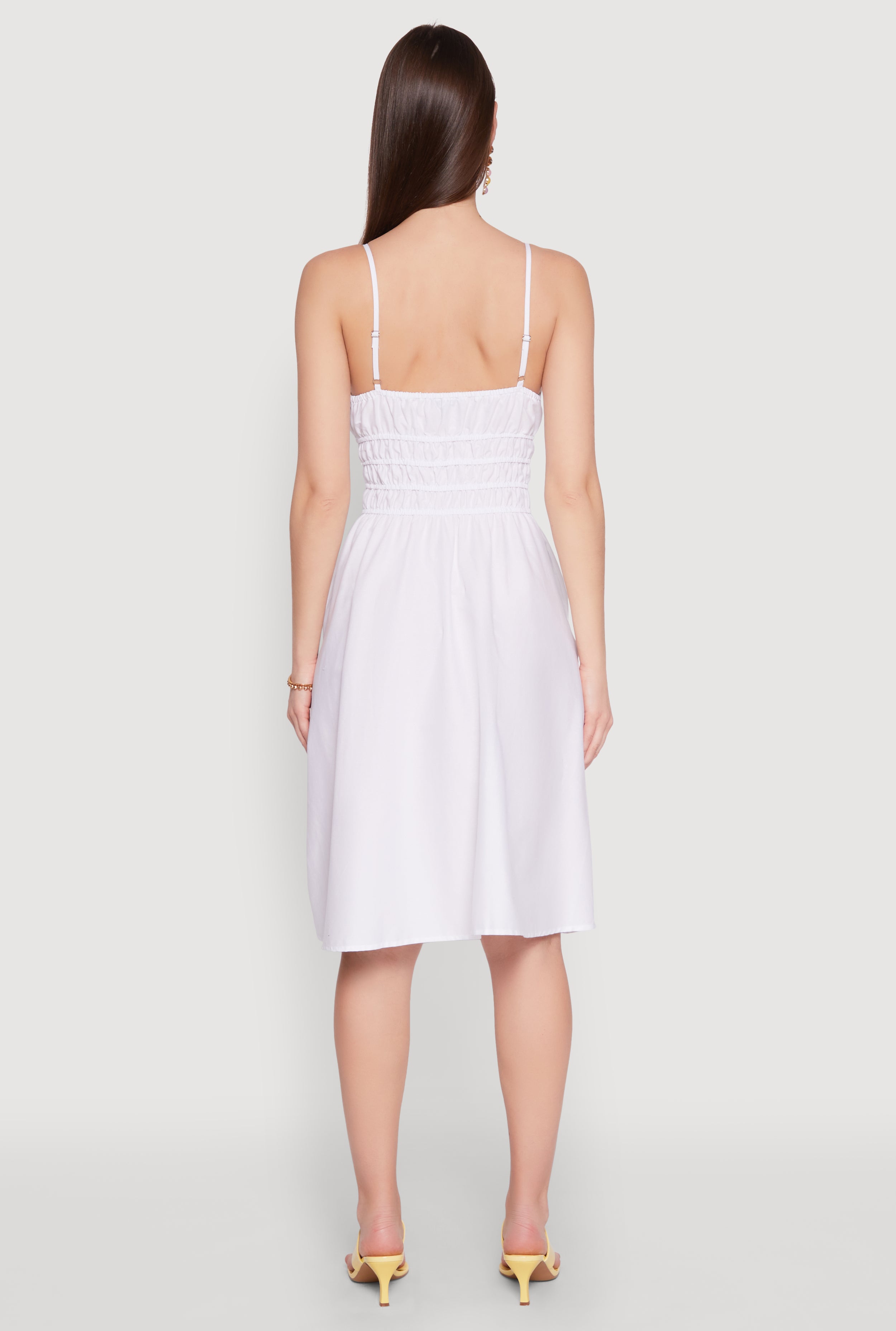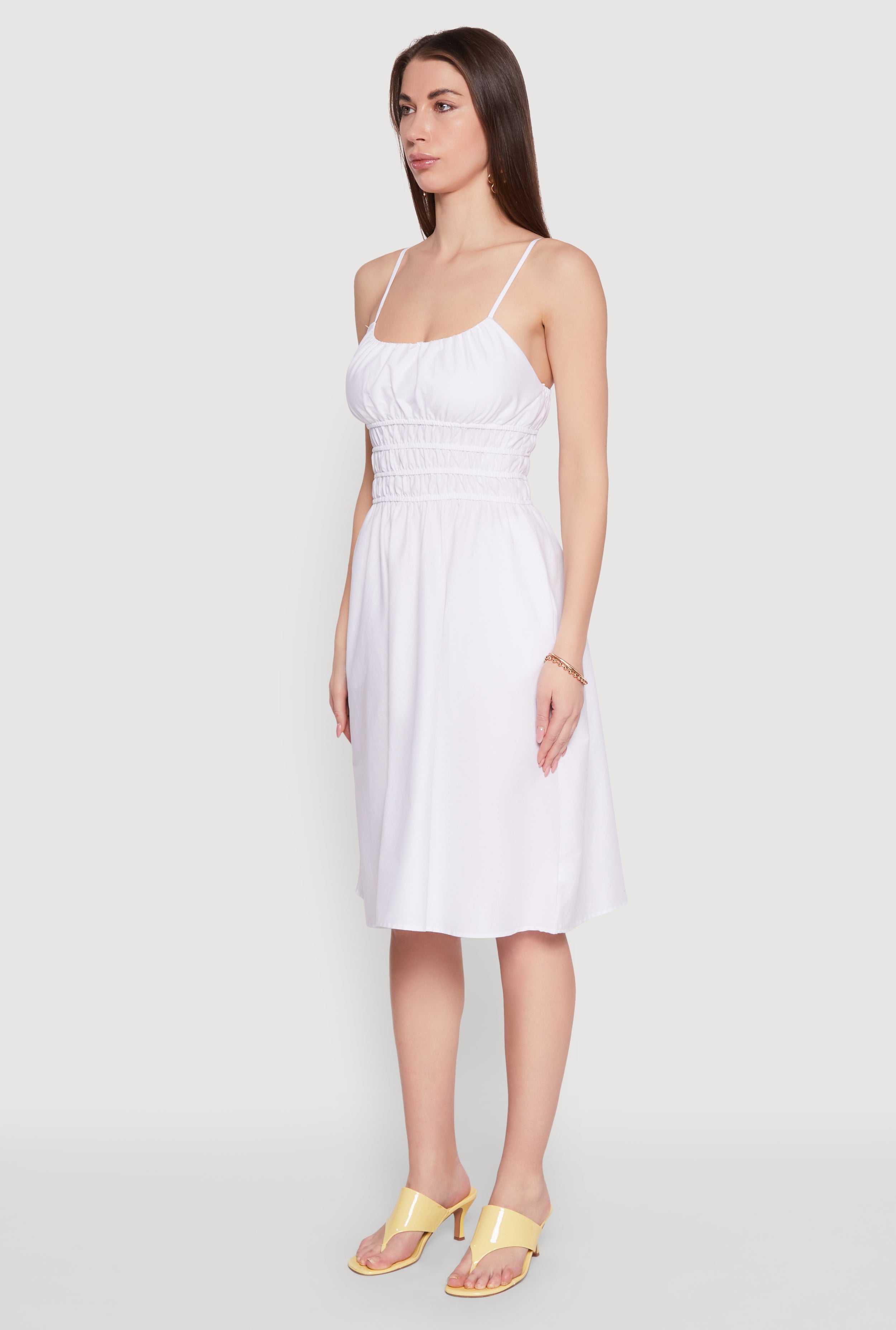 Step into effortless style with the Smocked Waist Poplin Midi Dress. This classic fit dress features a flattering empire waist and a breezy A-line silhouette that moves with you. Crafted from lightweight poplin, it鈥檚 perfect for casual days when you want to feel comfortable and look effortlessly chic. The sleeveless design and scoop neck add a touch of easygoing charm, while adjustable straps let you customize the fit just right. Whether you鈥檙e brunching with friends or exploring the city, this midi dress is your go-to for laid-back cool vibes.