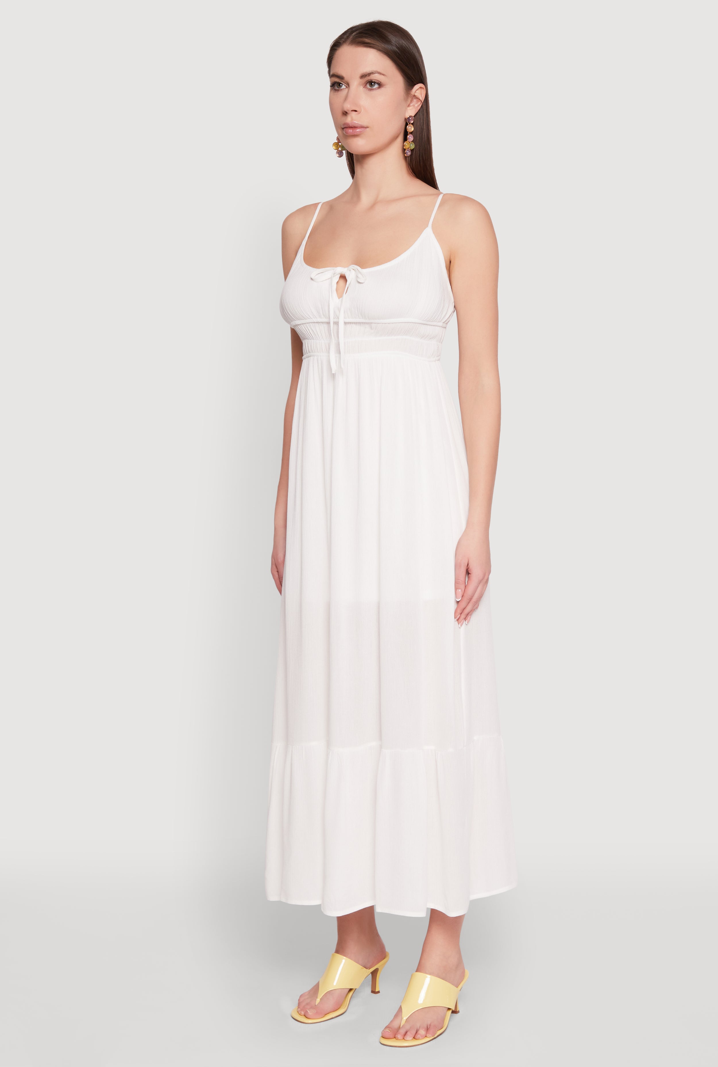 Step into effortless style with the Bl芒she Tie Front Keyhole Maxi Dress. Designed for those who love to make a statement without trying too hard, this long-length dress features a flattering empire waist and a playful tie front detail. The sleeveless scoop neck adds a touch of flirty charm, making it perfect for casual days or weekend outings. Its classic fit and timeless silhouette ensure you look chic and comfortable wherever you go. Whether you're brunching with friends or enjoying a sunny day out, this dress is your new go-to for easy, stylish looks.