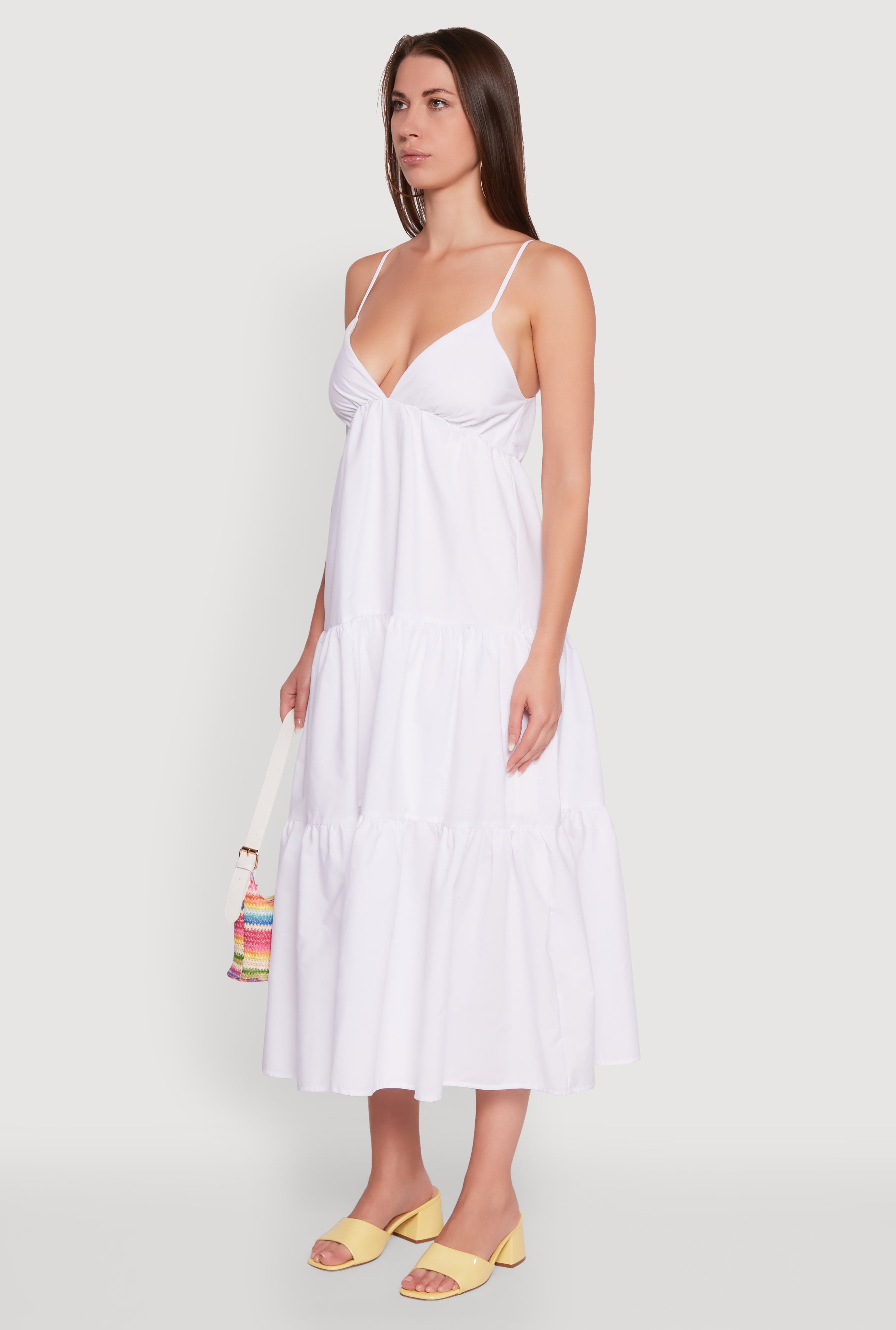 - Tiered maxi length creates a flowy, effortless look