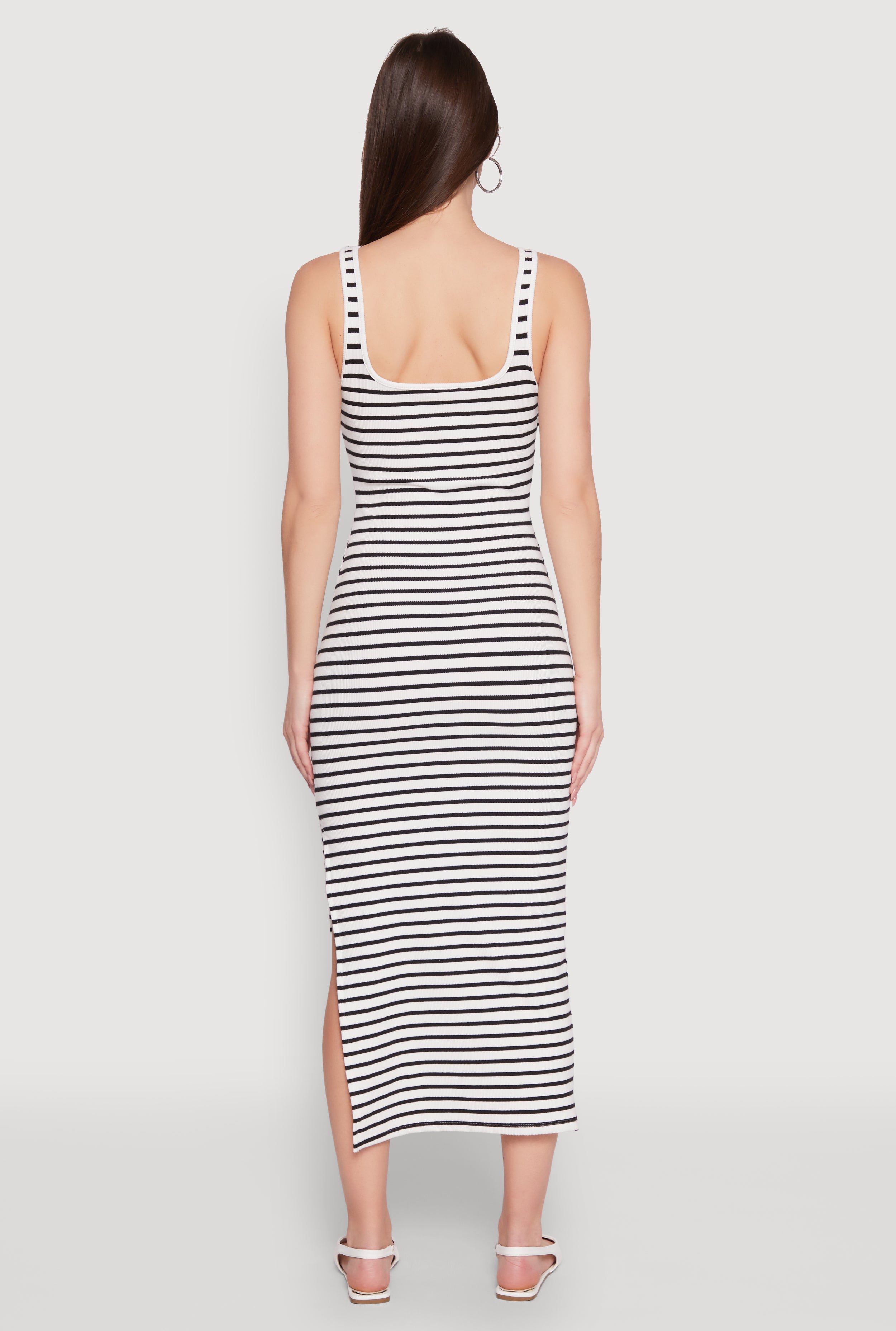 Step into effortless style with the Bl芒she Striped Side Slit Tank Dress. Perfect for those laid-back days, this mid-length dress combines a classic fit with a timeless silhouette that flatters every body shape. The sleeveless design and square neckline add a touch of modern chic, while the contrast trim brings a fun pop of detail. Made from comfy ribbed knit fabric, it鈥檚 your go-to for casual outings that look cute and feel even better. Dress it up or down and enjoy versatile fashion at an affordable price.