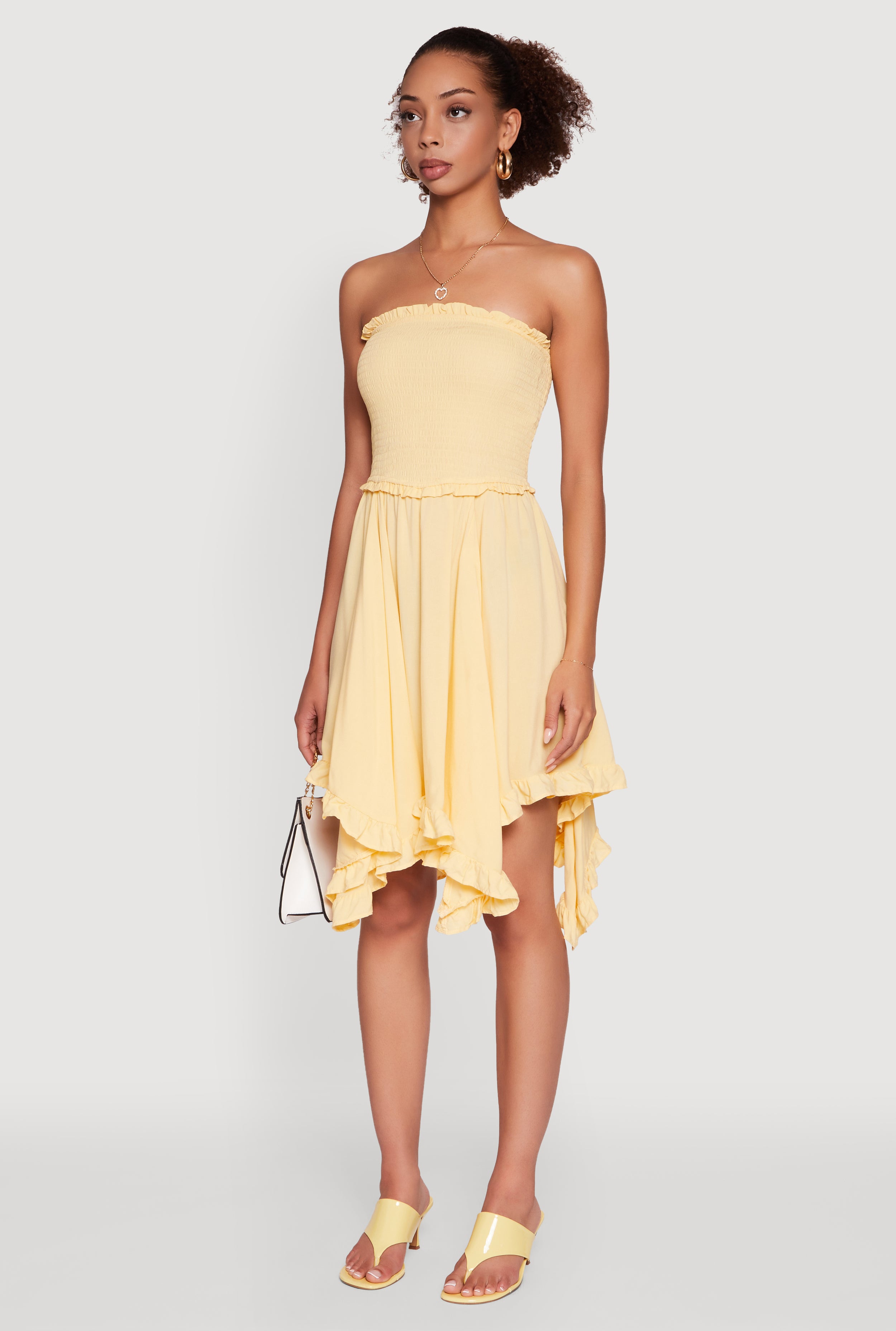 Smocked Handkerchief Hem Tube Dress