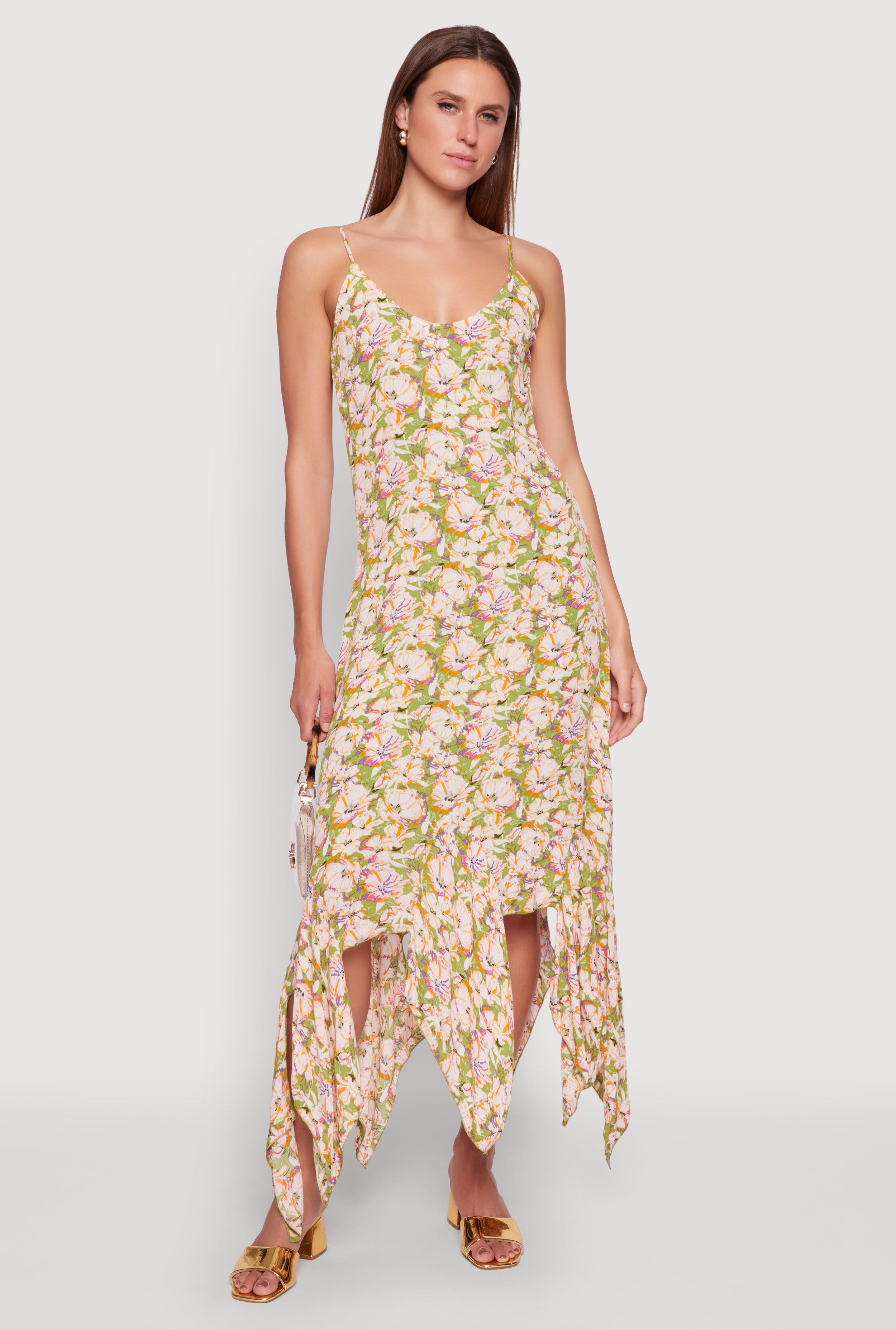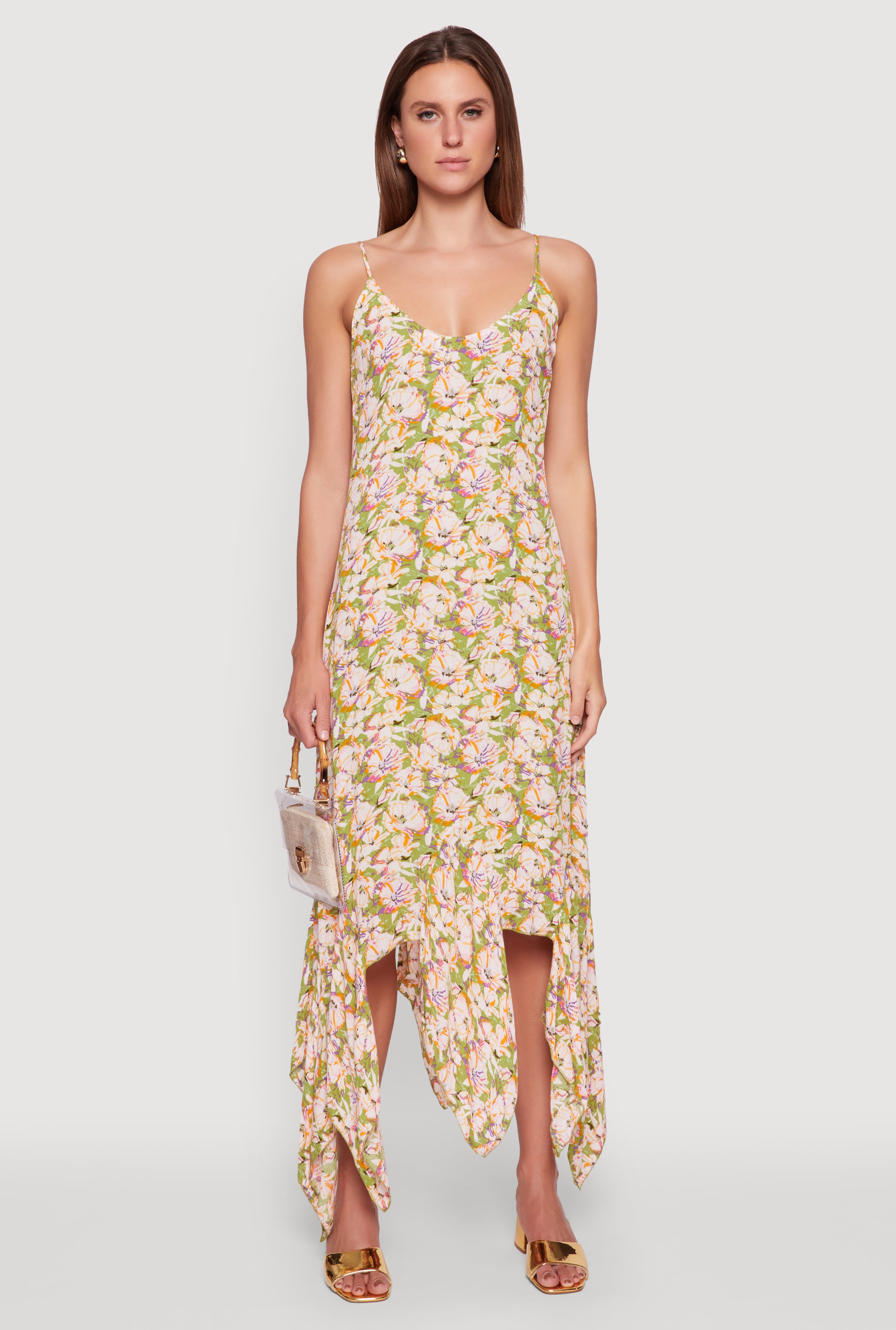 Floral Print Sleeveless Long Slip Dress with Open Tie Back