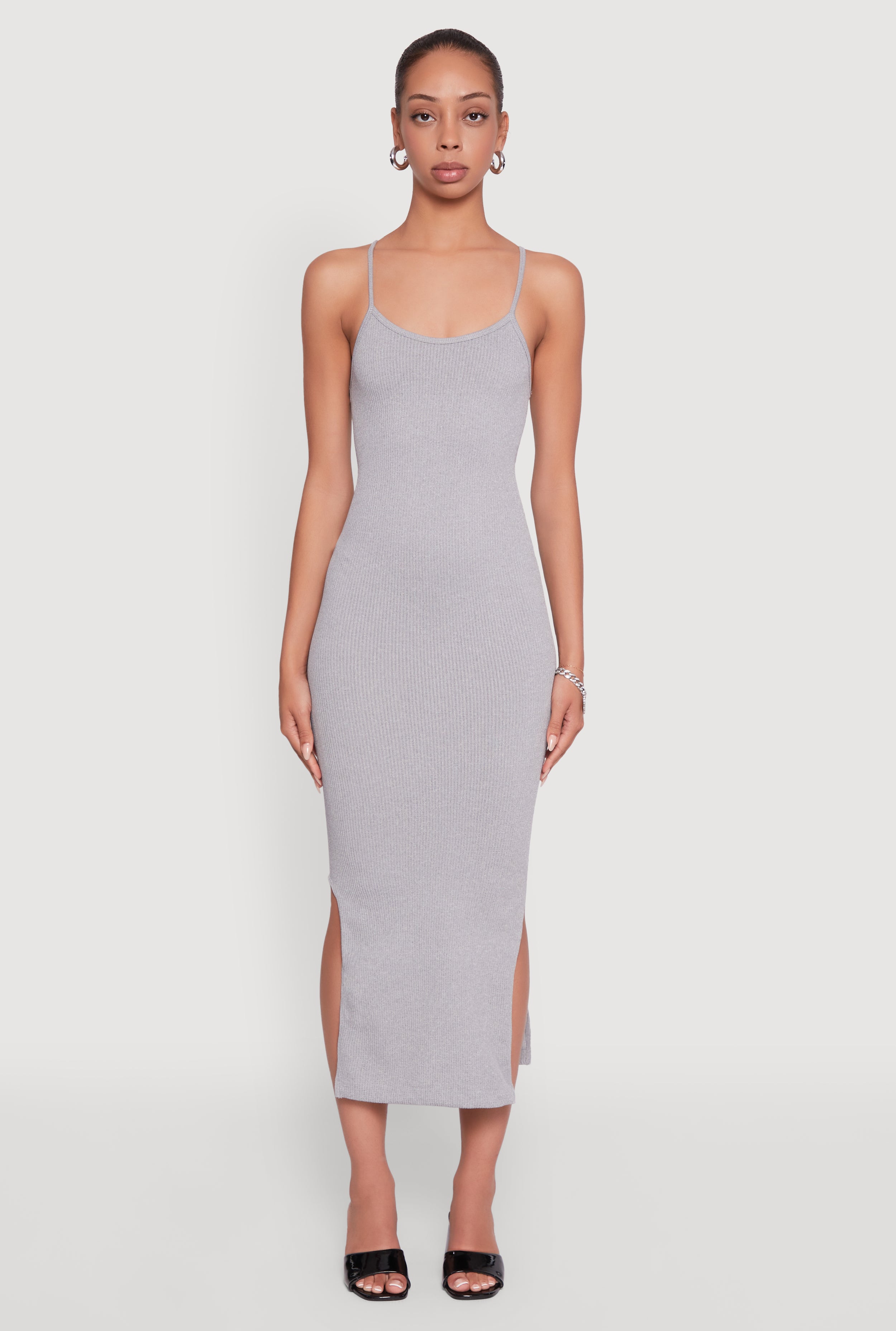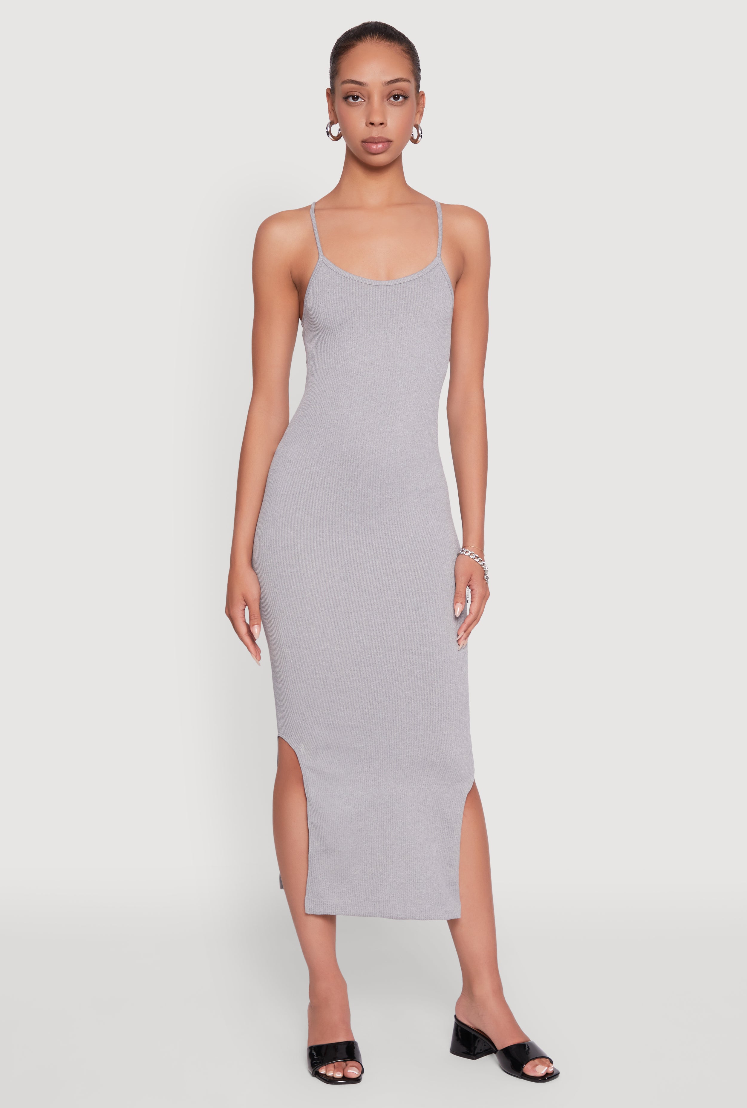 Trendy Ribbed Knit Side Slit Midi Dress