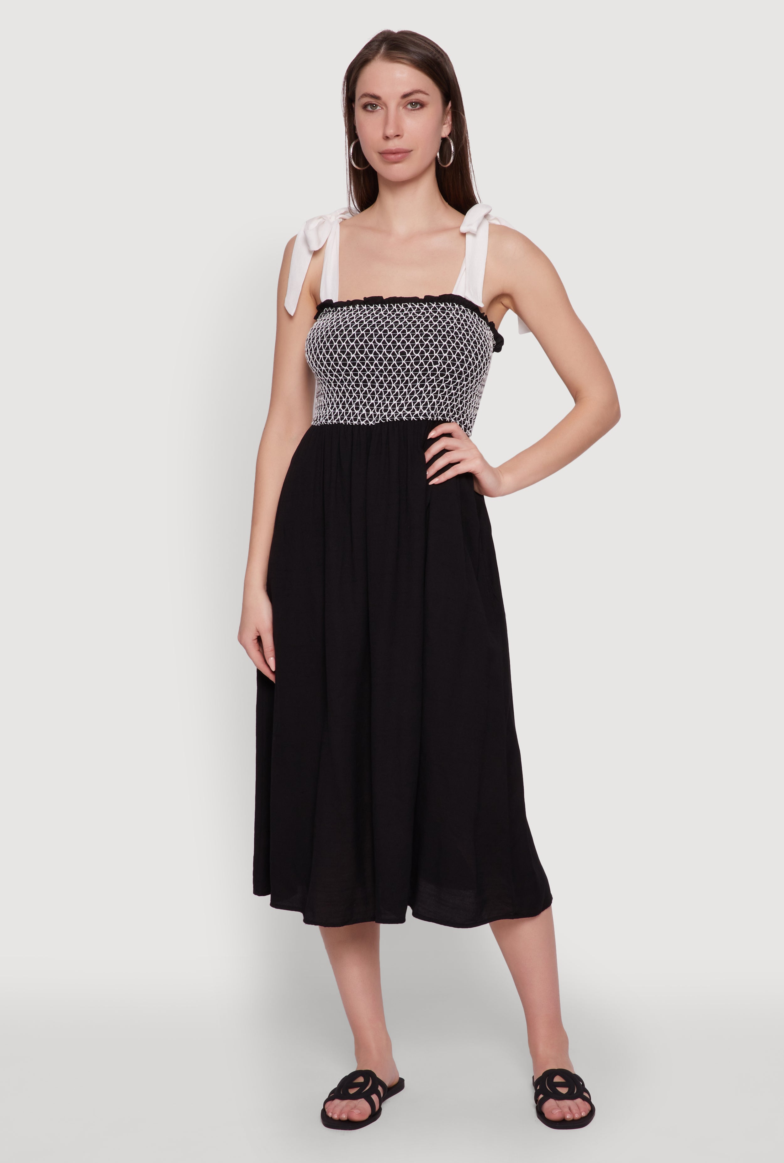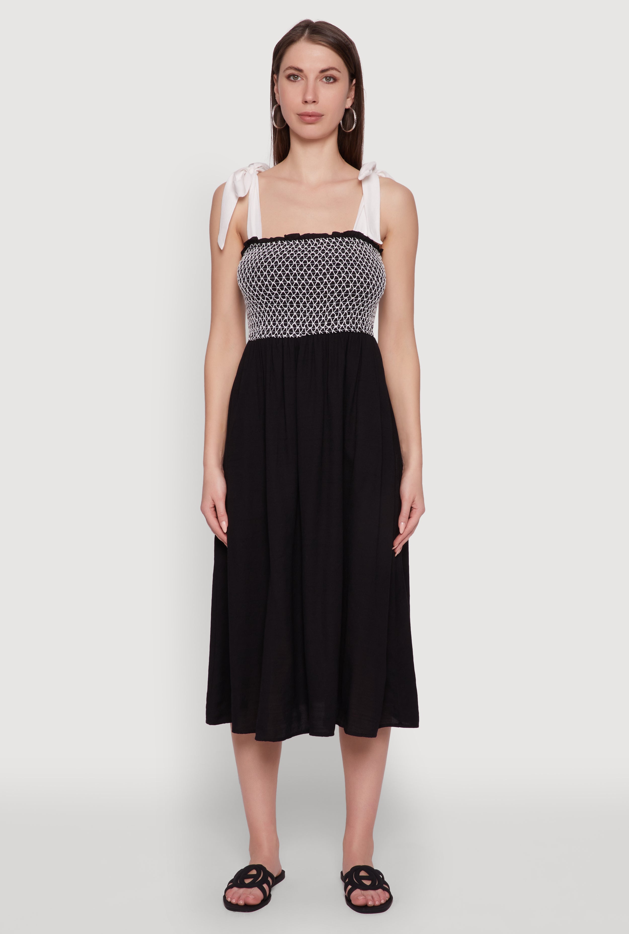 Tie Shoulder Fishnet Detail Midi Dress
