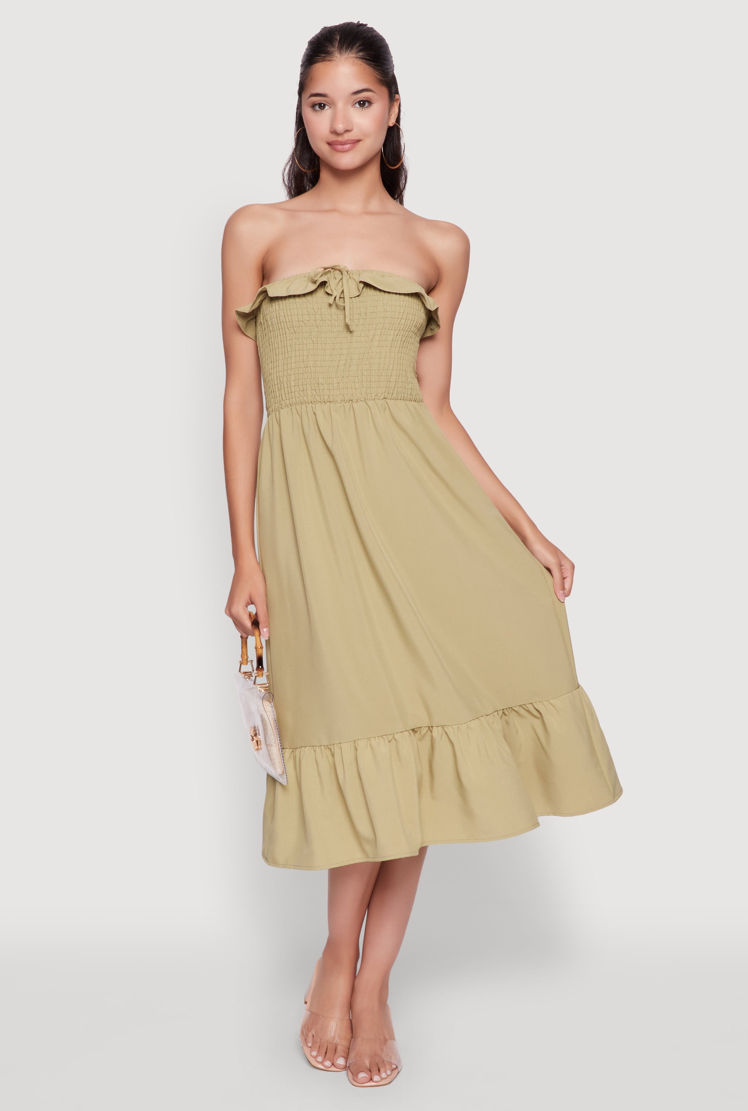 Spoon Jeans Ruffle Tiered Smocked Halter Dress
