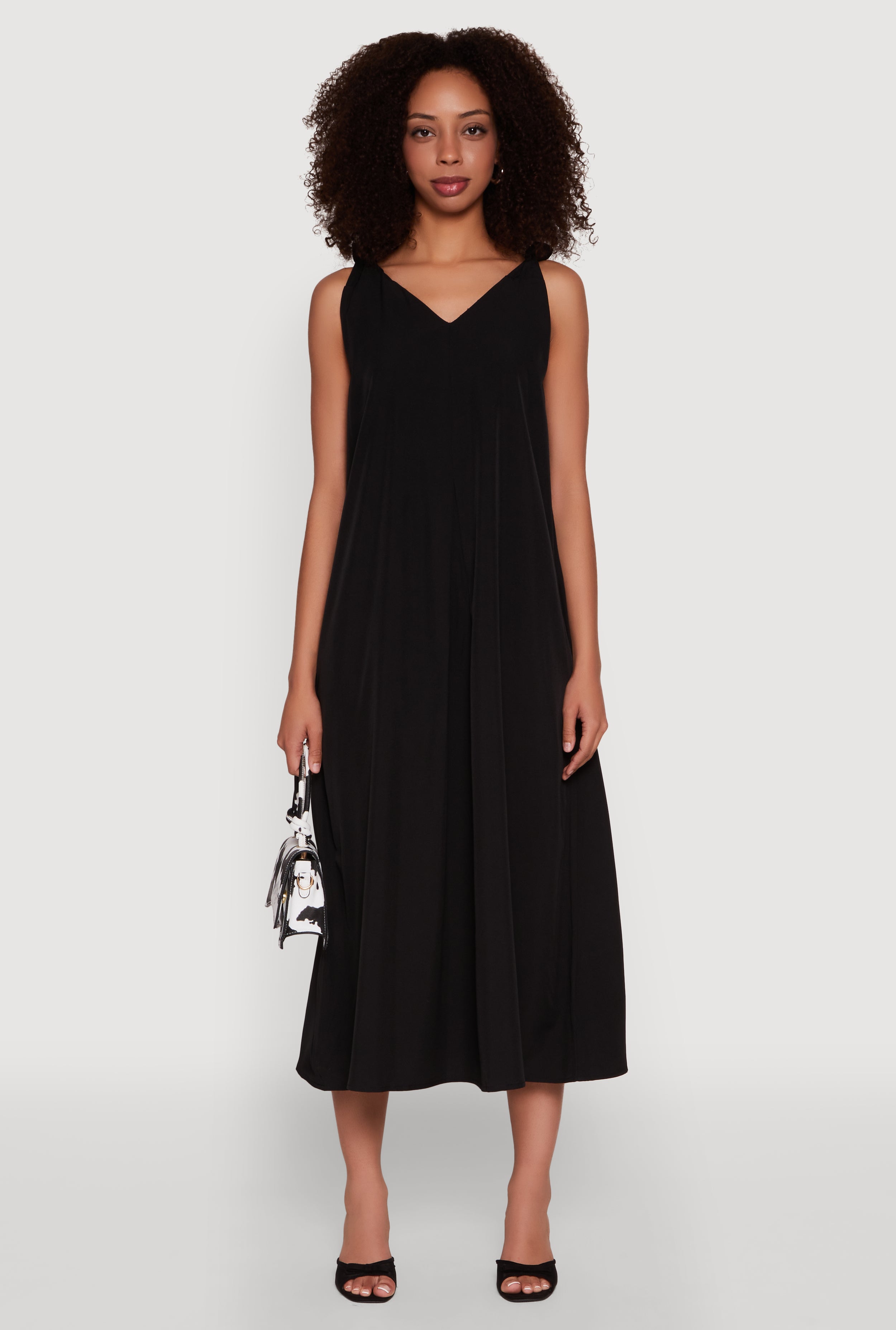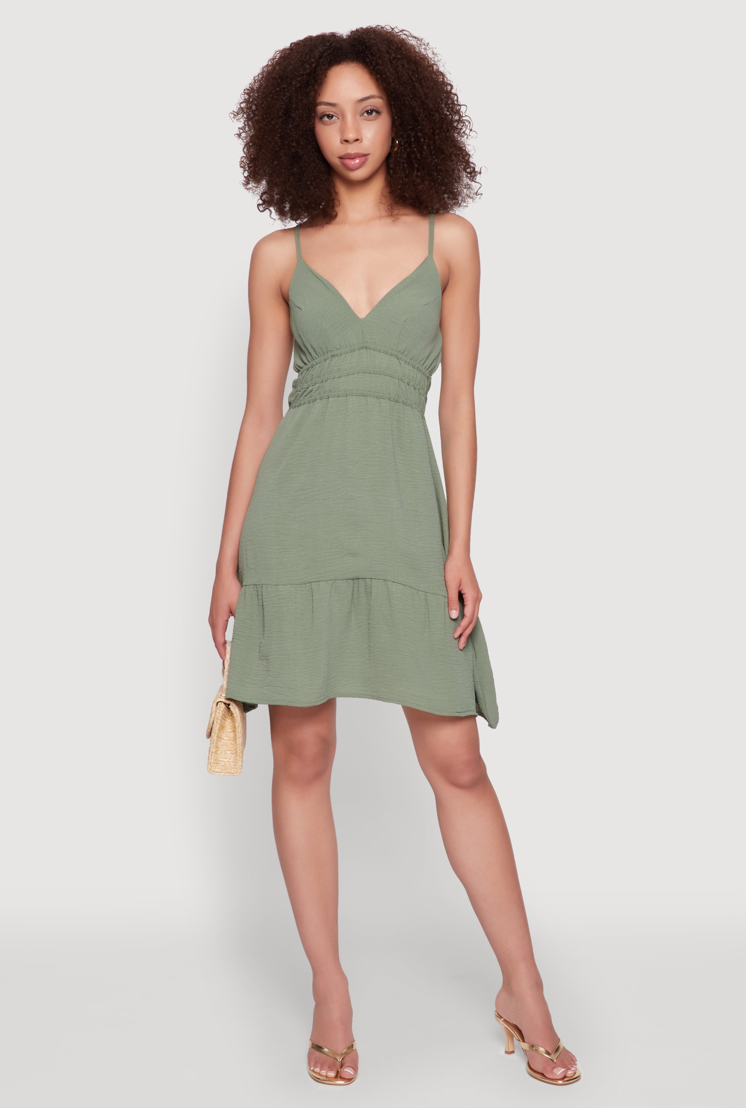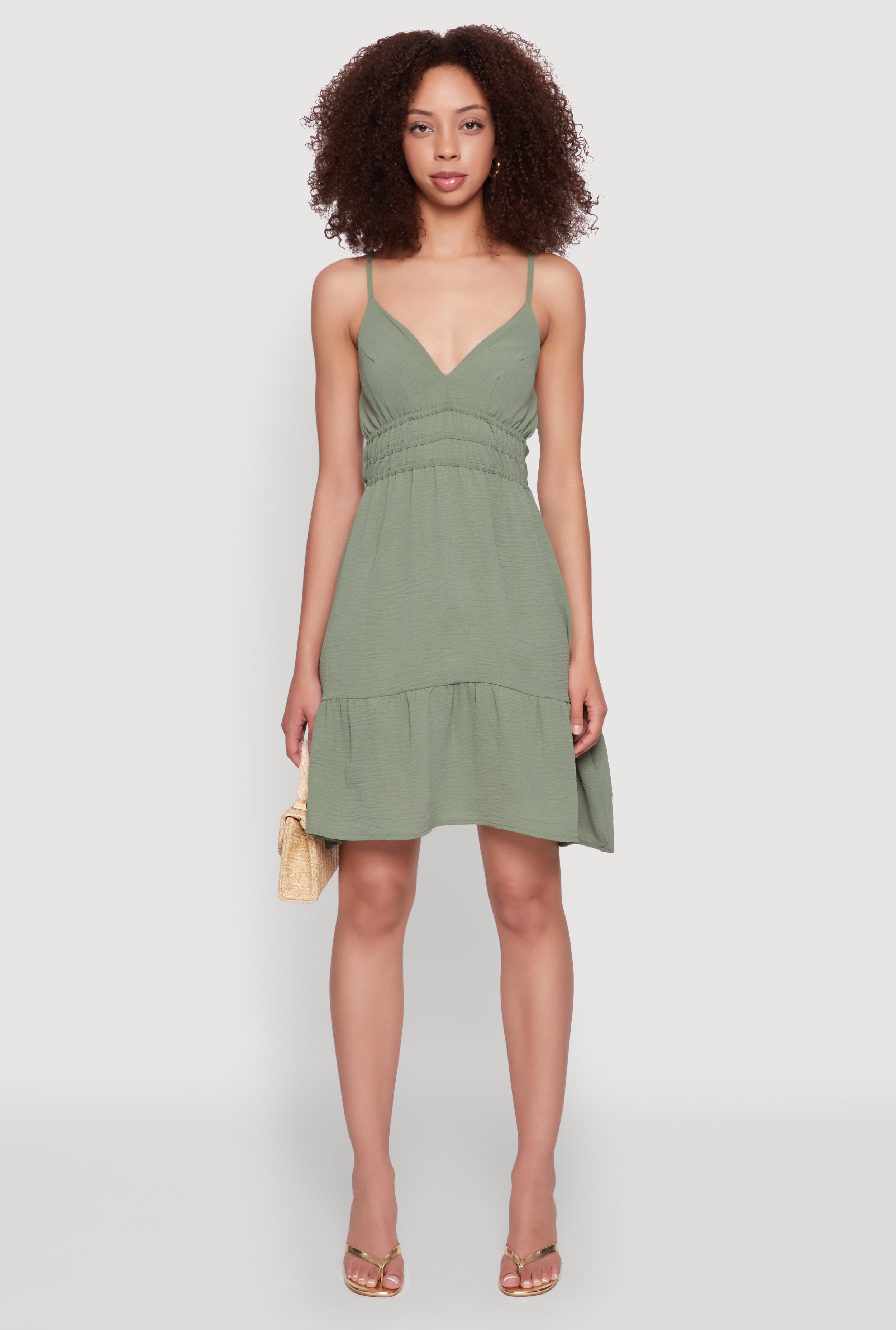 Sleeveless Empire Waist Dress with V Neck and Adjustable Straps