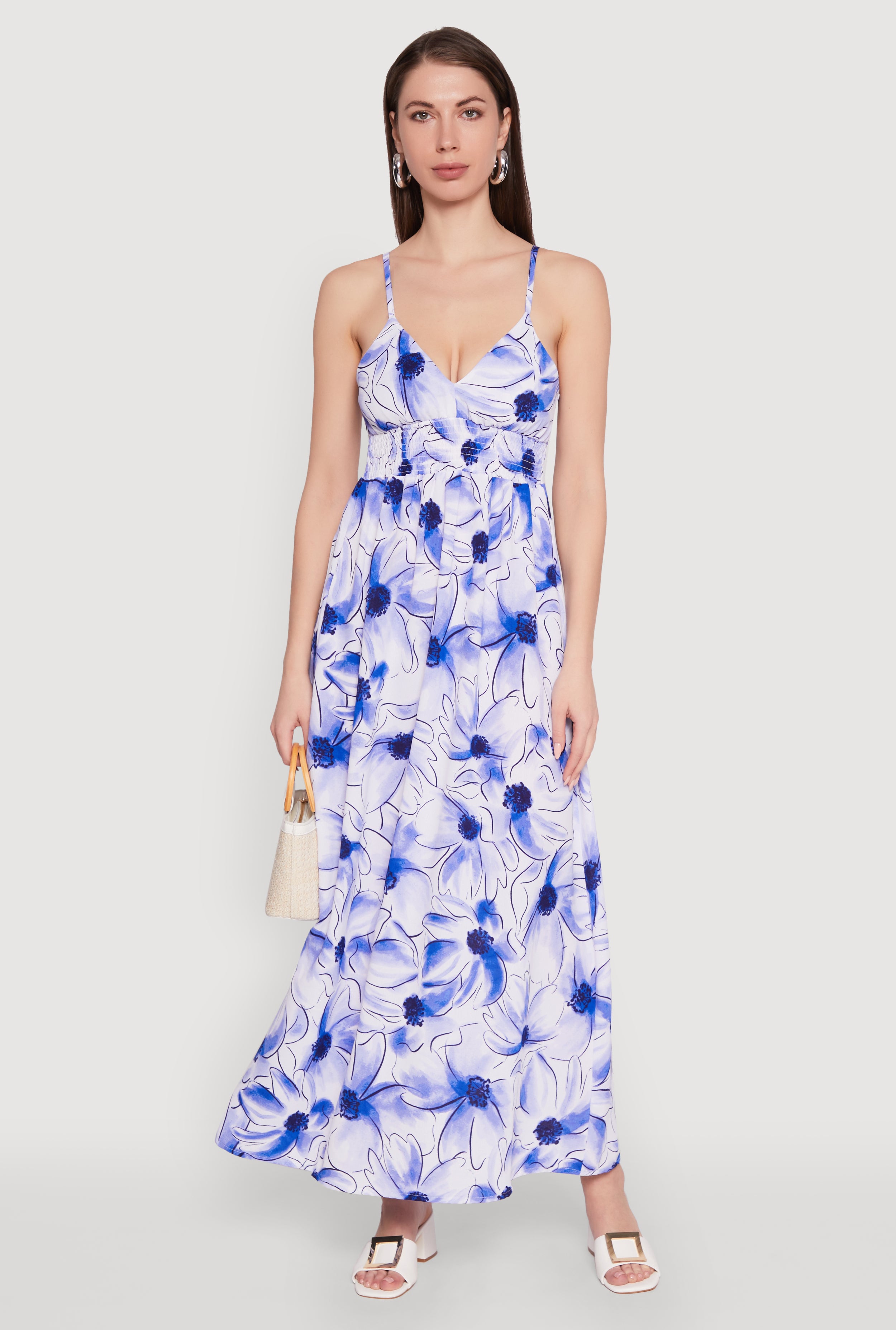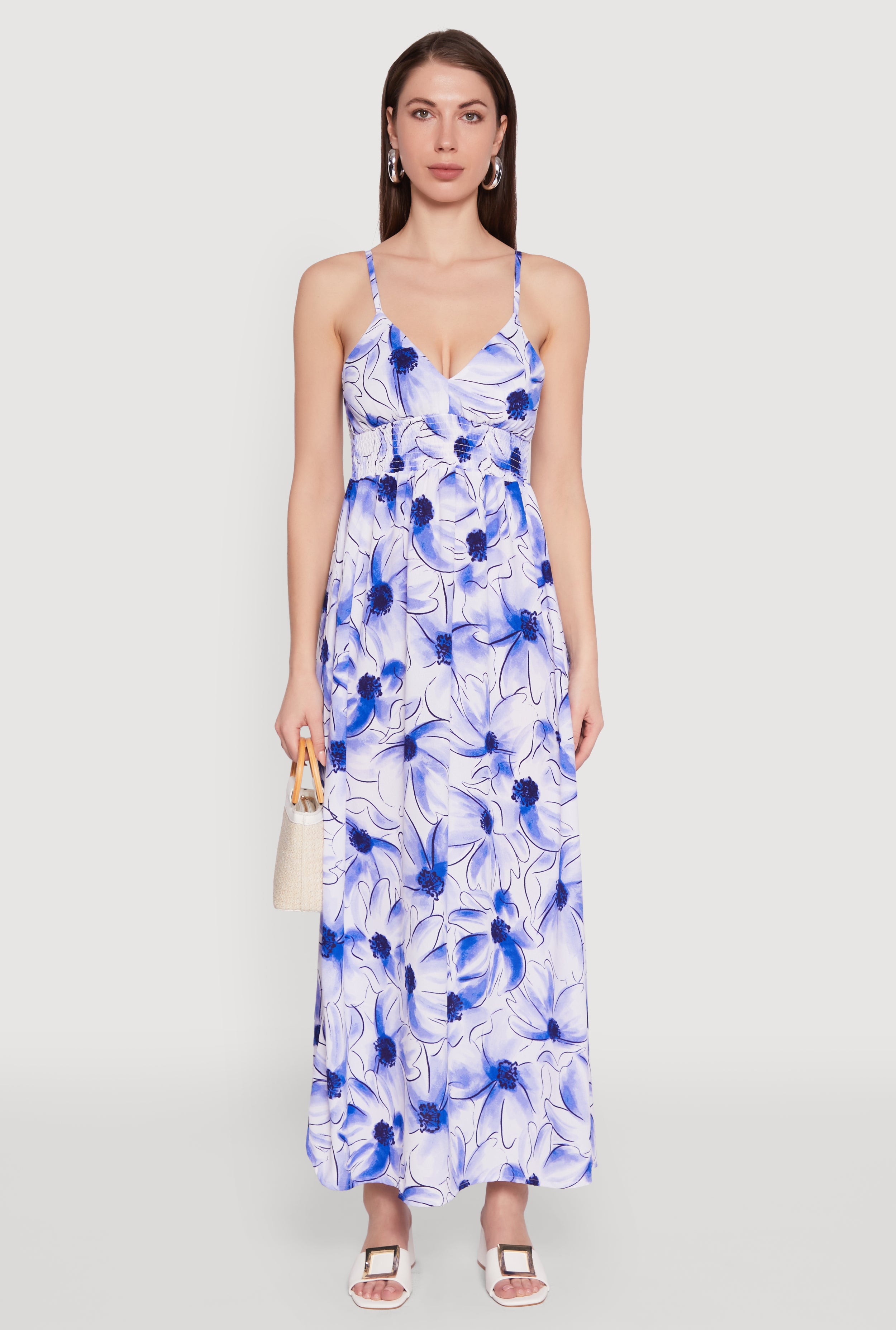 Floral Print Smocked Back Bustier Dress