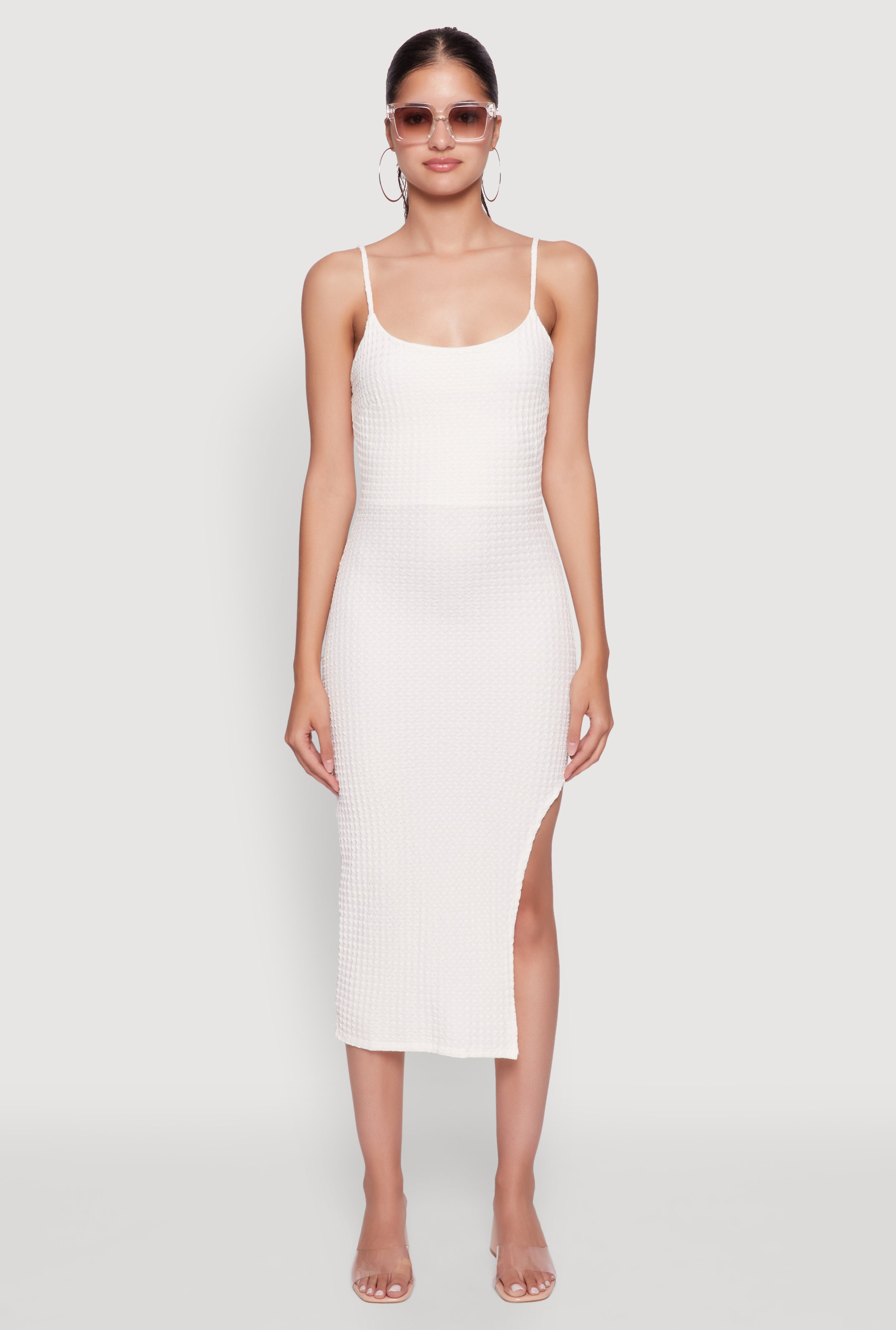 Chic Textured Knit Scoop Neck Bodycon Dress with Side Slit