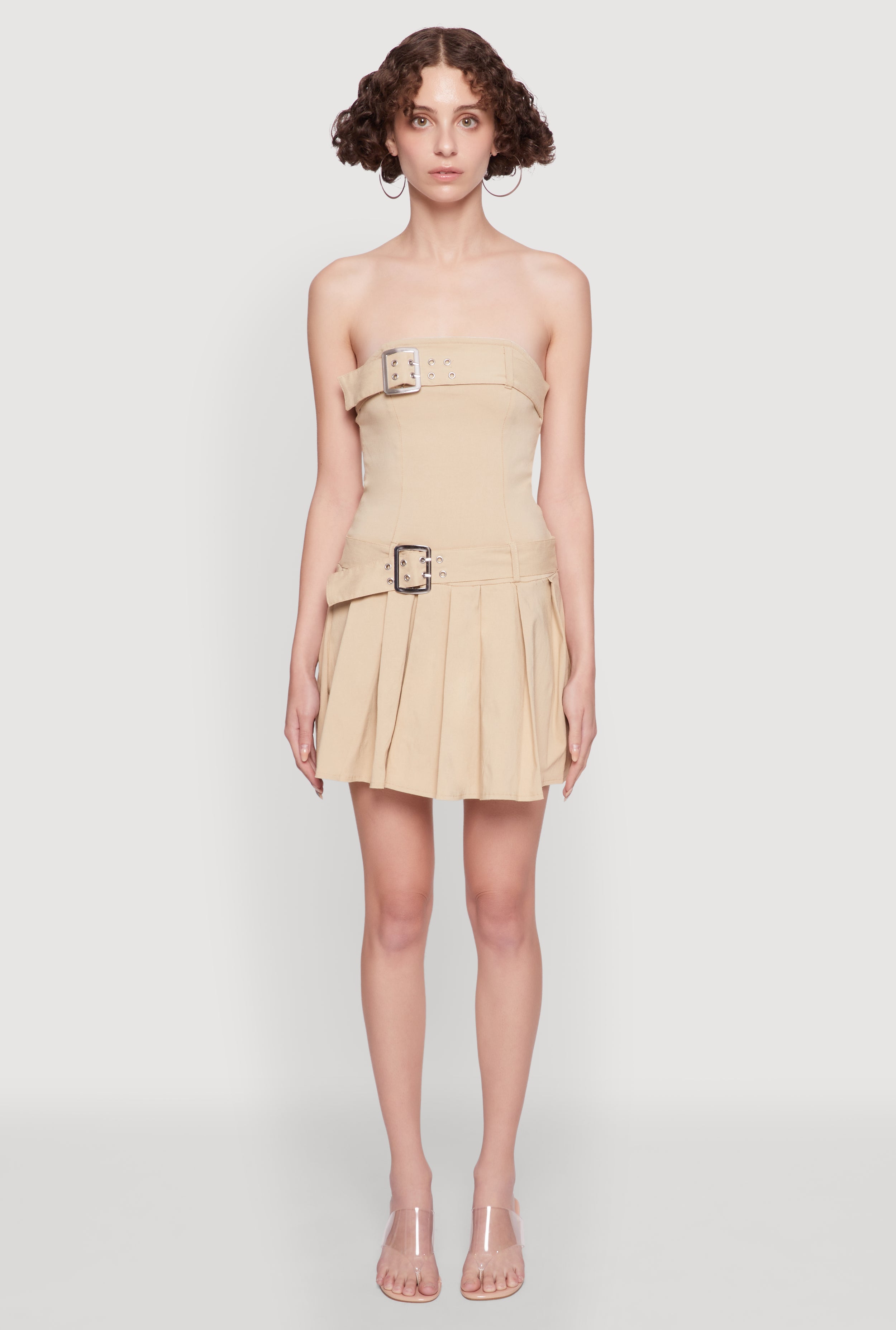 Strapless Double Belted Pleated Skater Dress