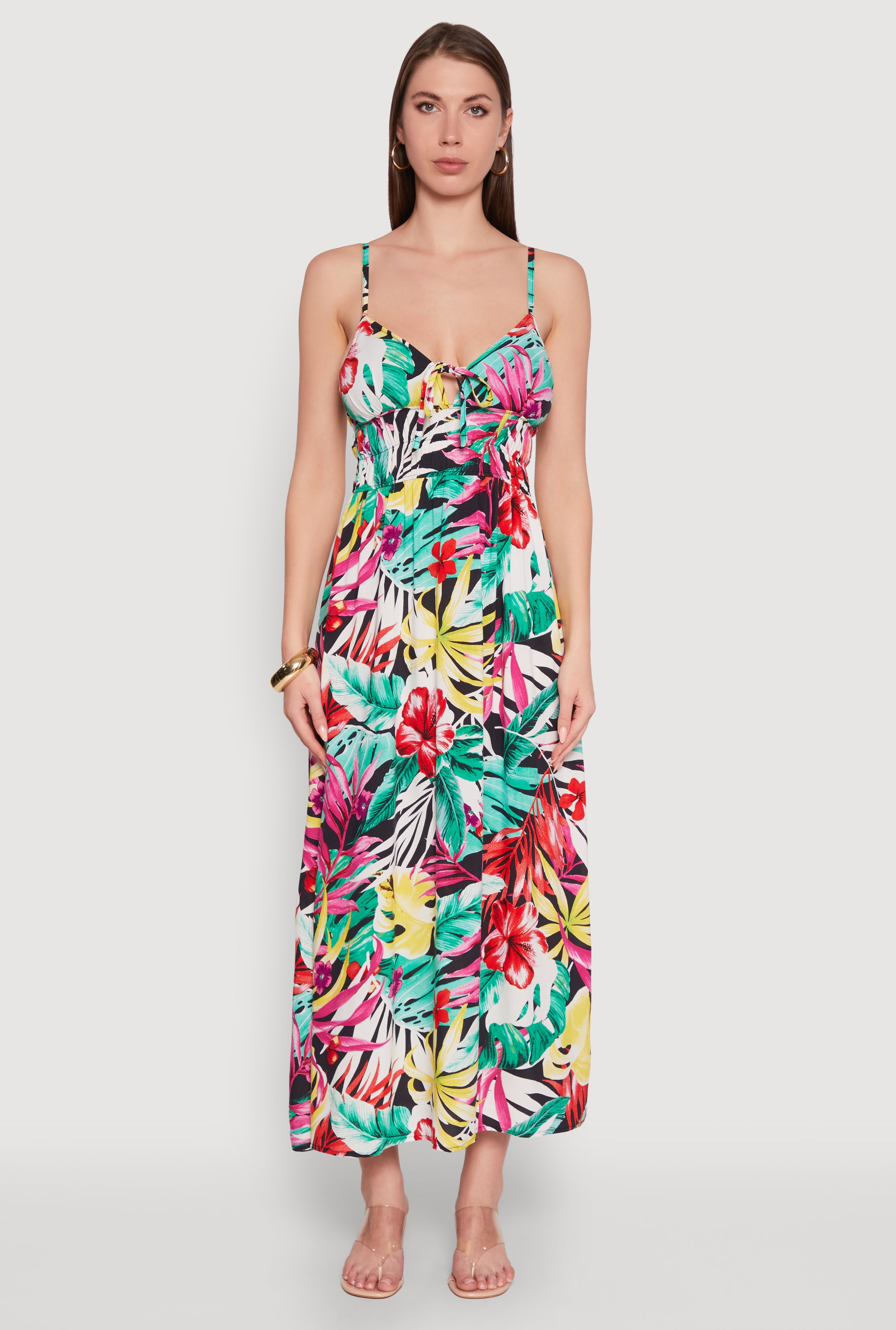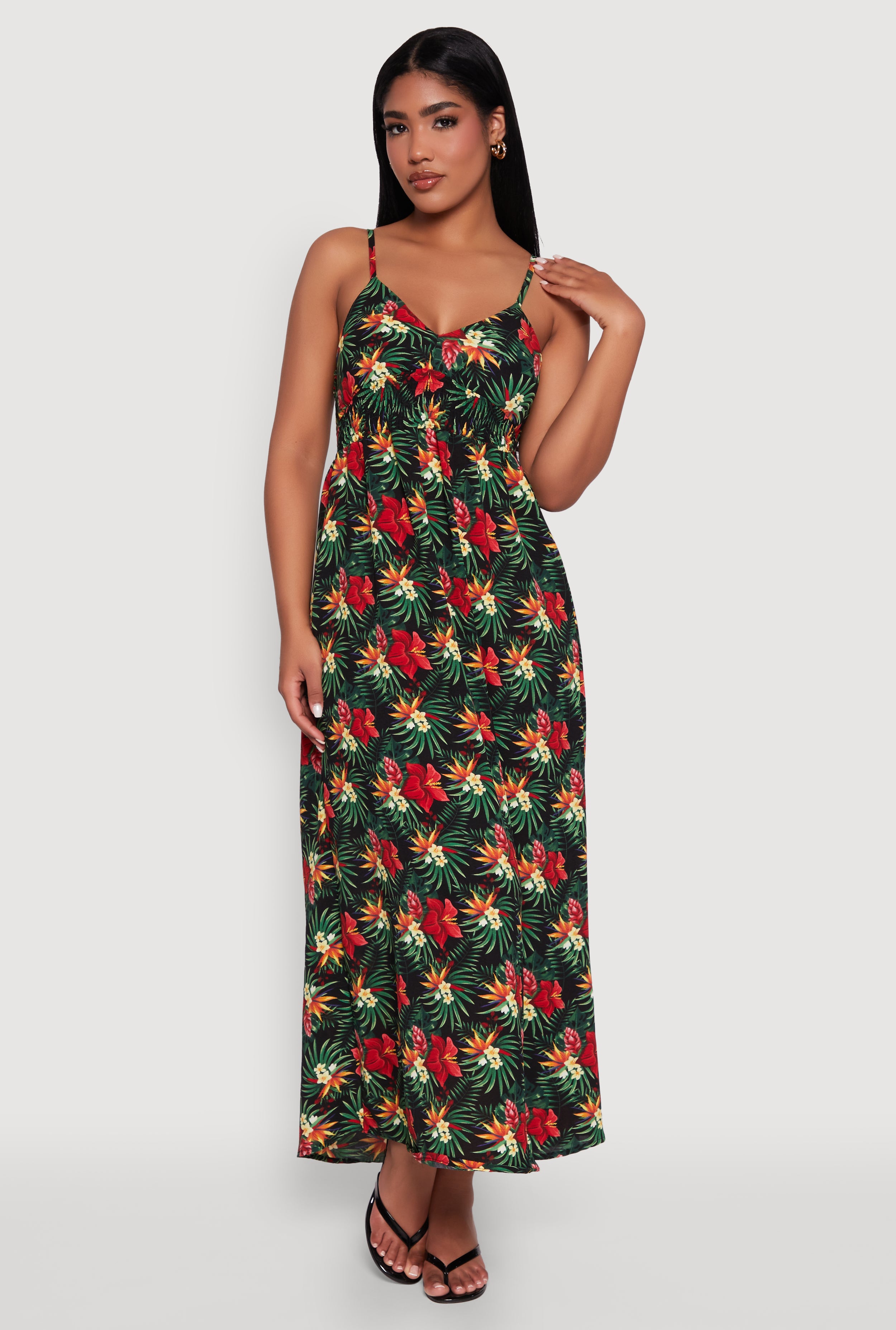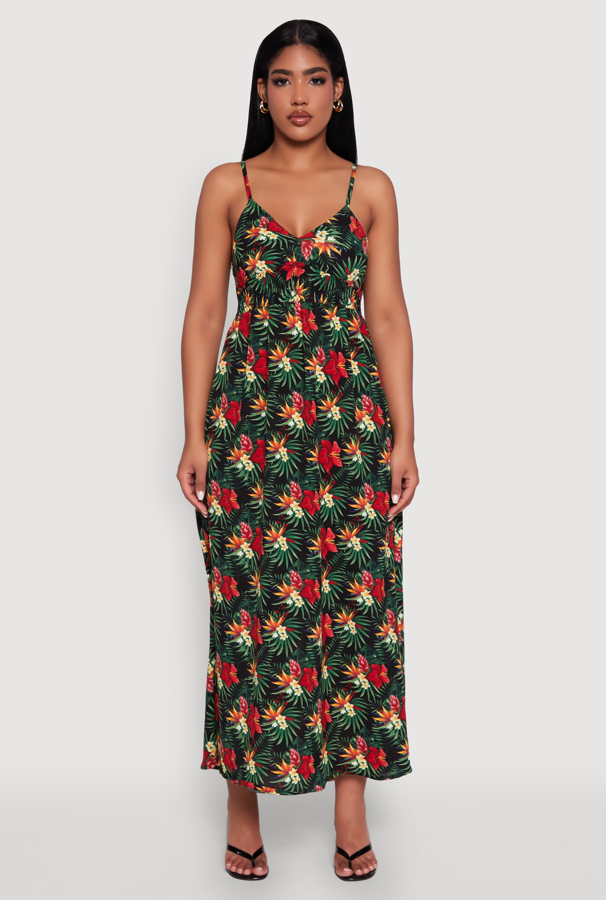 Floral Tropical Print Sleeveless Sundress with V Neck