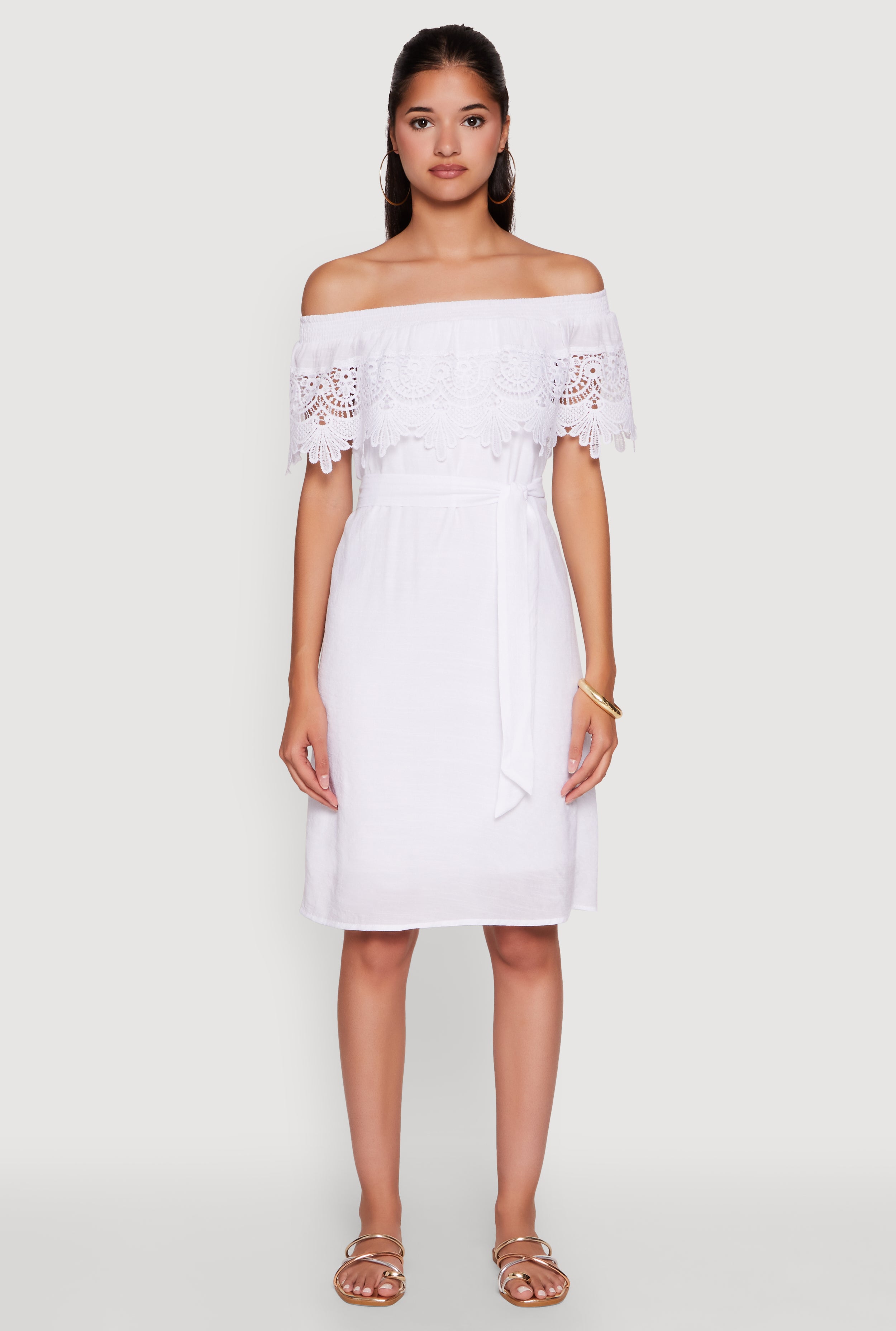 Chic Off the Shoulder Crochet Sundress with Tie Waist Belt