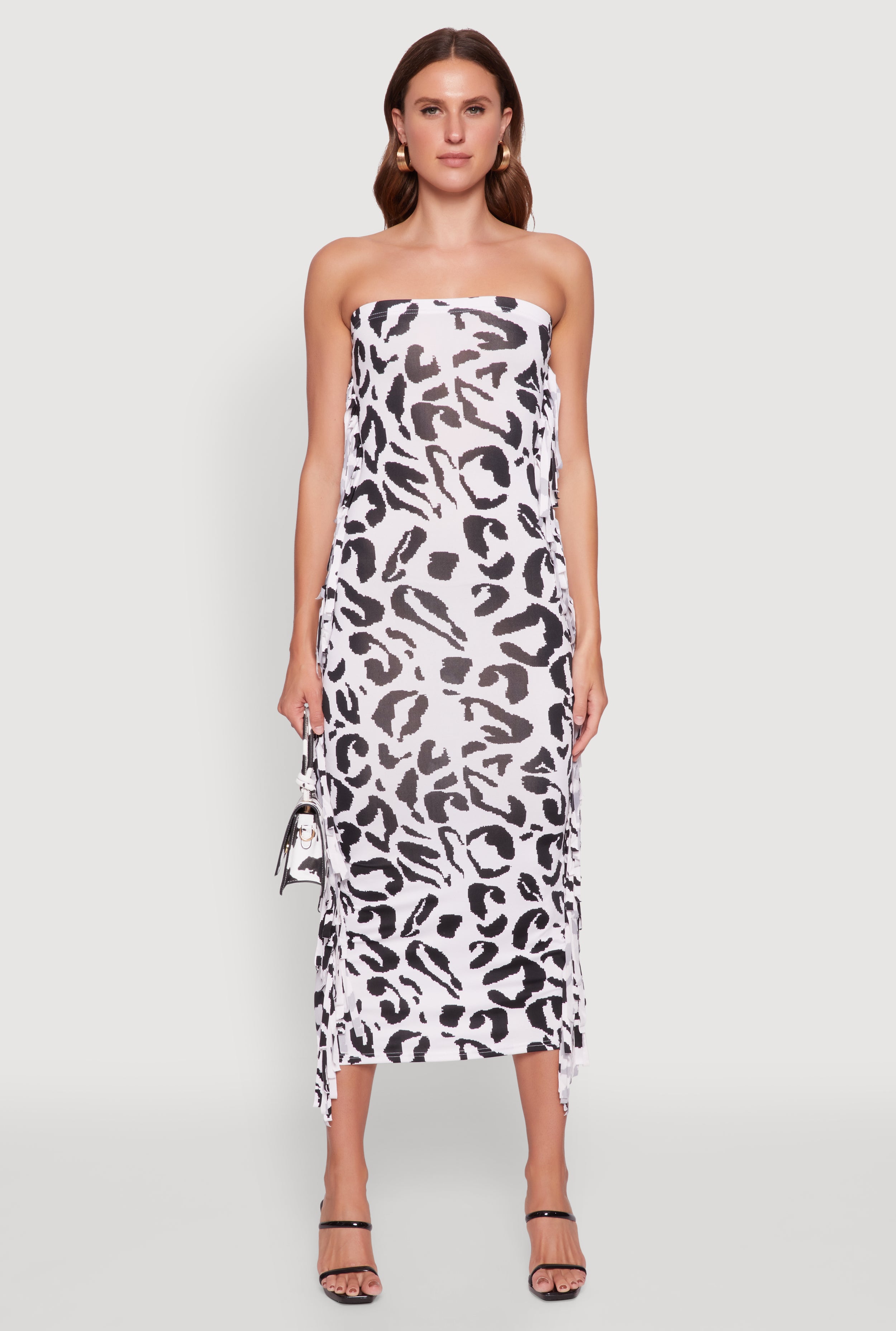Side Fringe Animal Print Tube Dress