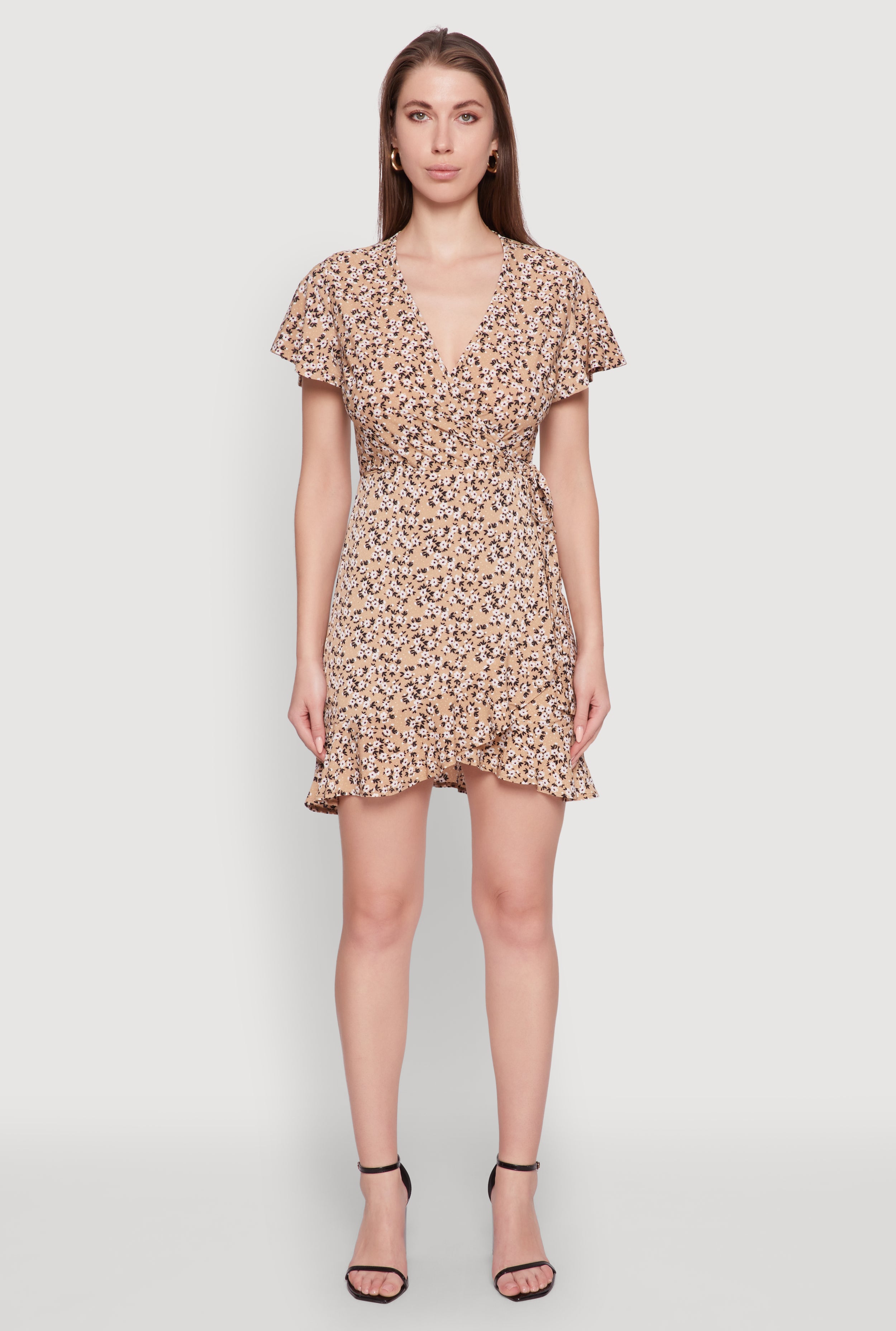 Floral Wrap Dress with Ruffles and V-Neck