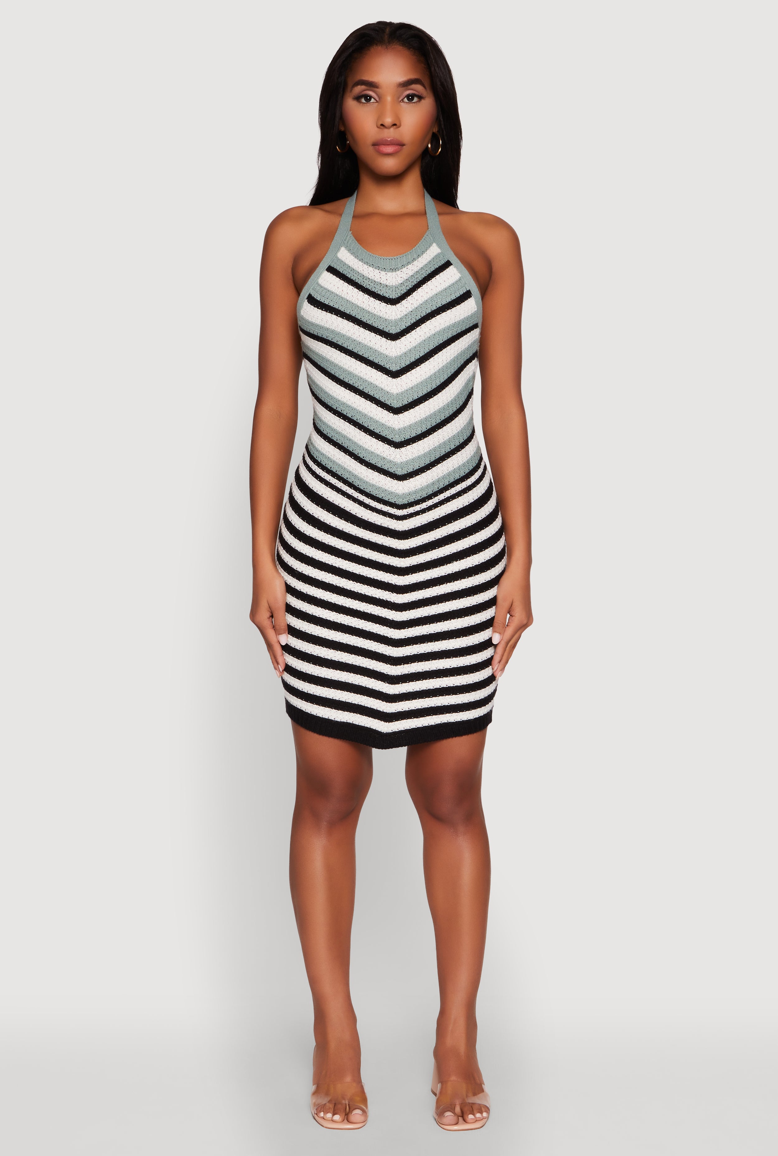 Trendy Crochet Chevron Halter Bodycon Dress