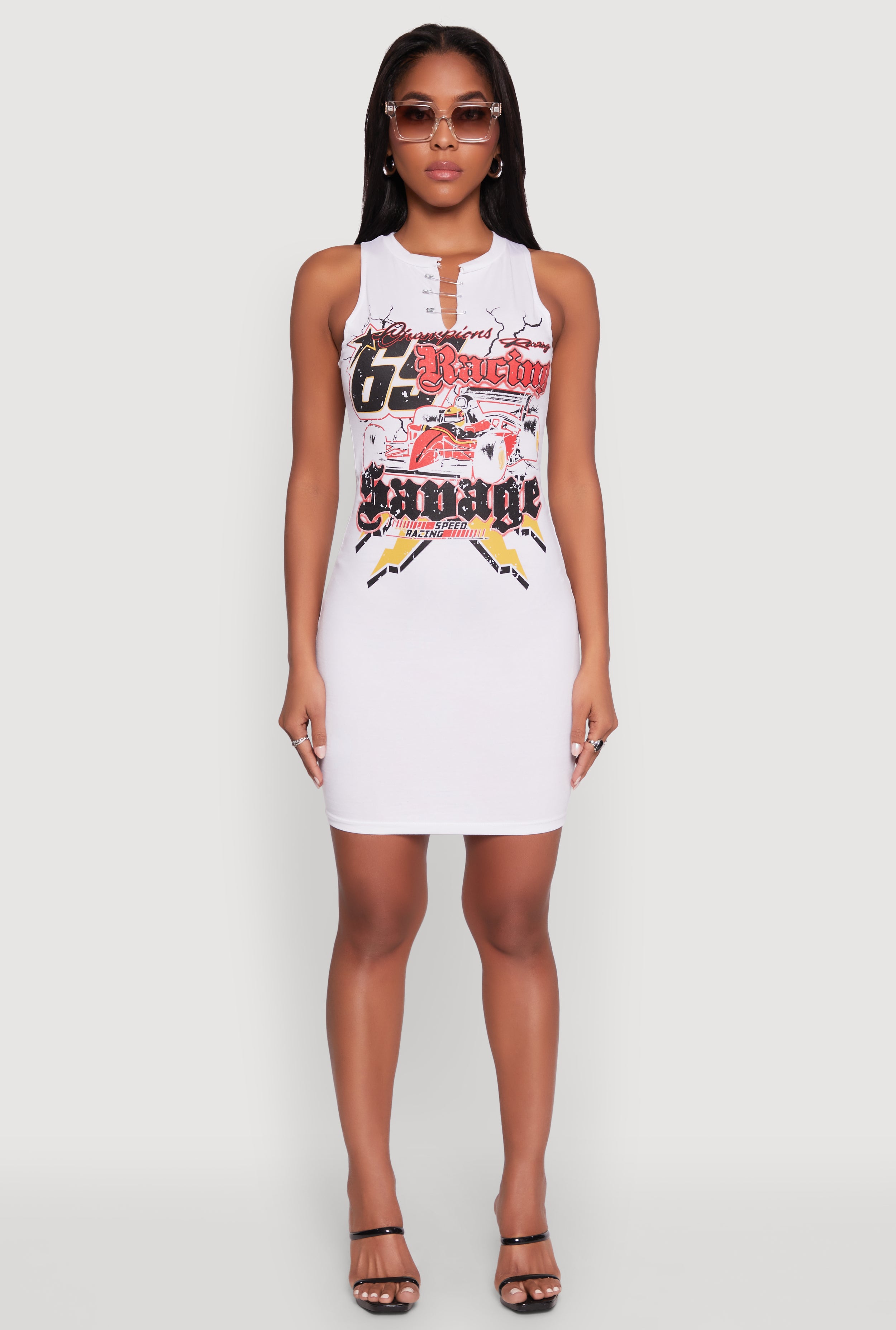 Speed Racing Graphic Sleeveless Mini Dress