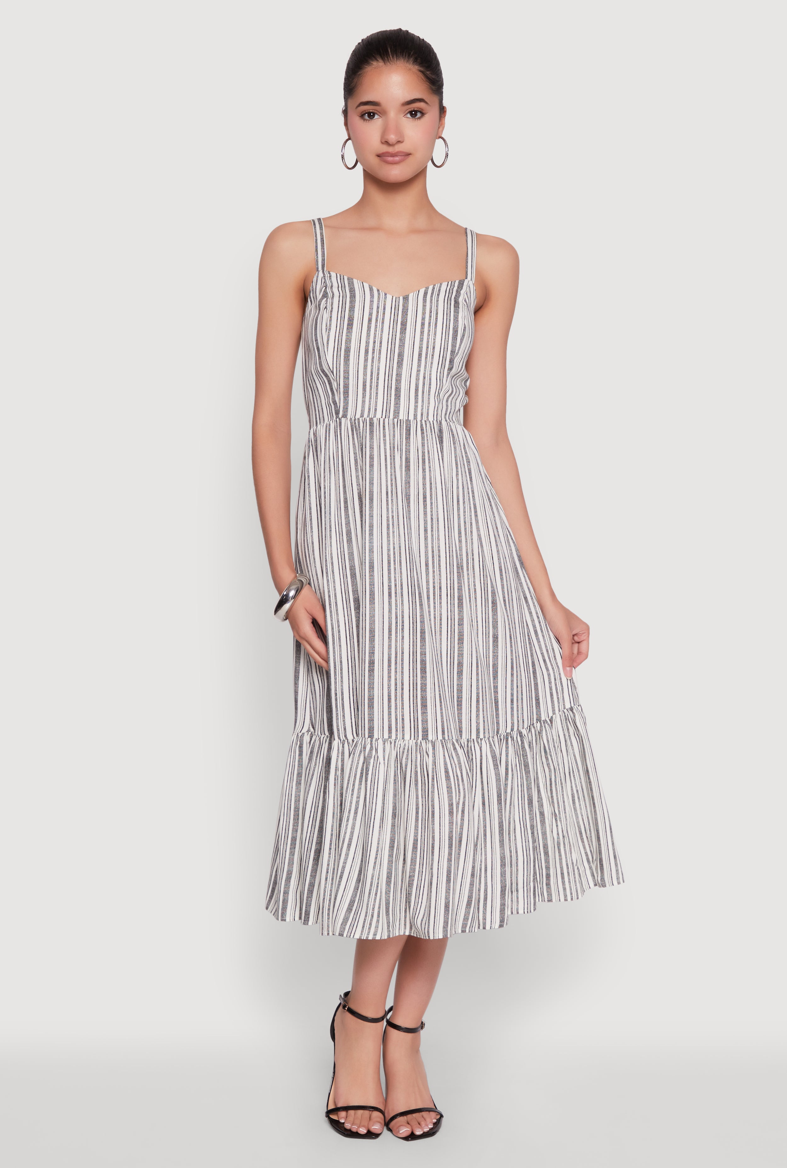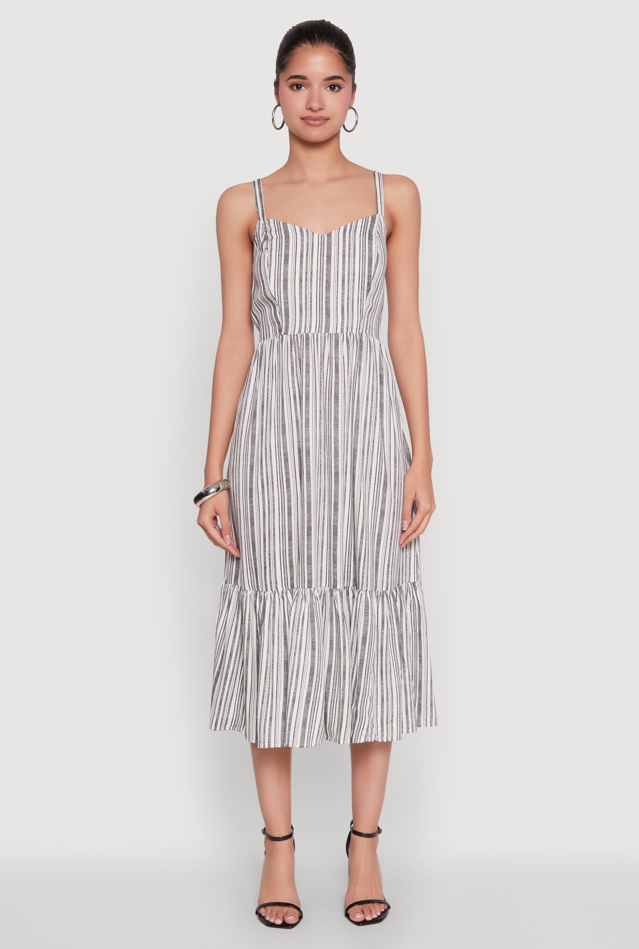 Striped Tiered Cami Dress with Sweetheart Neckline