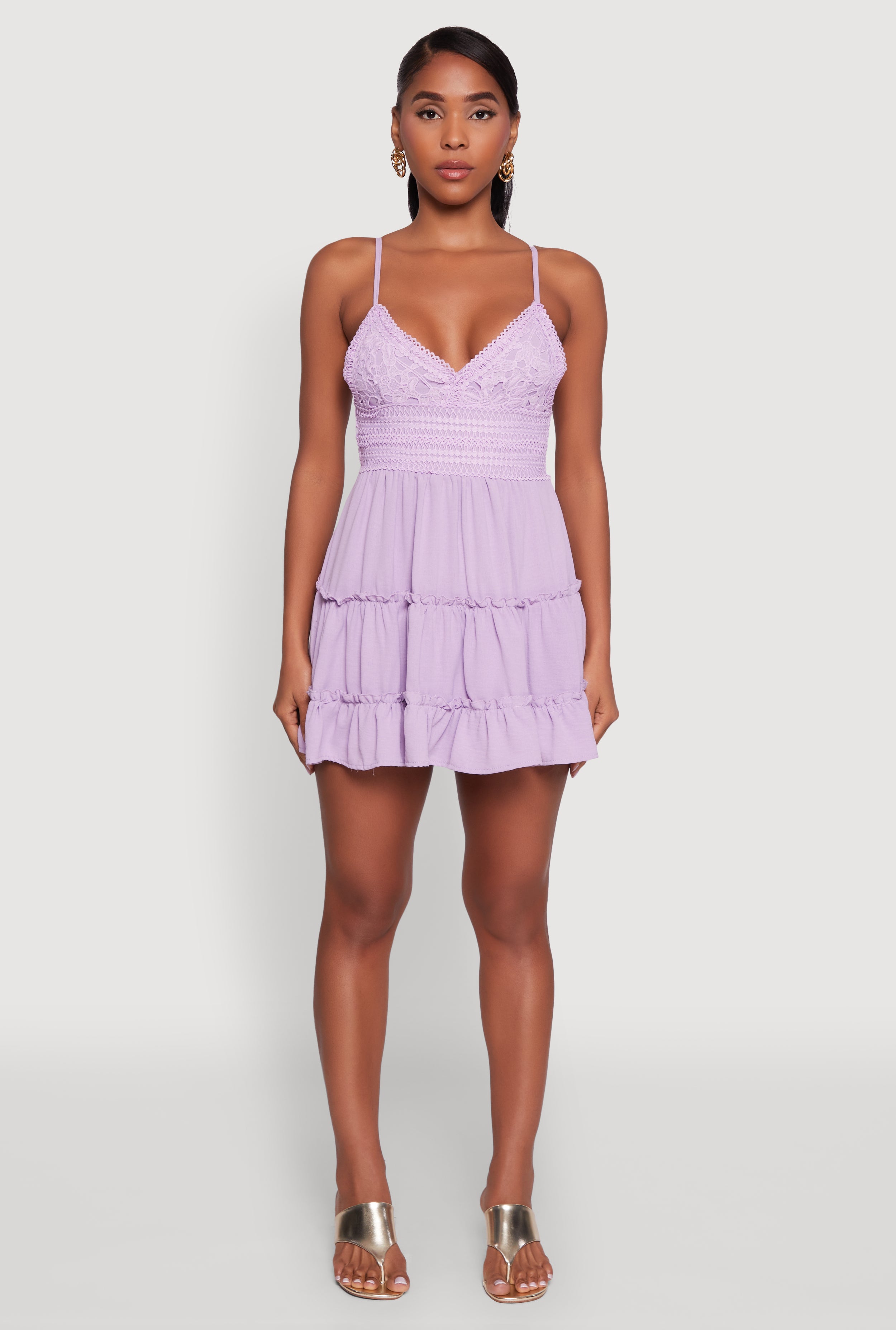 Chic Eyelet Ruffle Tiered Mini Dress