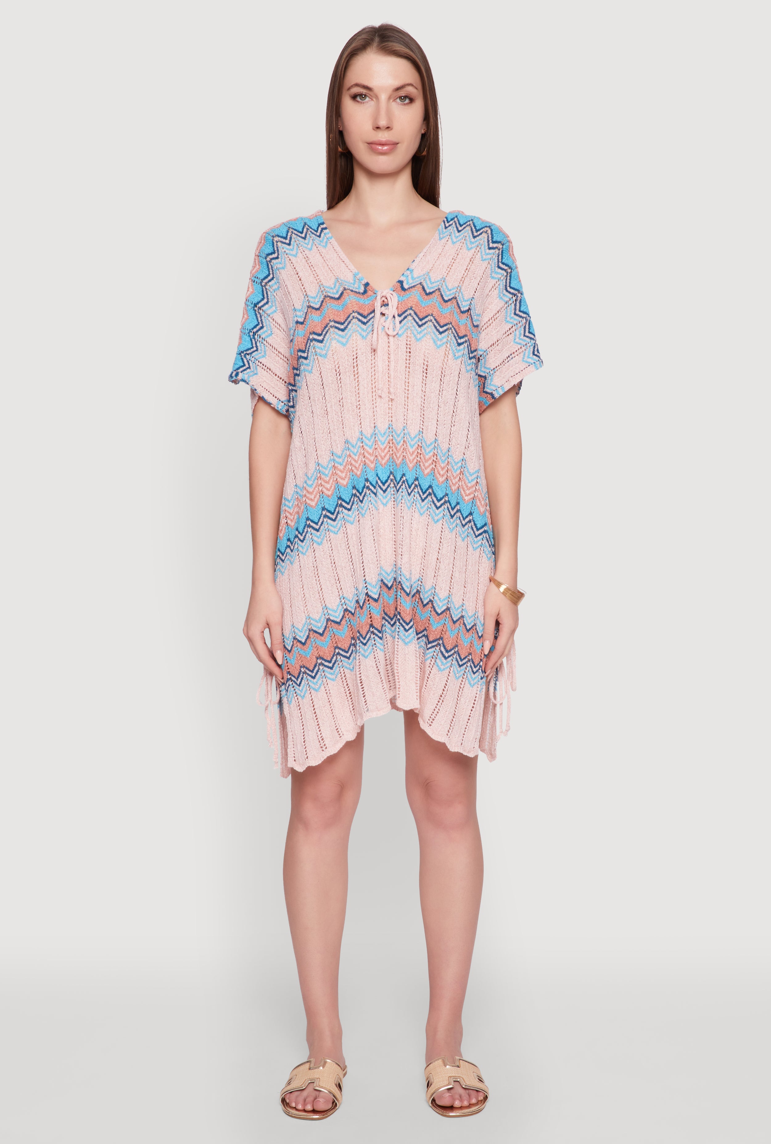 Stylish Crochet V-Neck Cover Up Dress with Tie Front