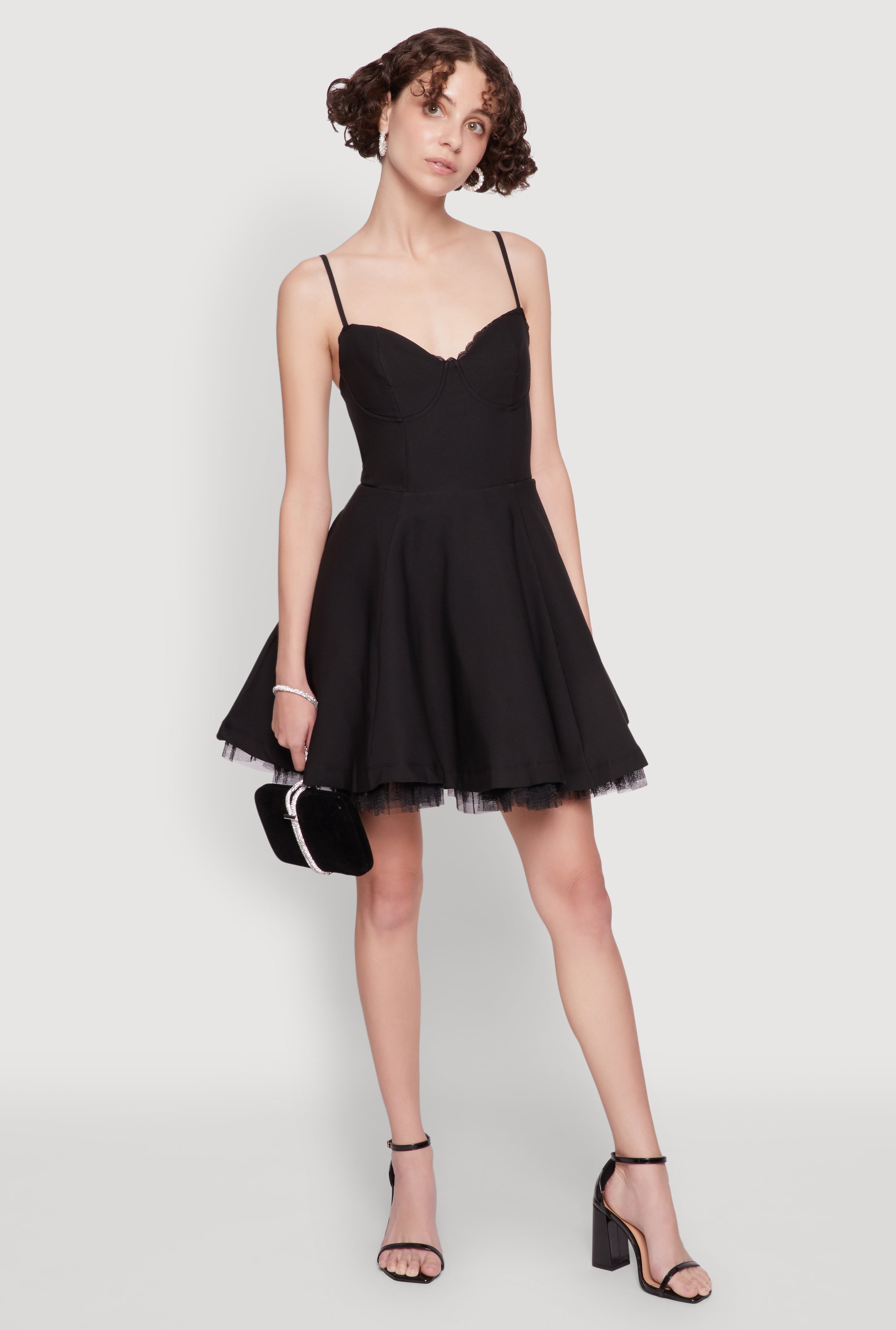 Elegant Tulle Lined Lace Detailed Bustier Skater Dress