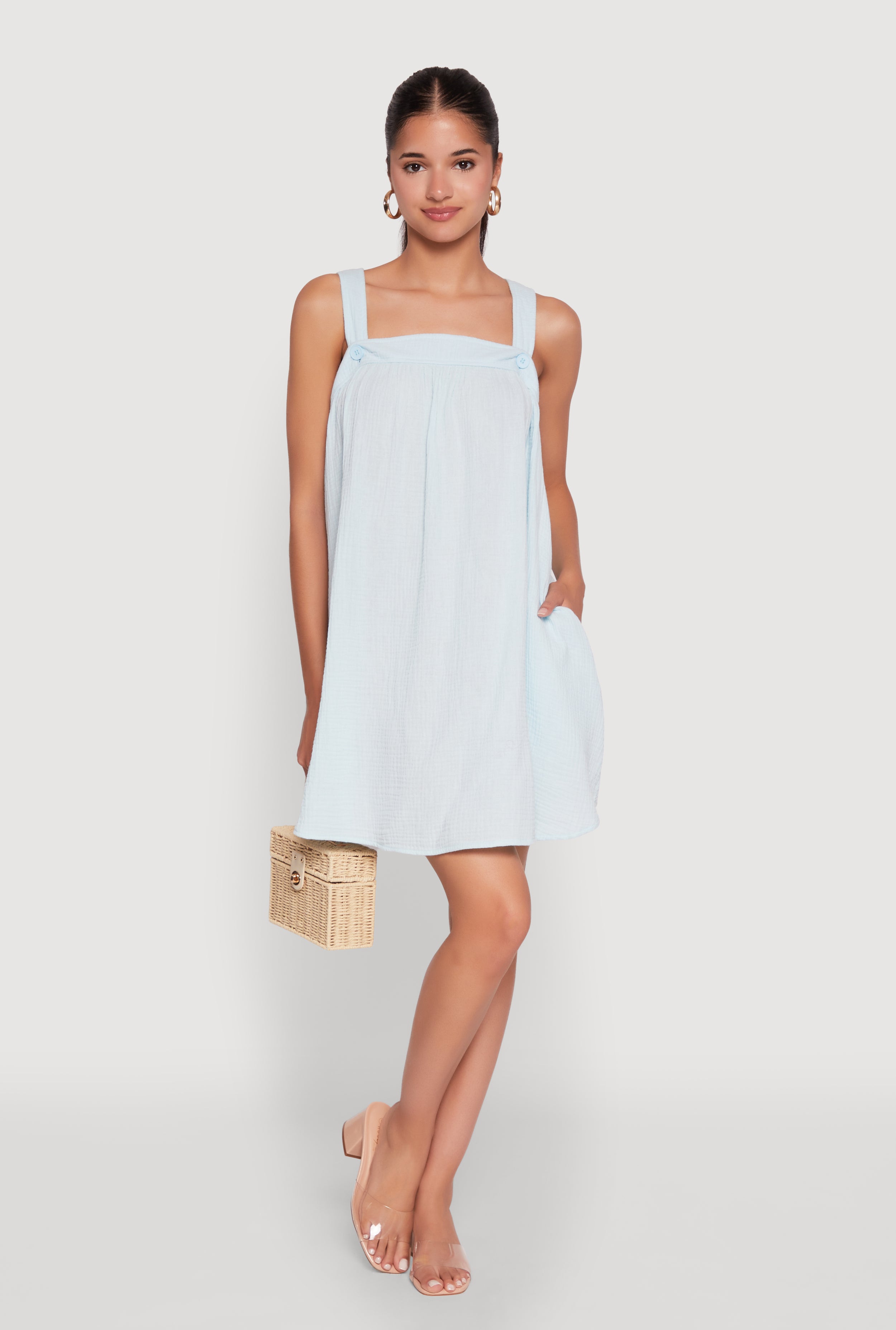 Chic Poplin Bubble Hem Spaghetti Strap Dress