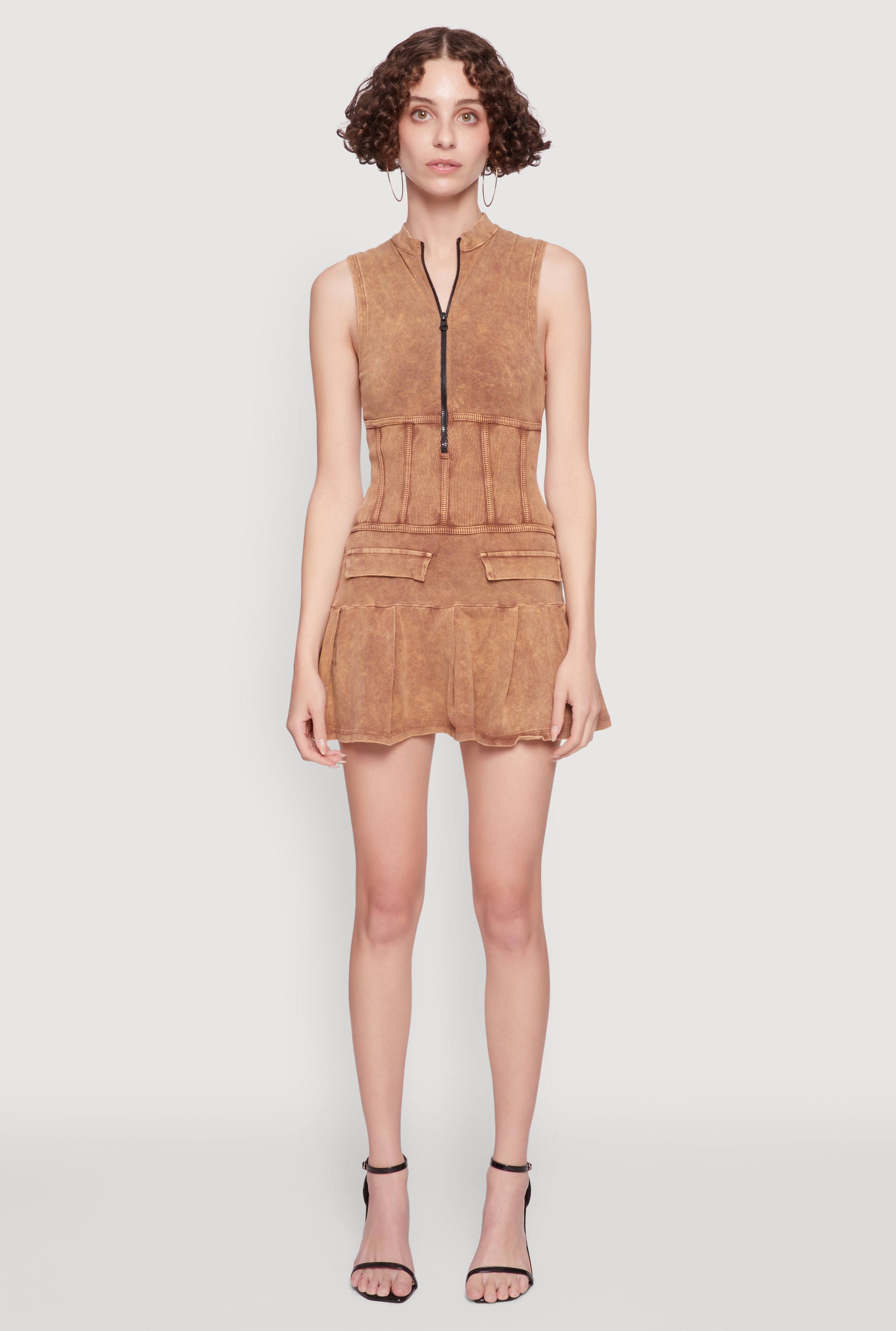 Acid Wash Zip Front Corset Mini Dress