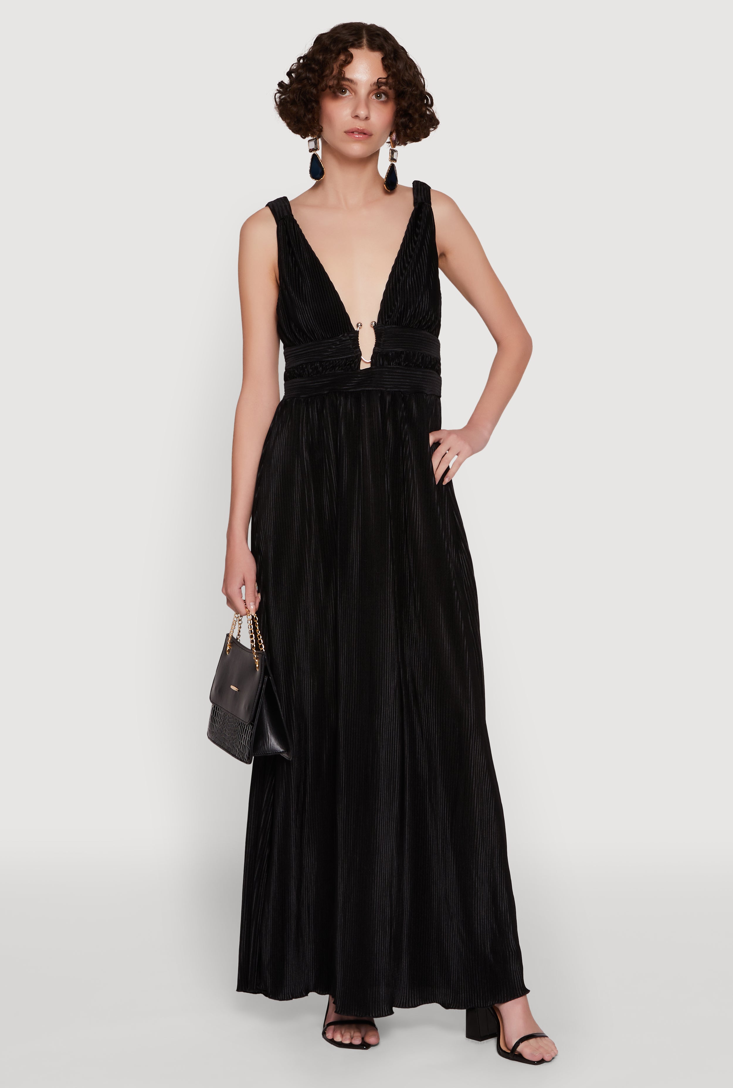 Elegant Sleeveless Plisse Empire Waist Dress