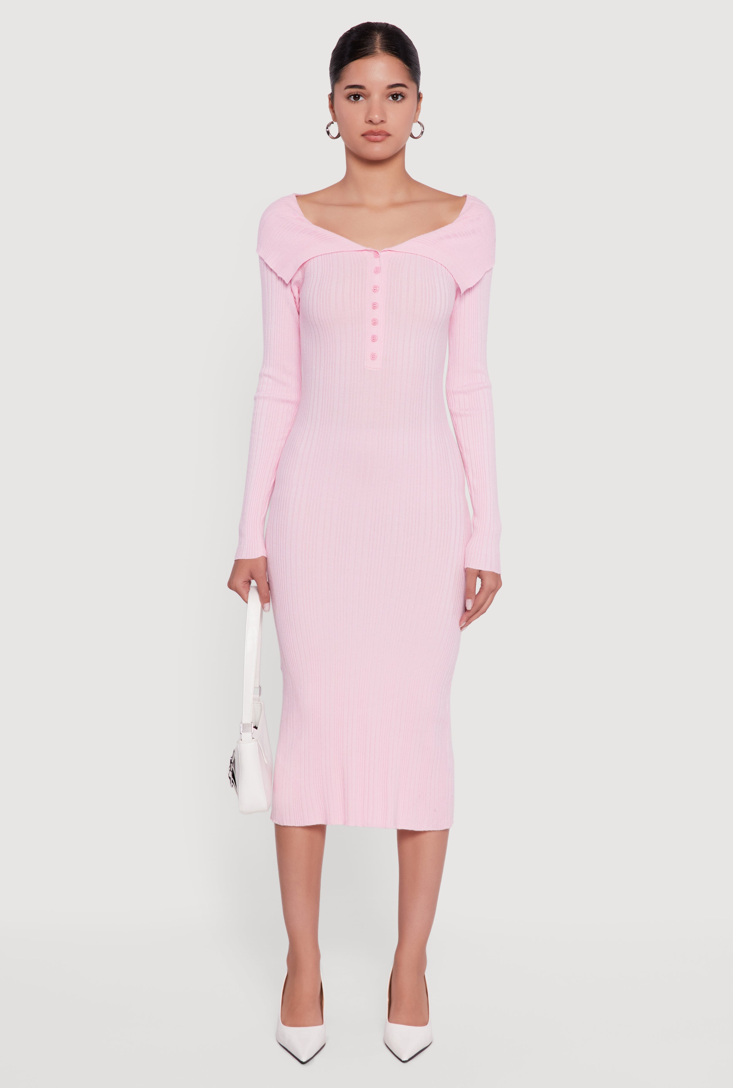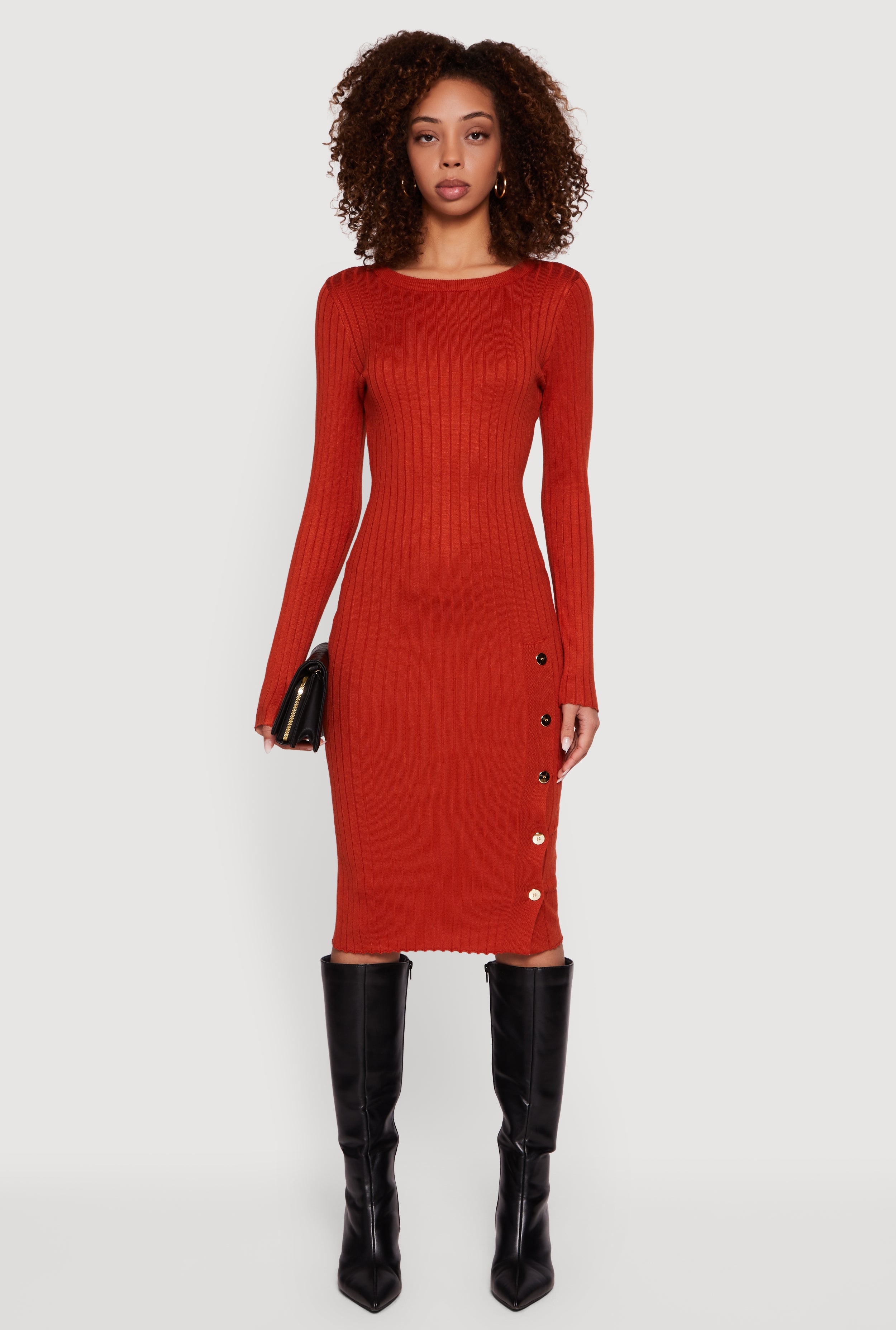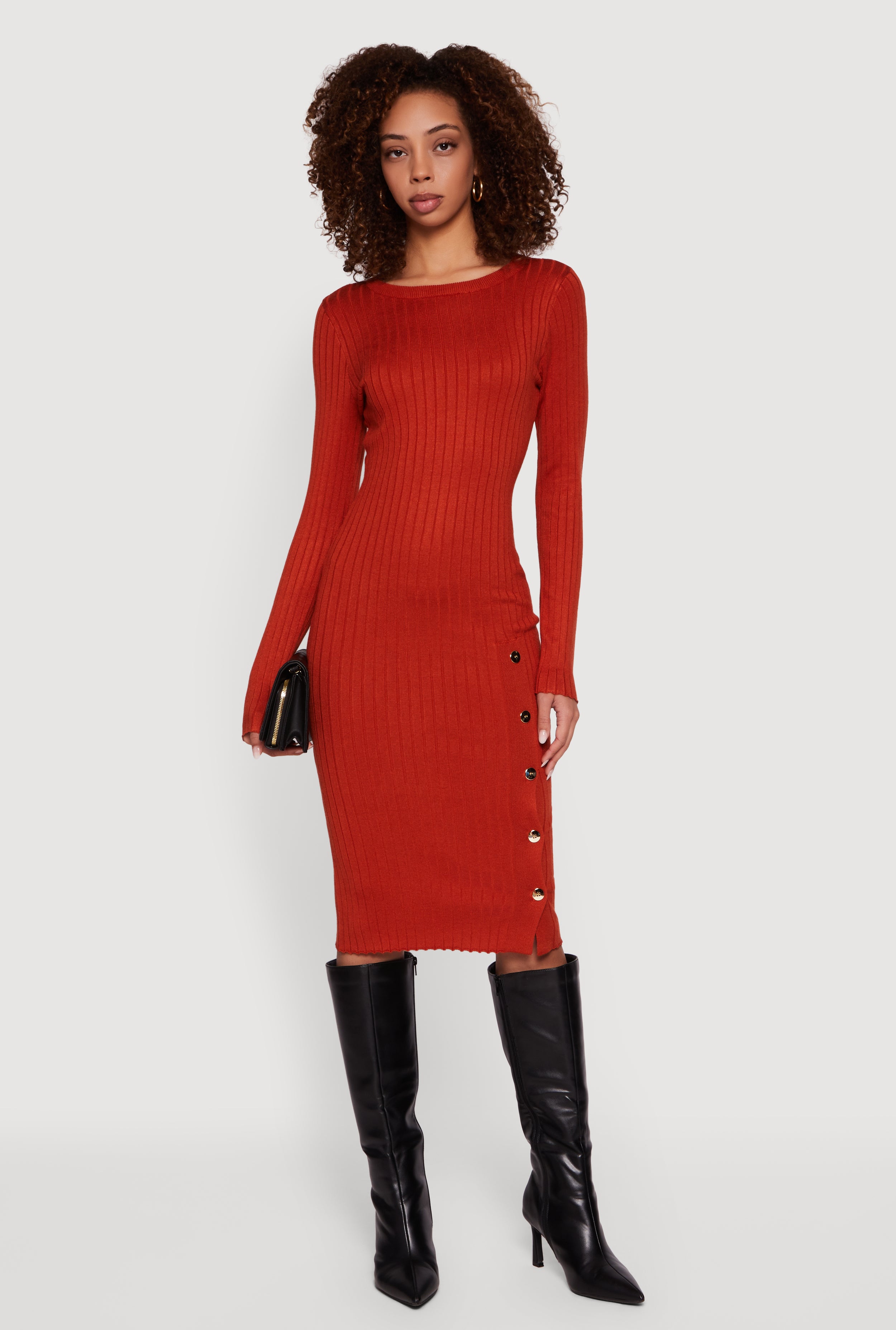 Ribbed Knit Midi Sweater Dress with Side Buttons