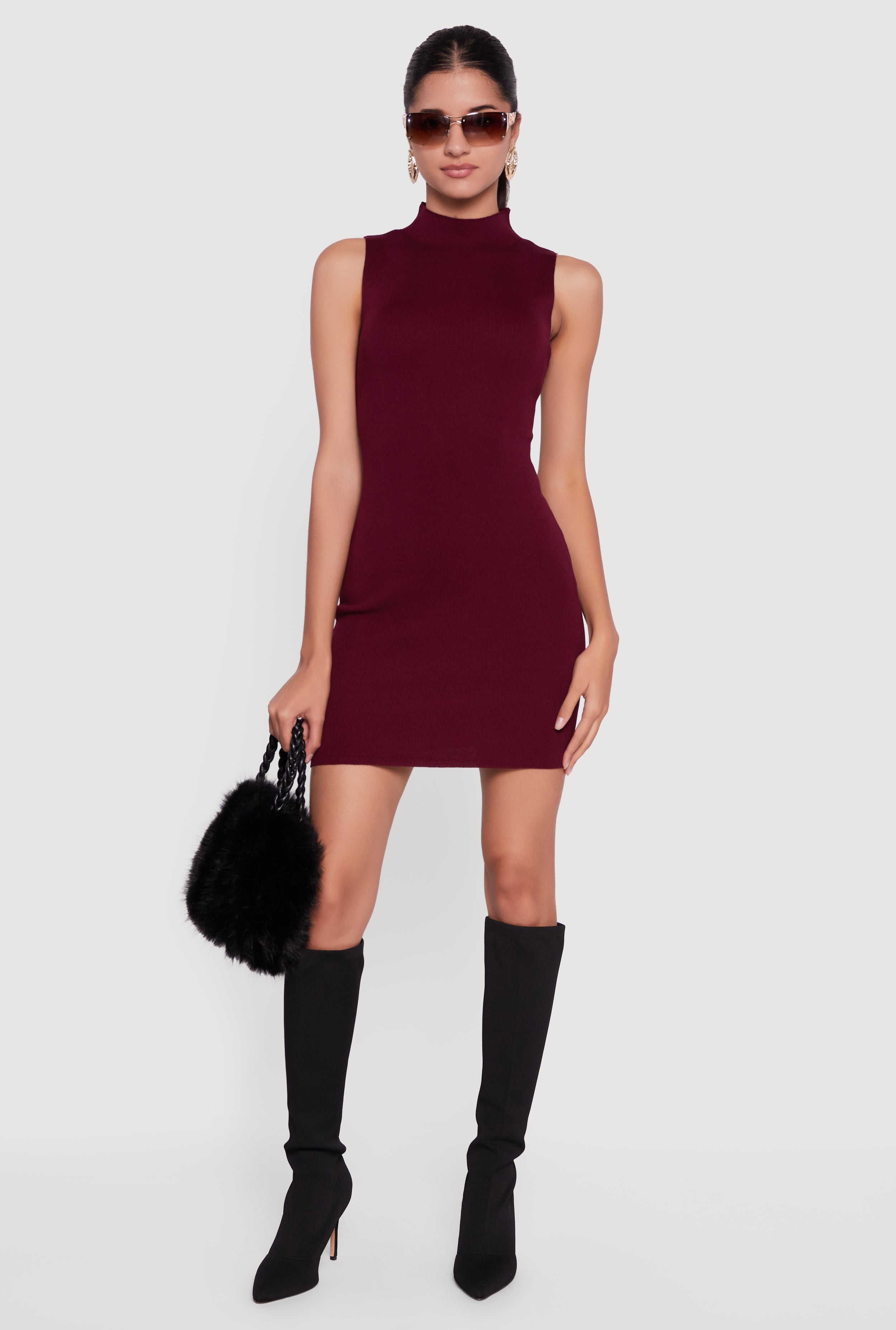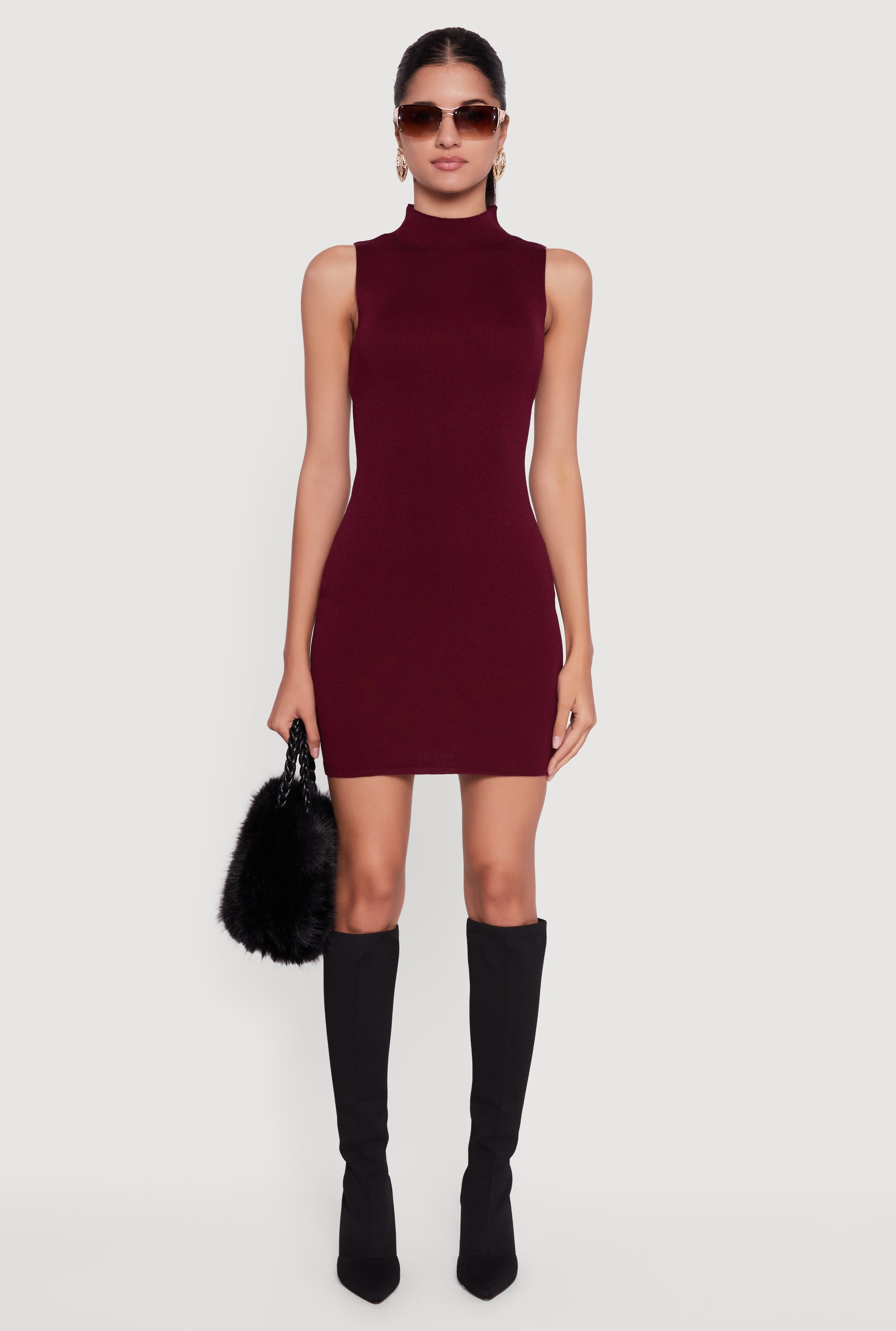 3D Bow Bubble Sleeve Mock Neck Side Slit Sweater Dress