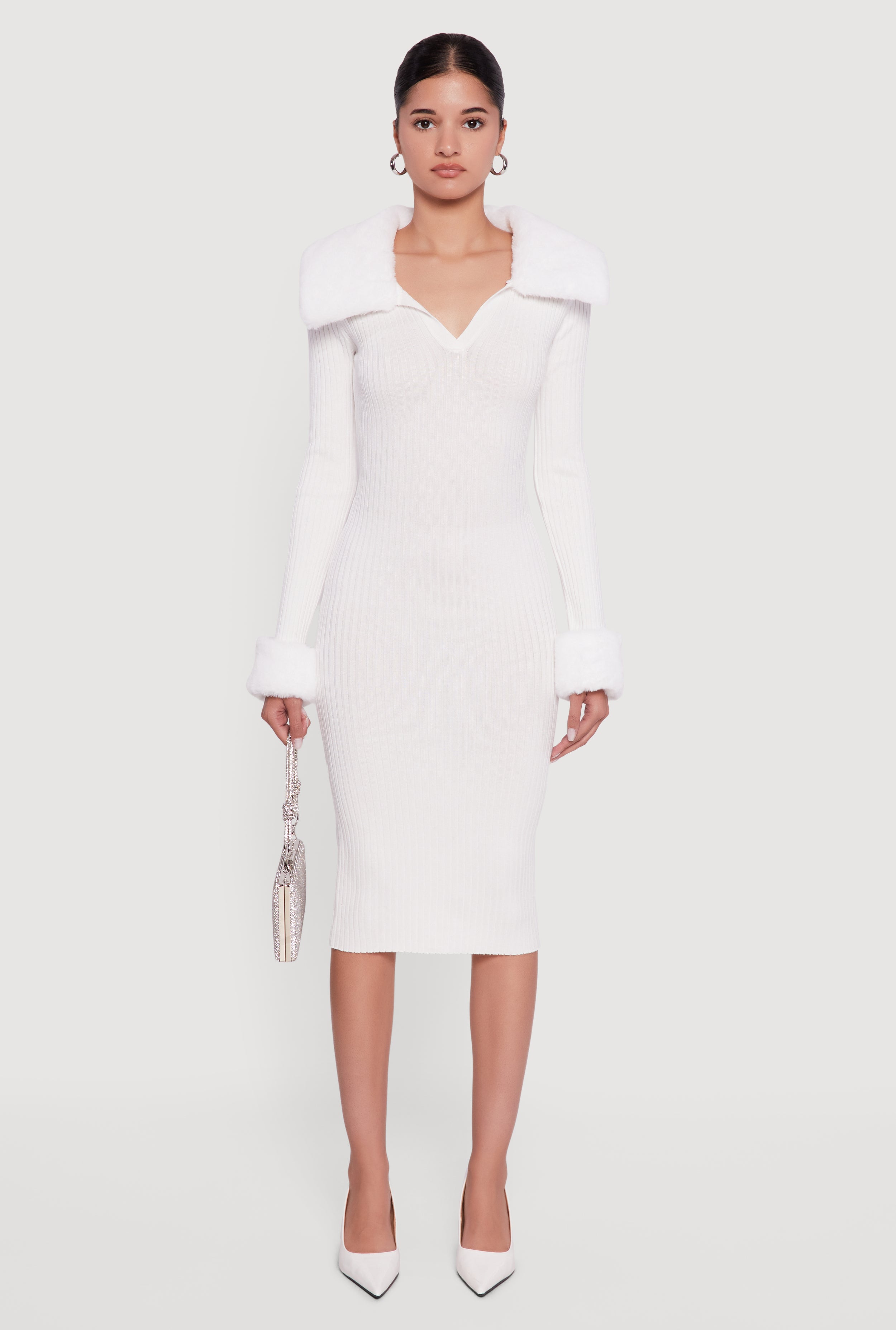 Midi Sweater Dress with Removable Faux Fur Collar and Cuffs