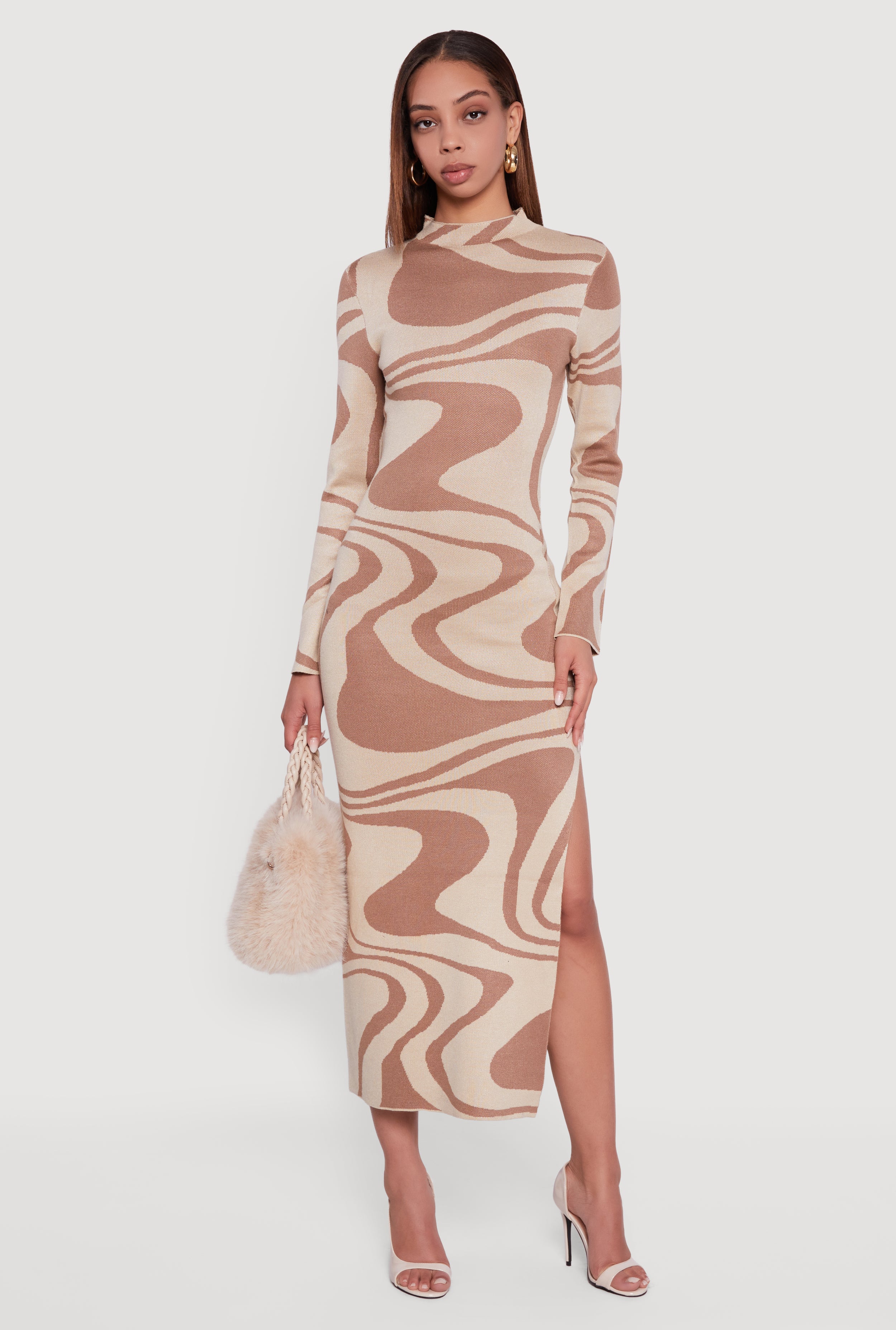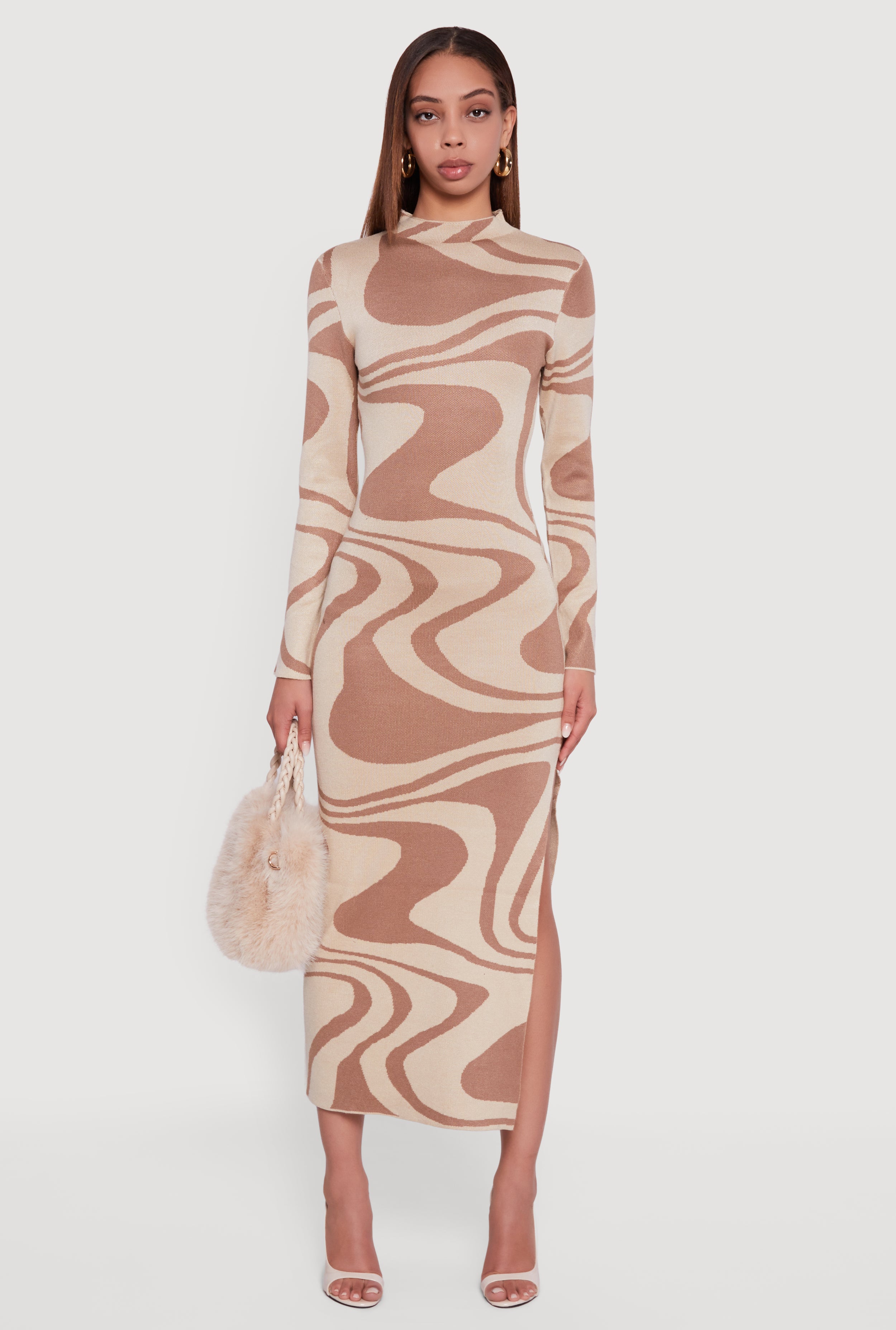 Psychedelic Swirl Long Sleeve Mock Neck Maxi Sweater Dress