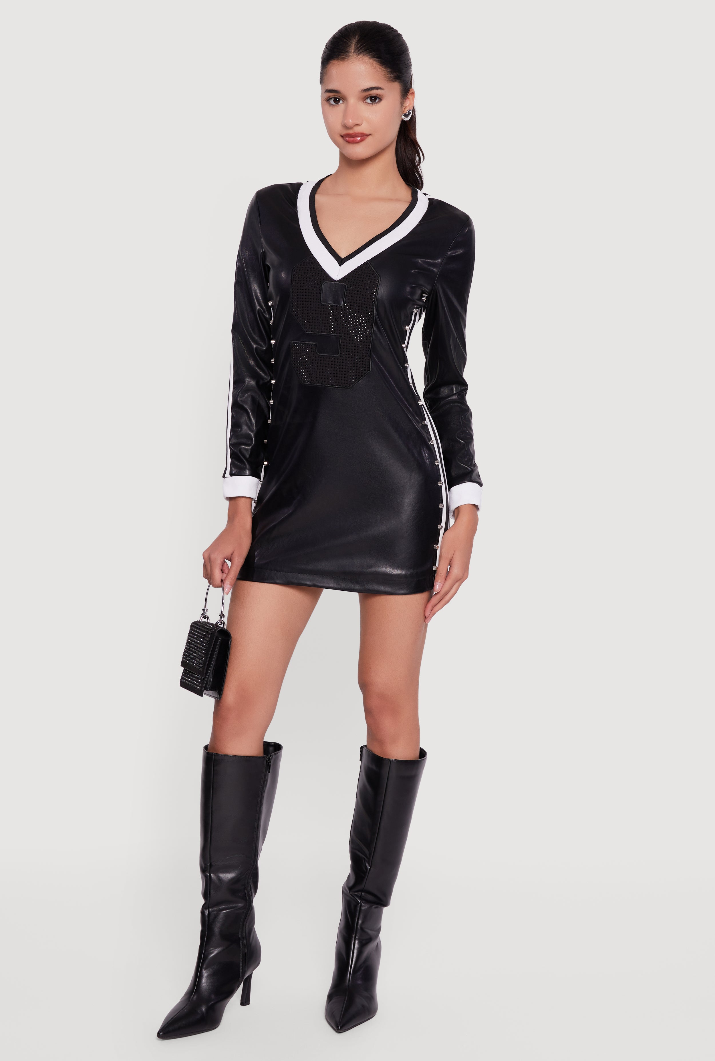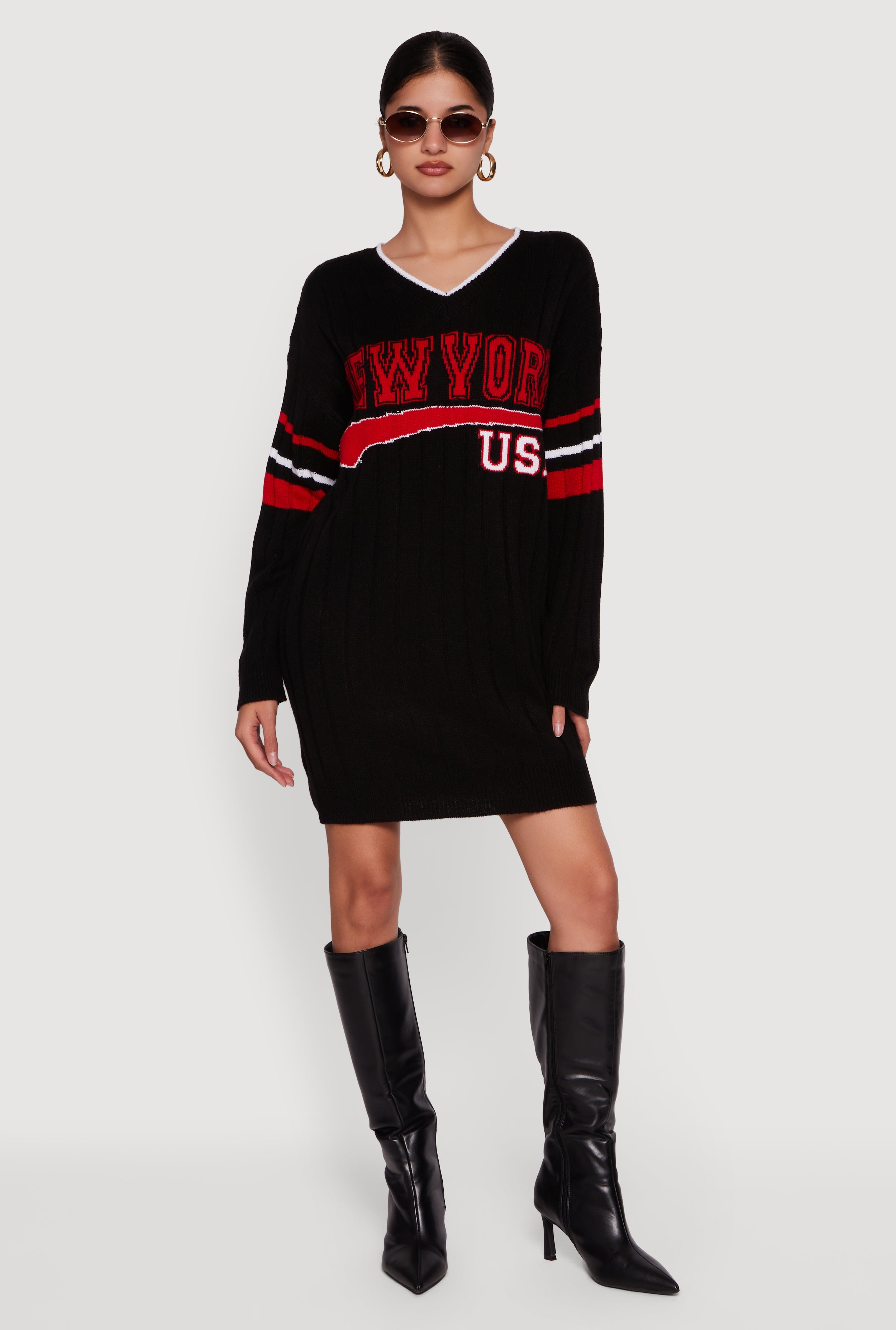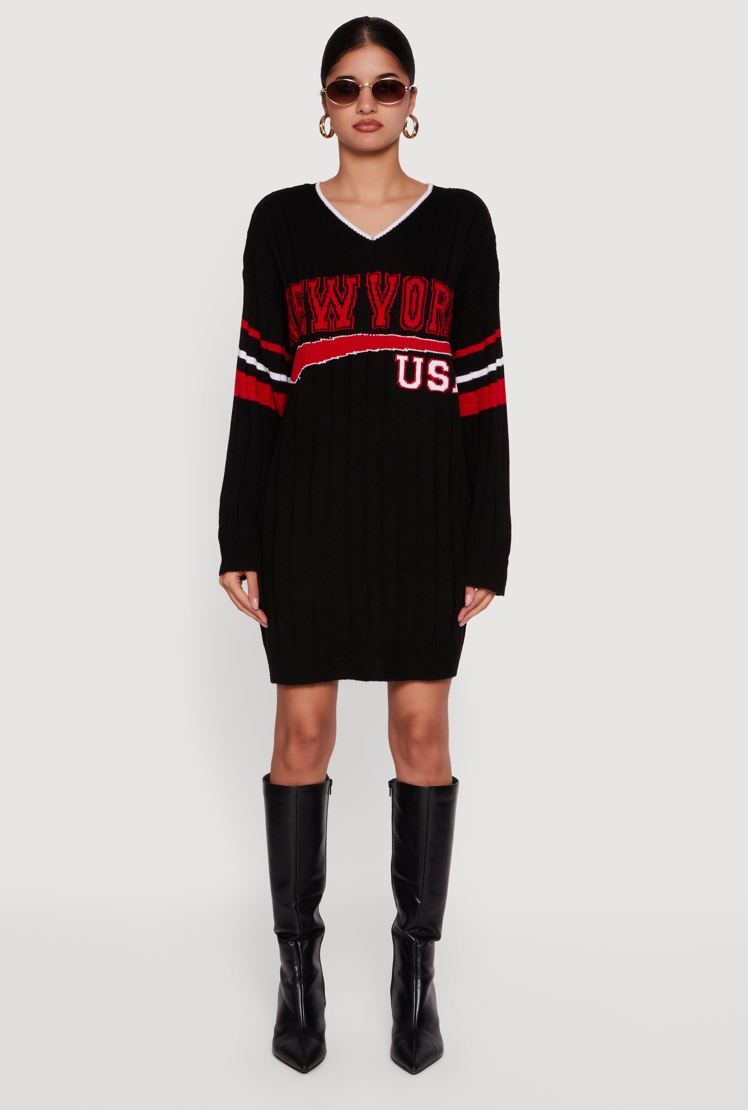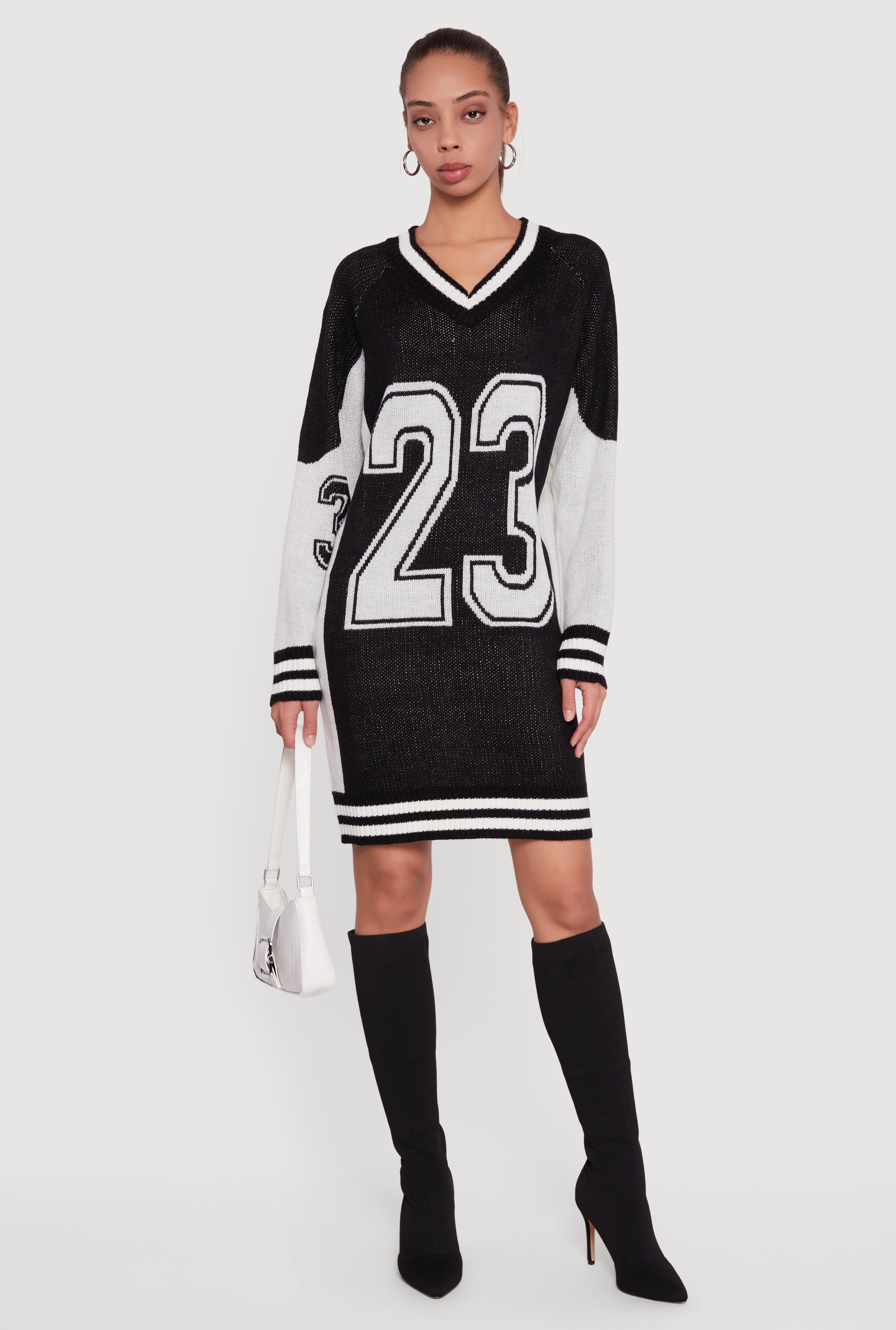 23 Graphic Long Sleeve V-Neck Sweater Dress