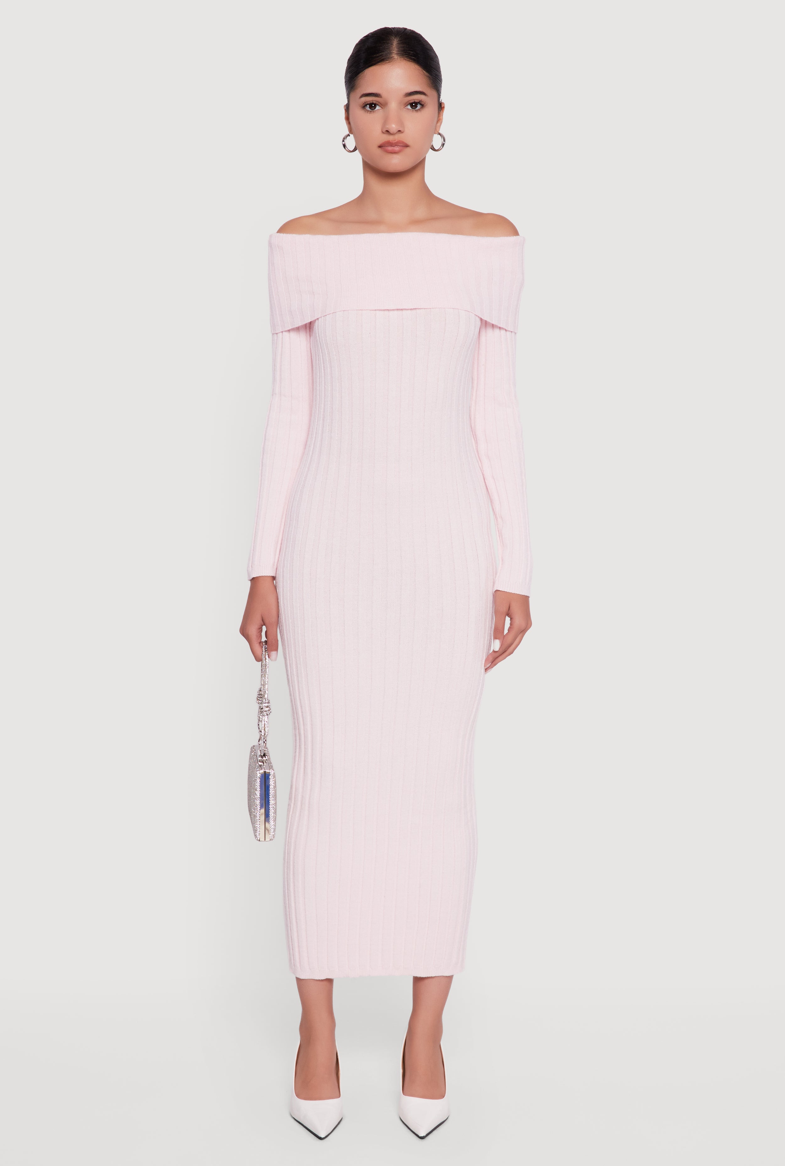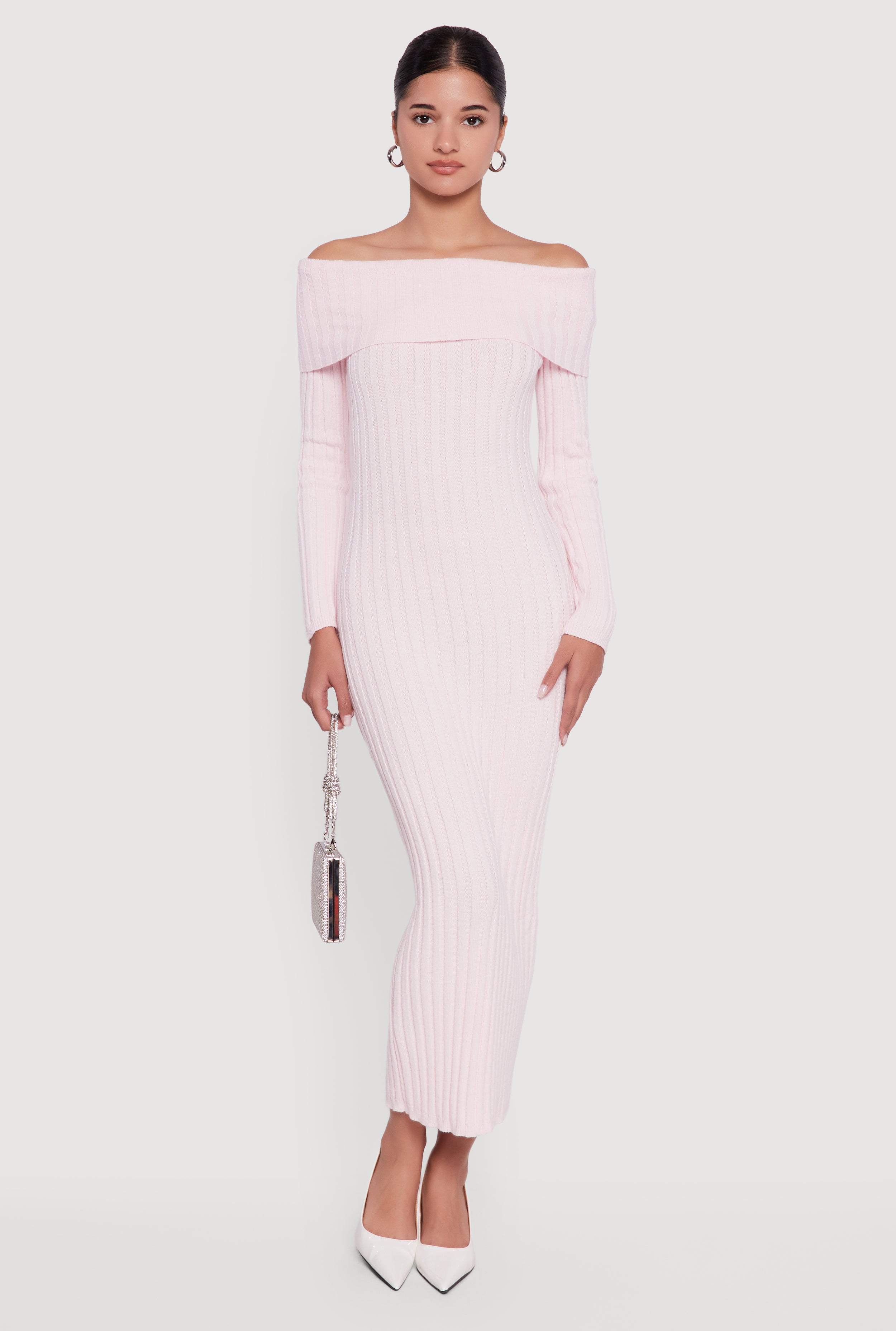 Rib Knit Fold Over Off the Shoulder Maxi Dress