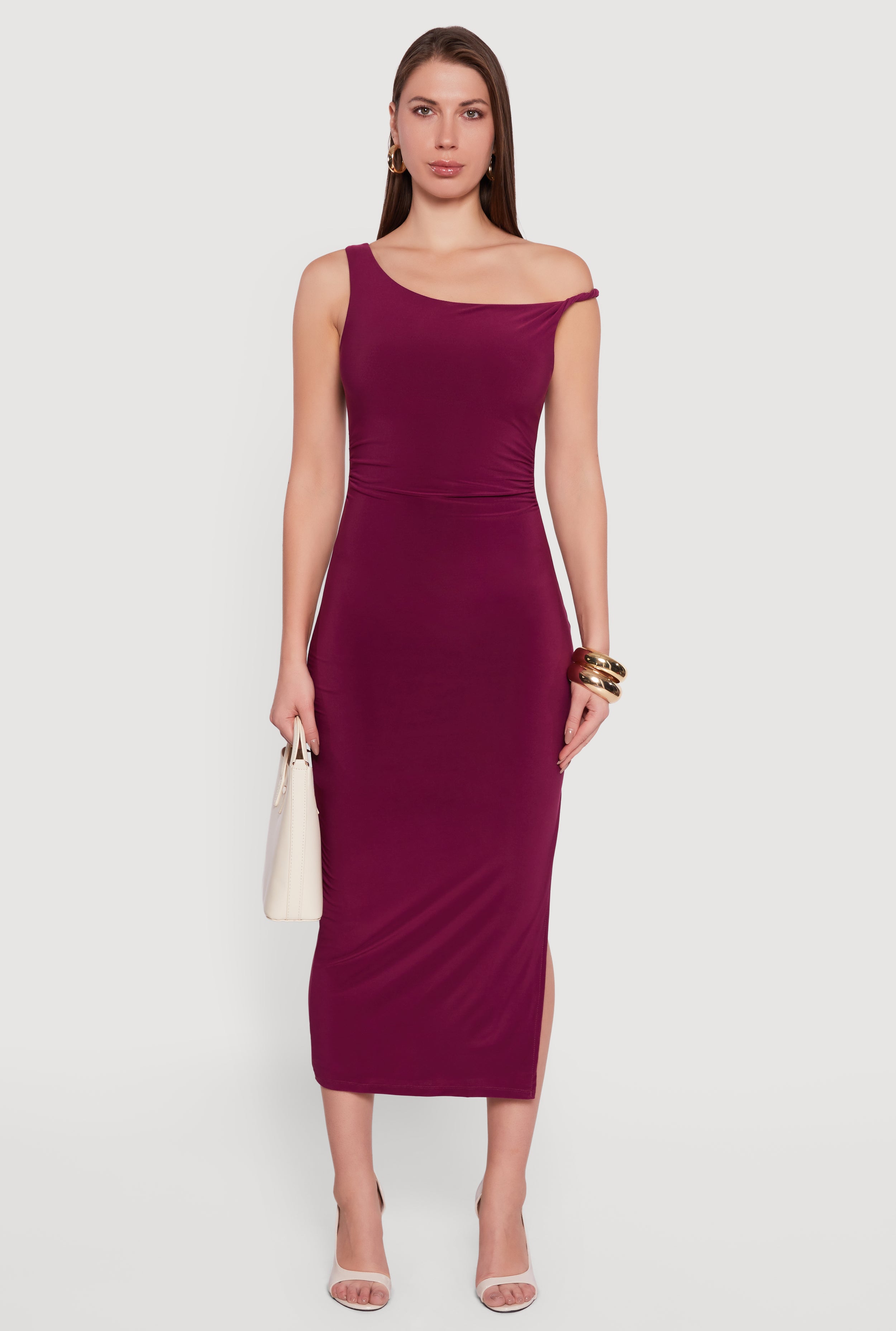 Off the Shoulder Ruched Midi Dress with Side Slit