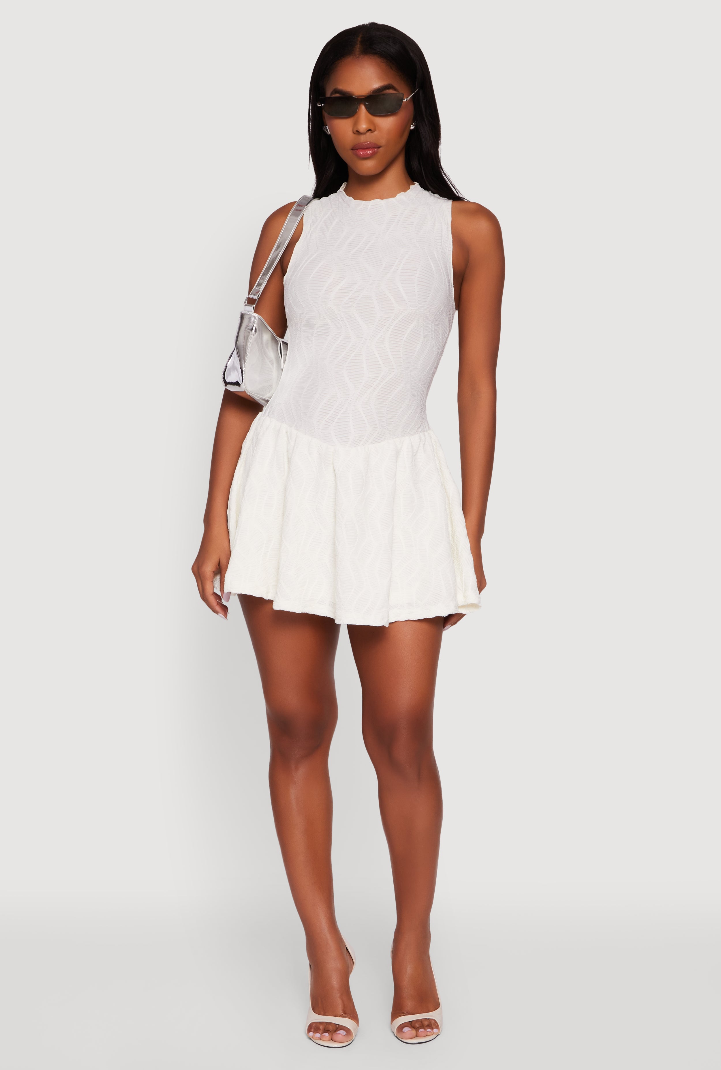 Textured Knit High Neck Sleeveless Skater Dress