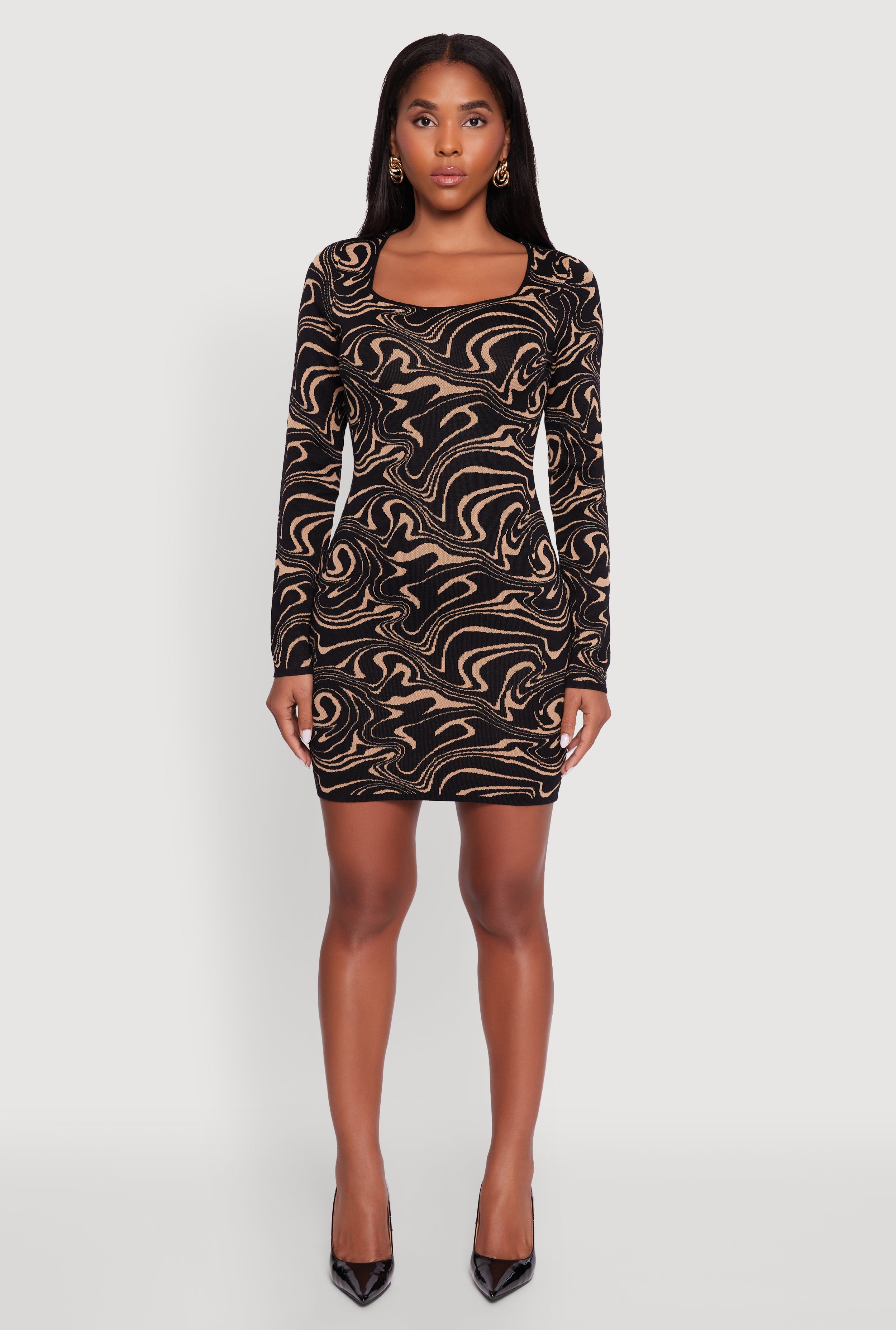 Trendy Psychedelic Swirl Print Mini Sweater Dress