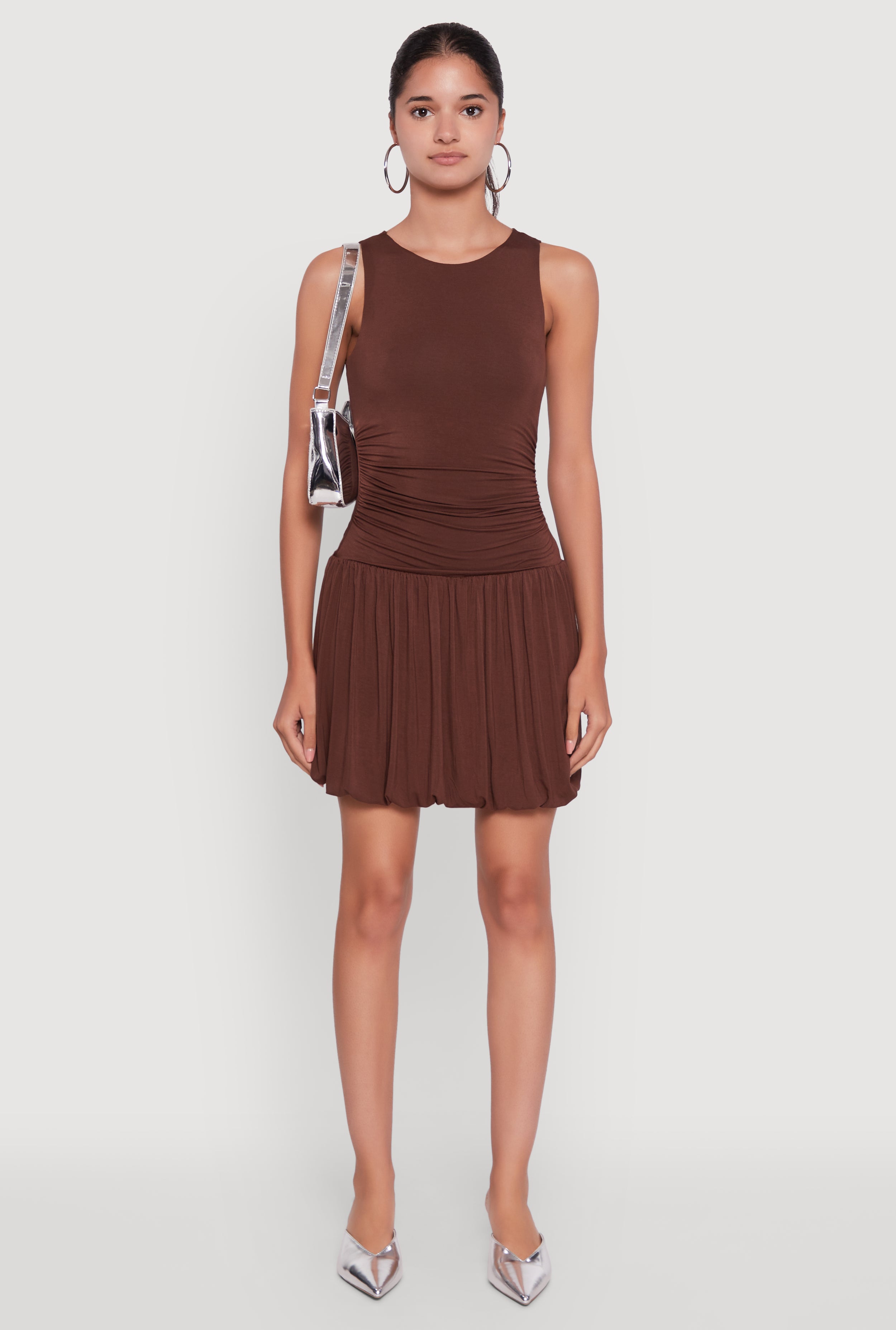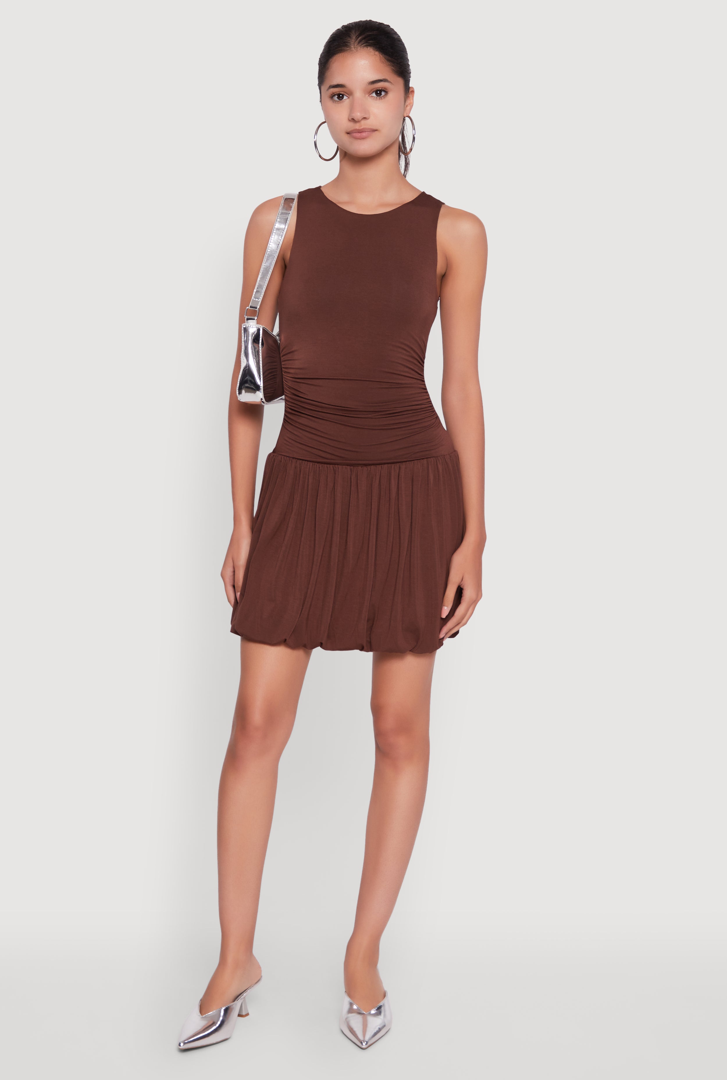 Sleeveless Ruched Side Bubble Hem Dress