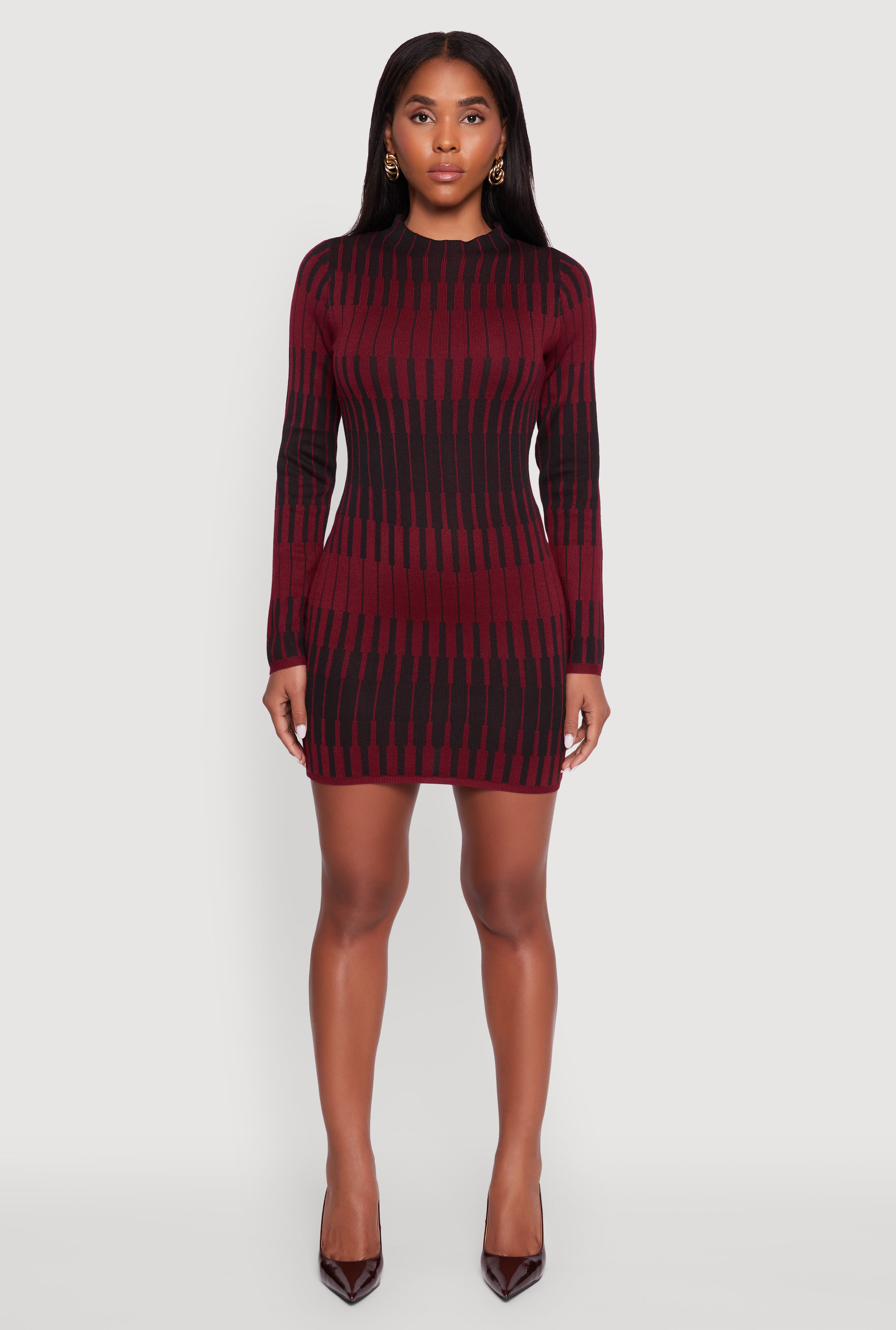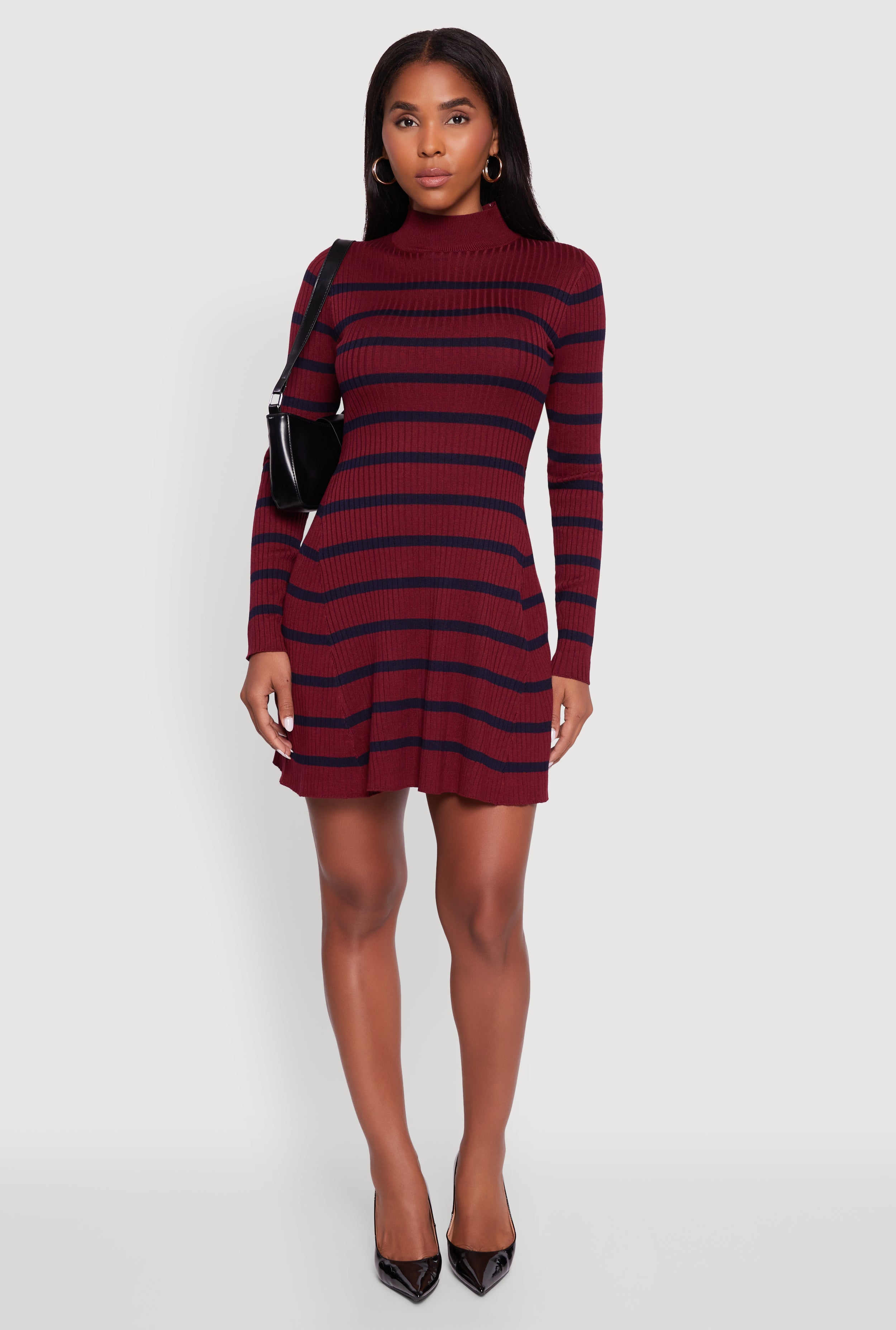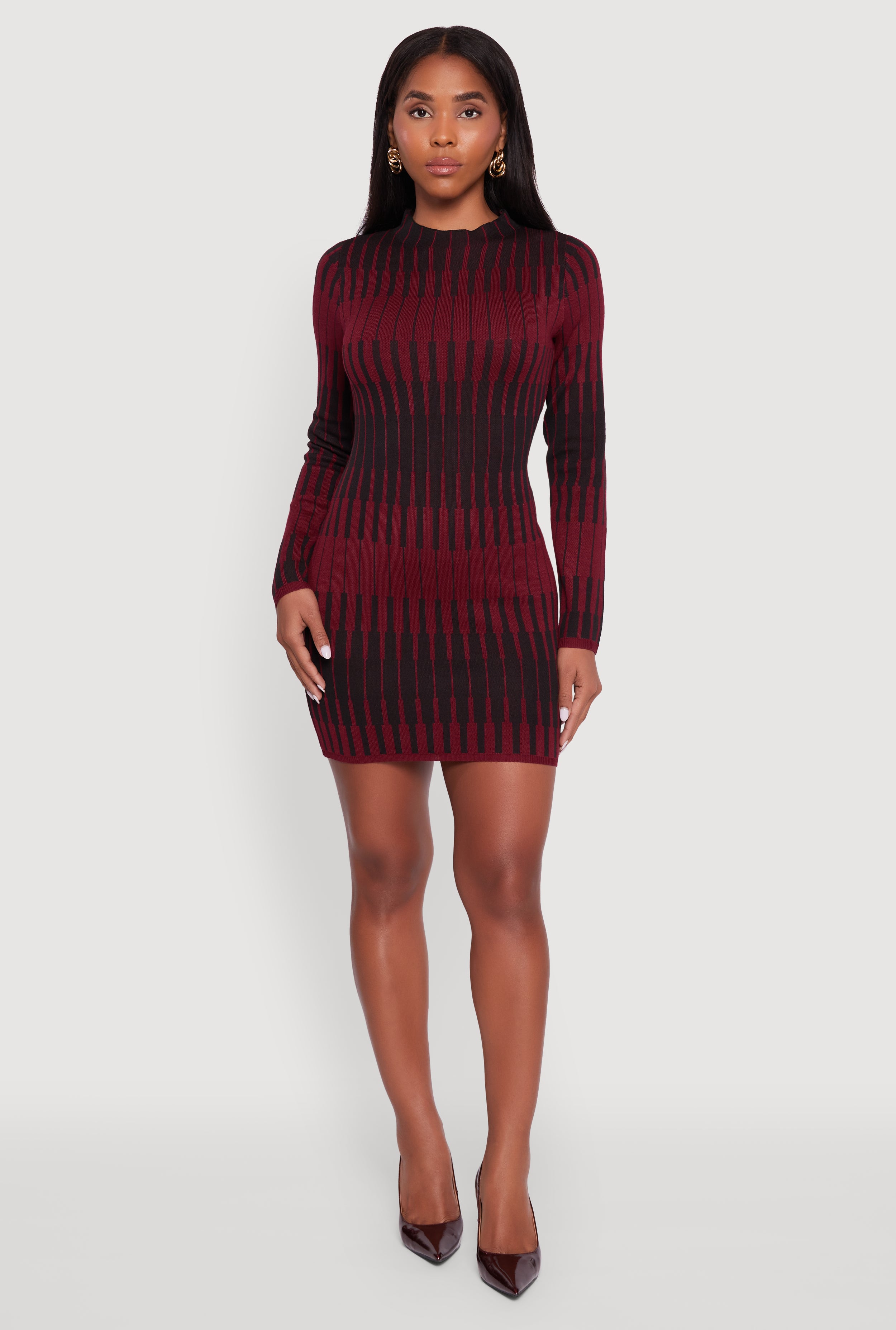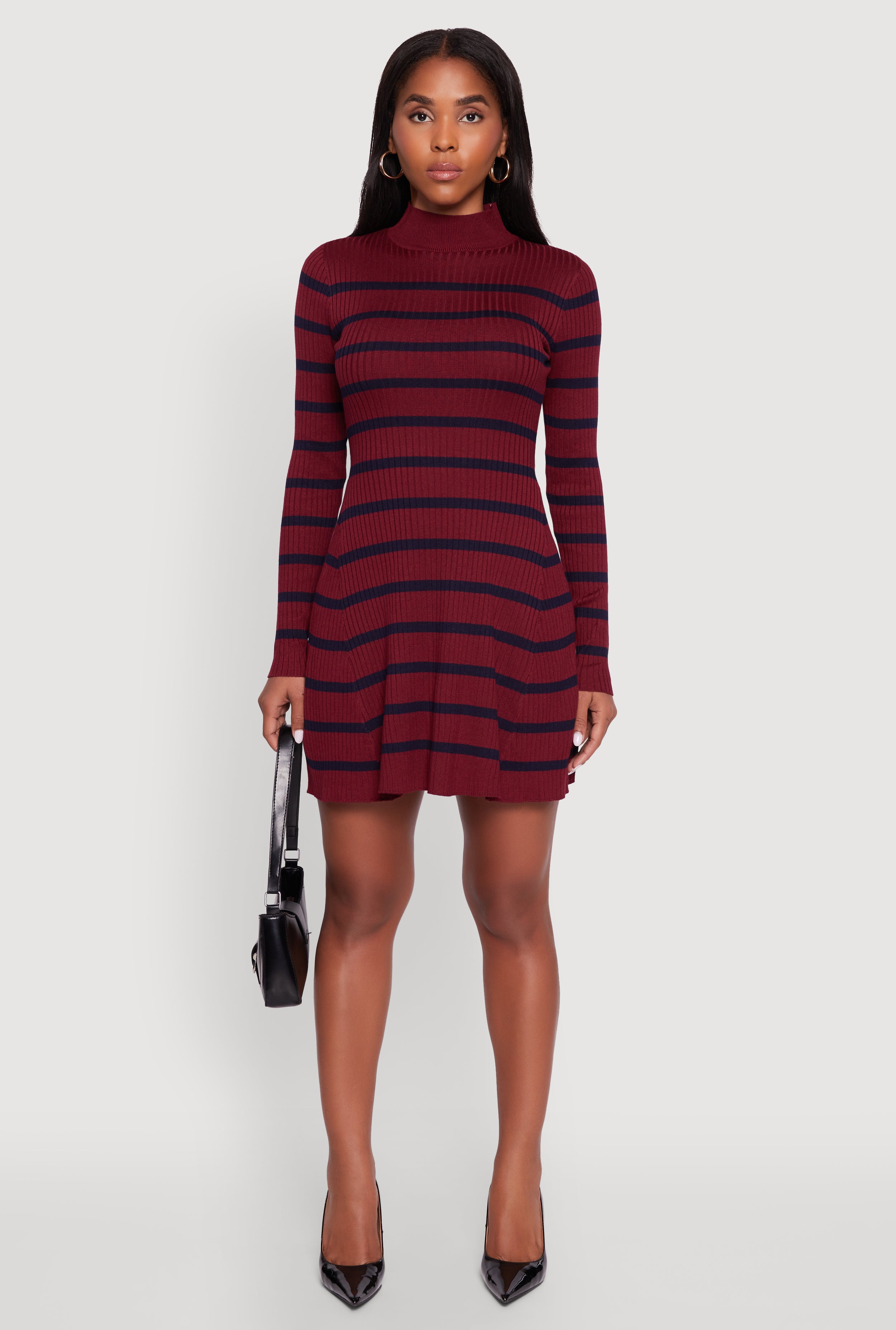 Trendy Mock Neck Striped Long Sleeve Sweater Dress