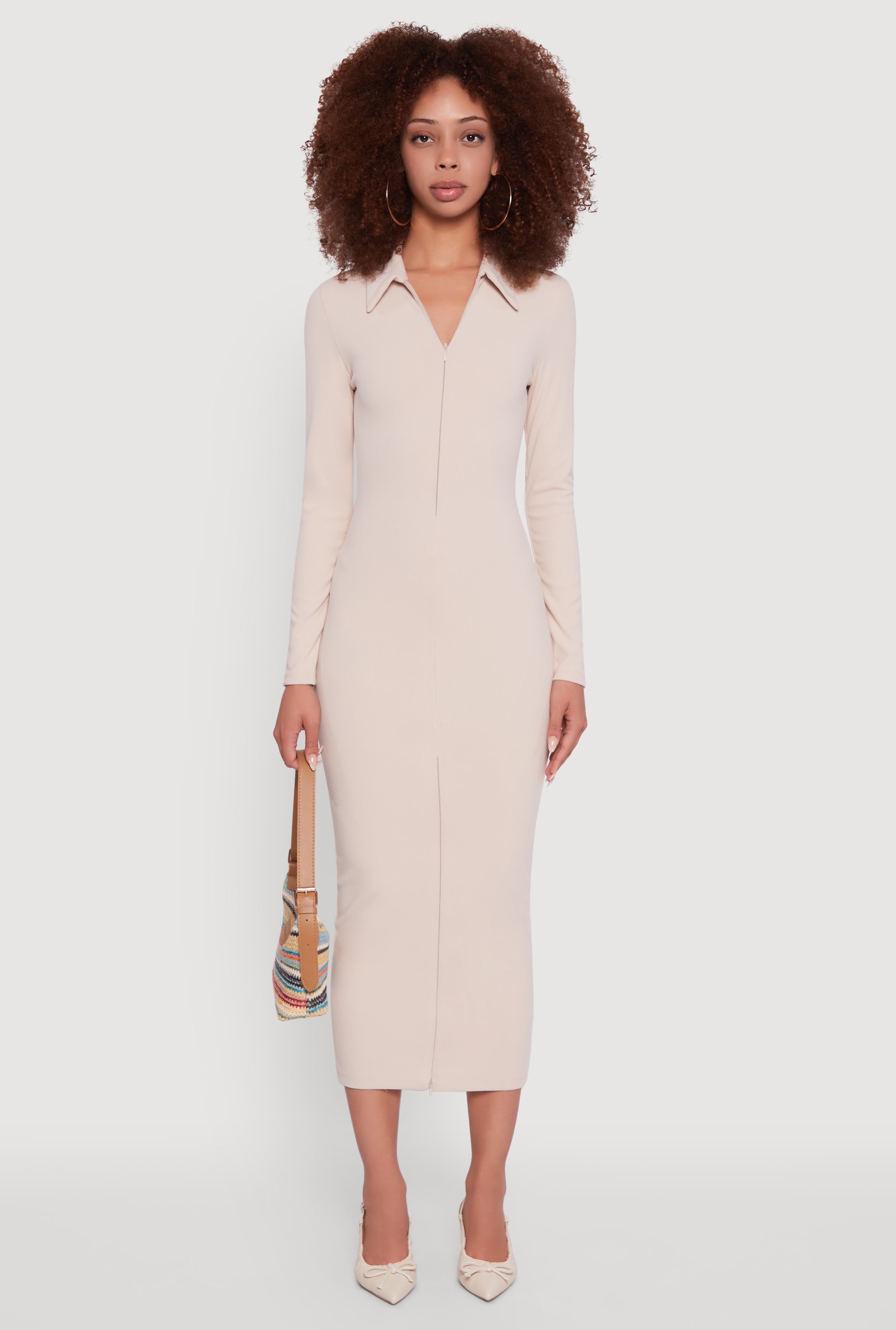 Collared Double Zip Front Midi Dress