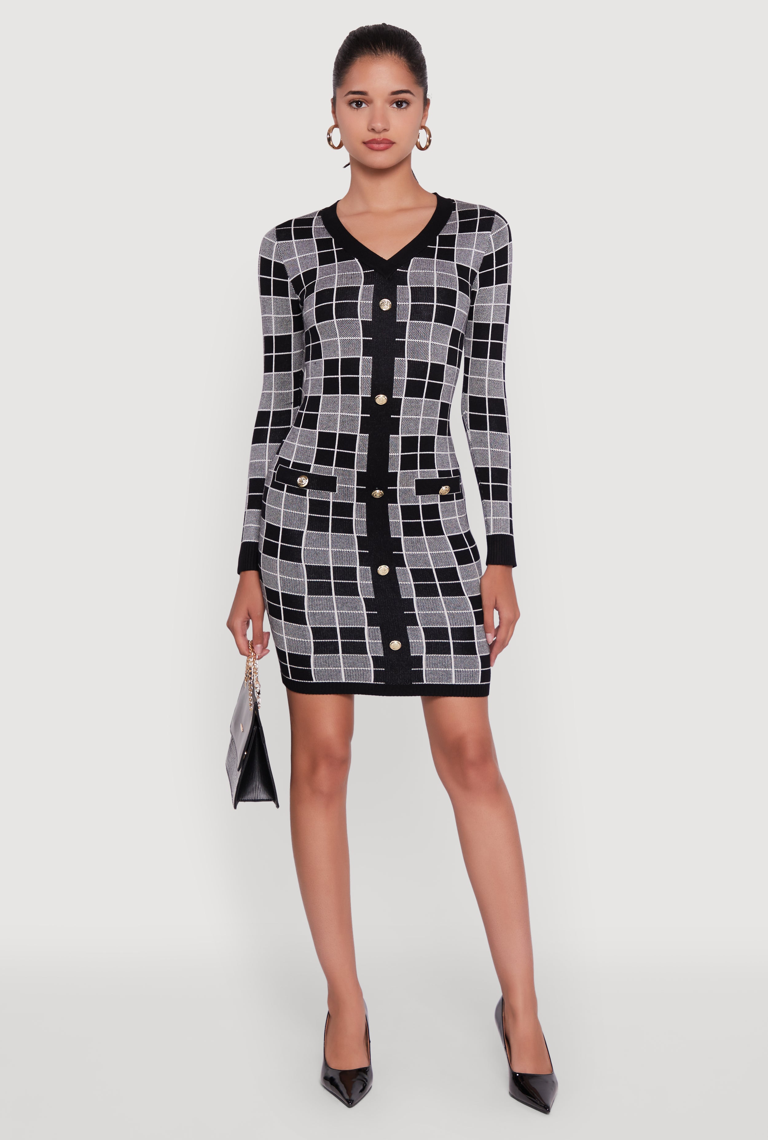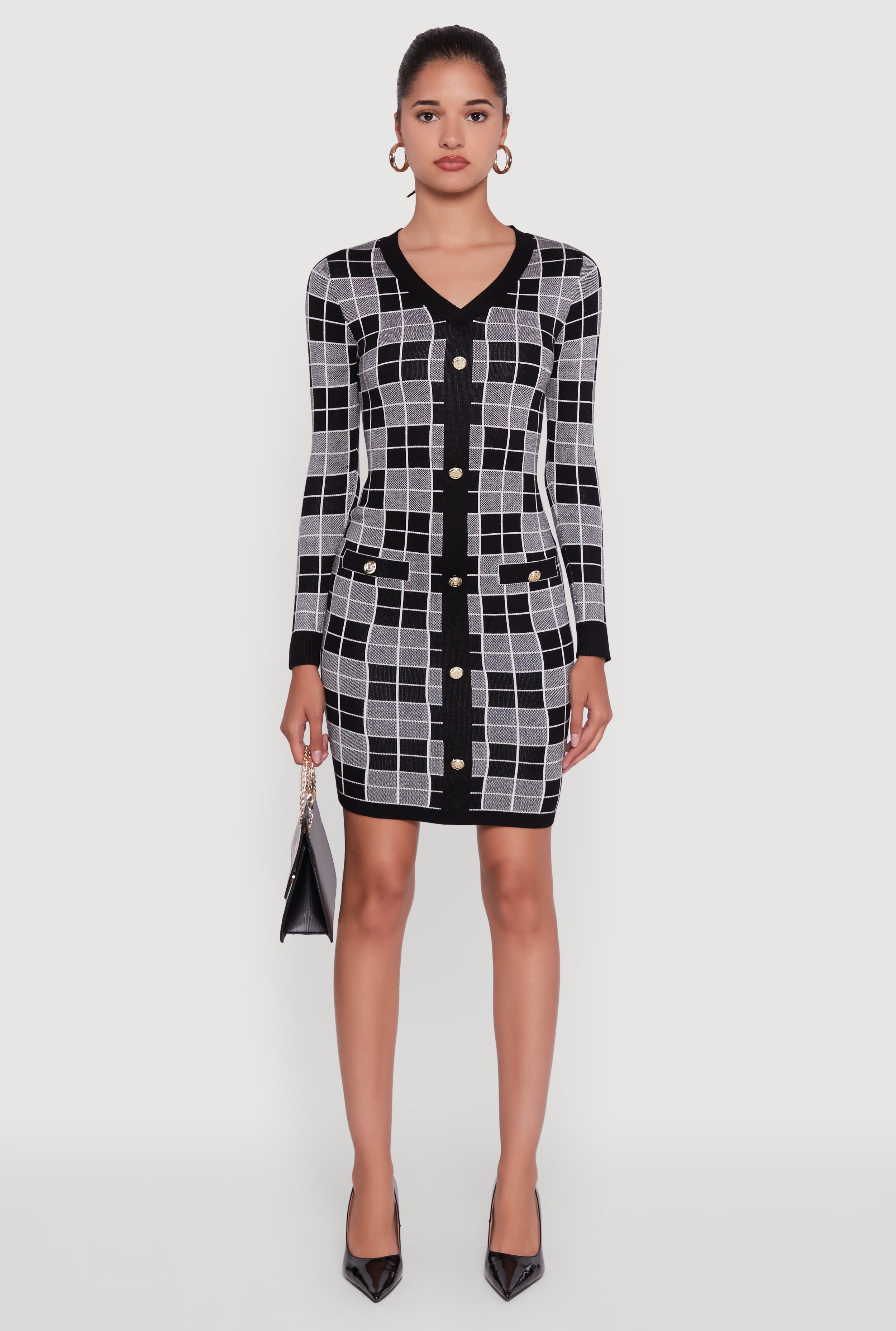 Checkered Plaid Long Sleeve Dress